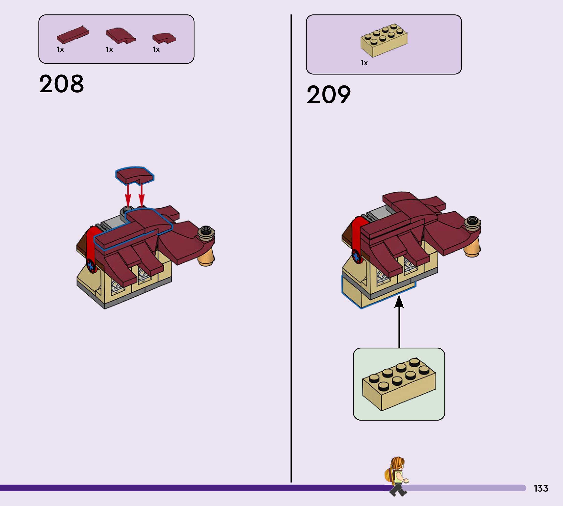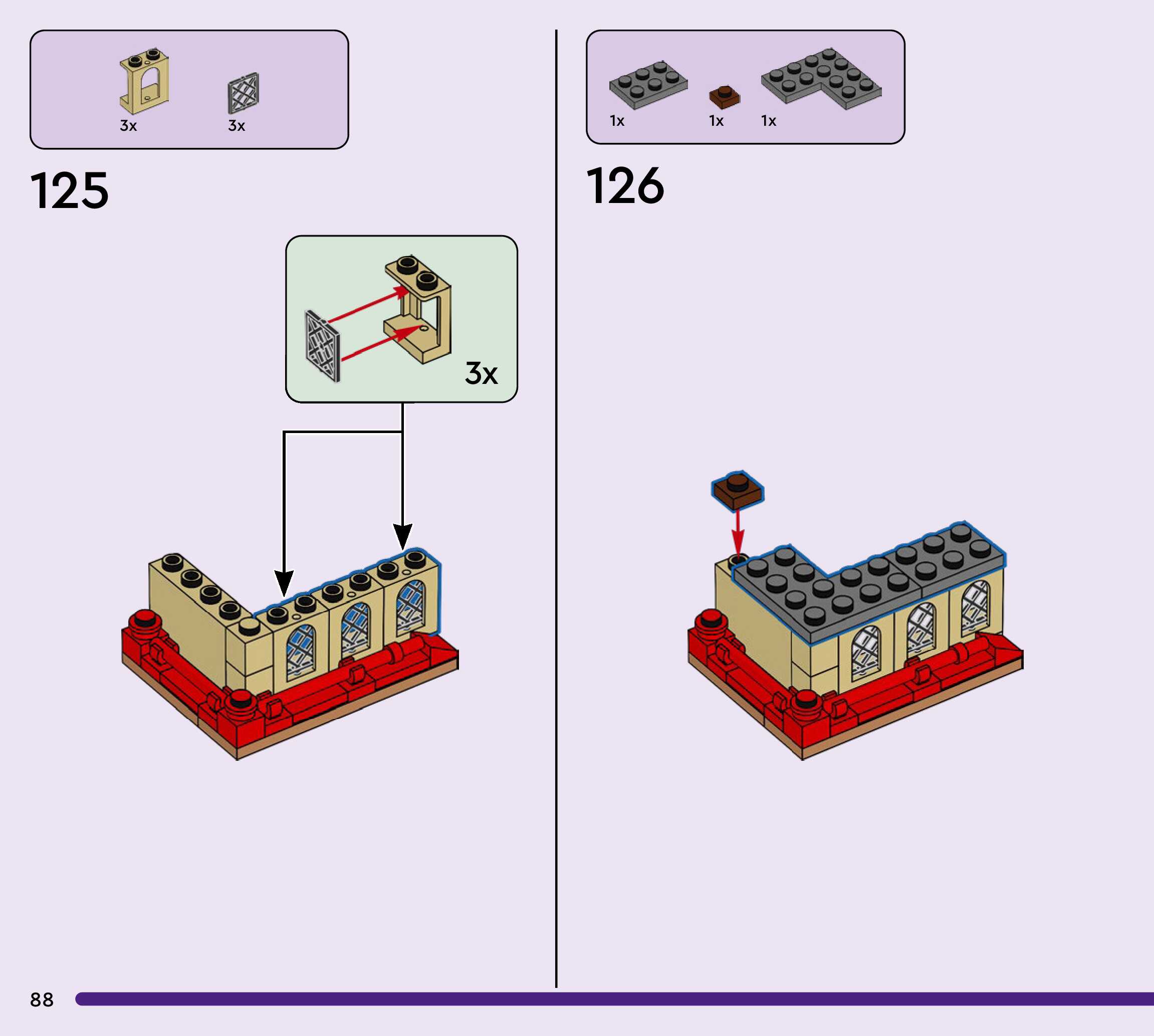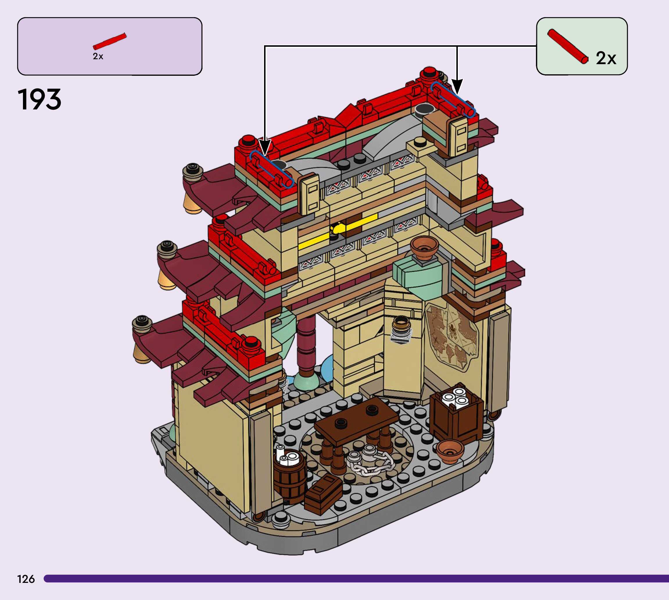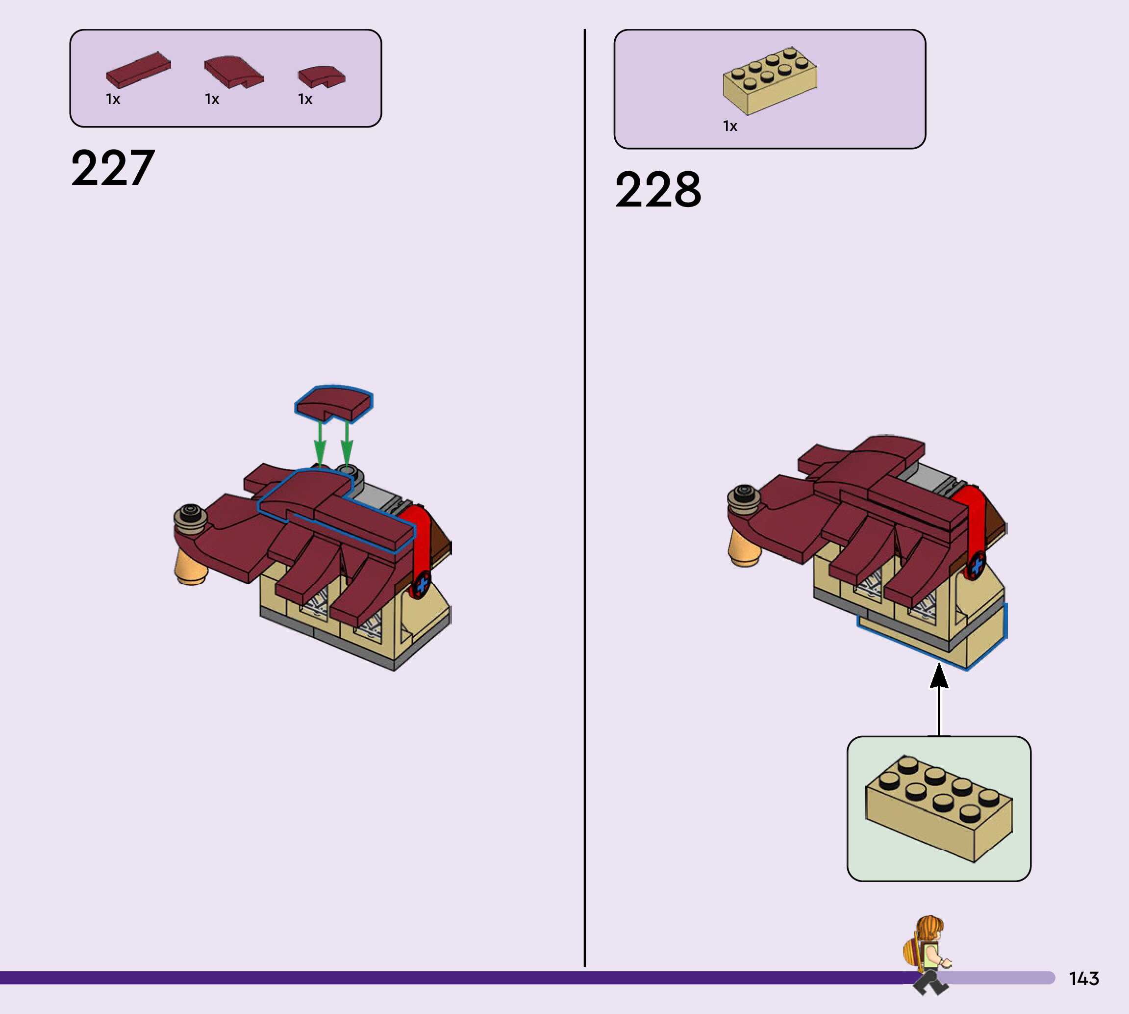 The assembly guide is prepared in a very understandable way for children and adult LEGO enthusiasts. A total of 244 picture galleries are shown, explaining the step-by-step construction stages for 3 different structures.