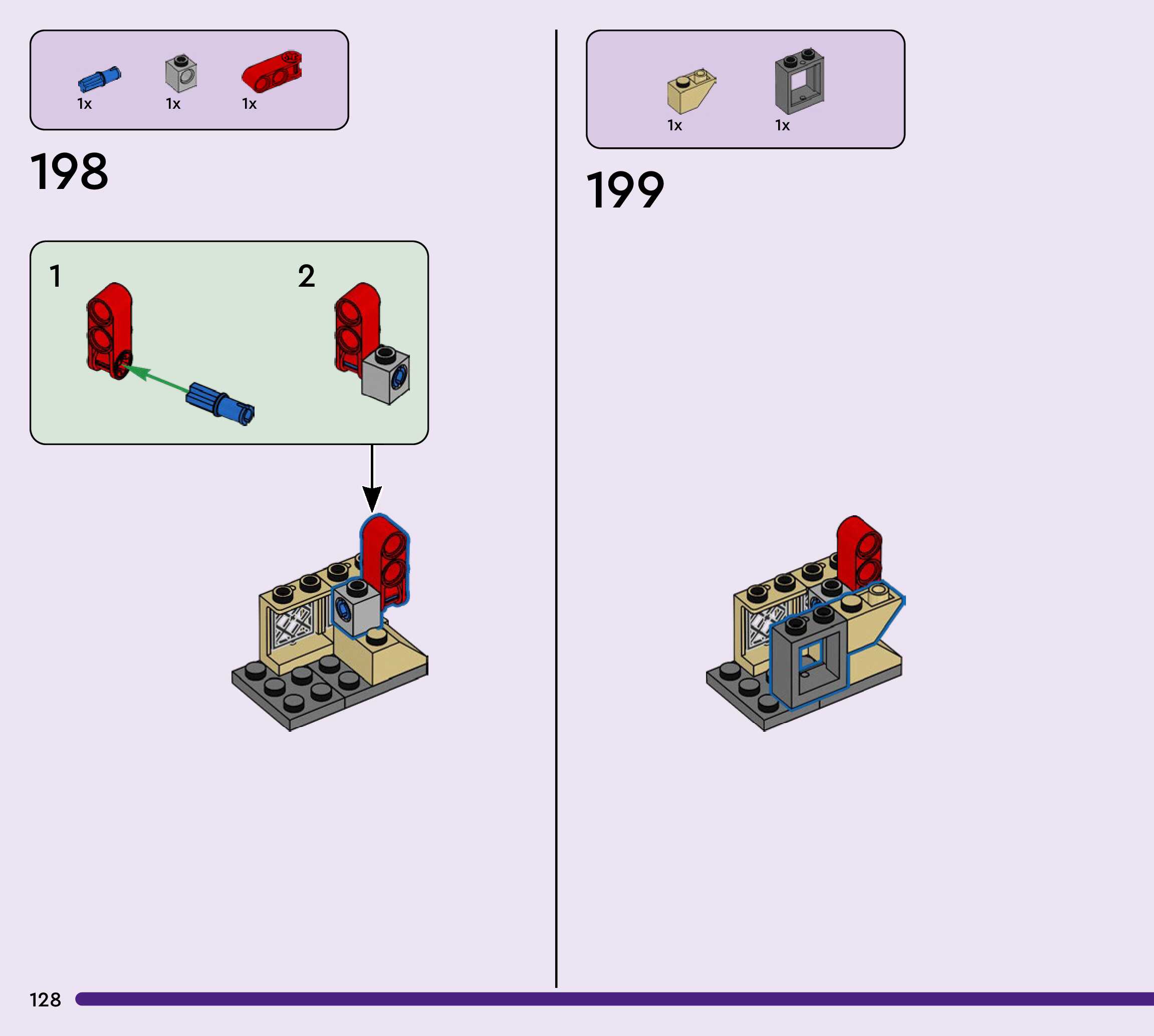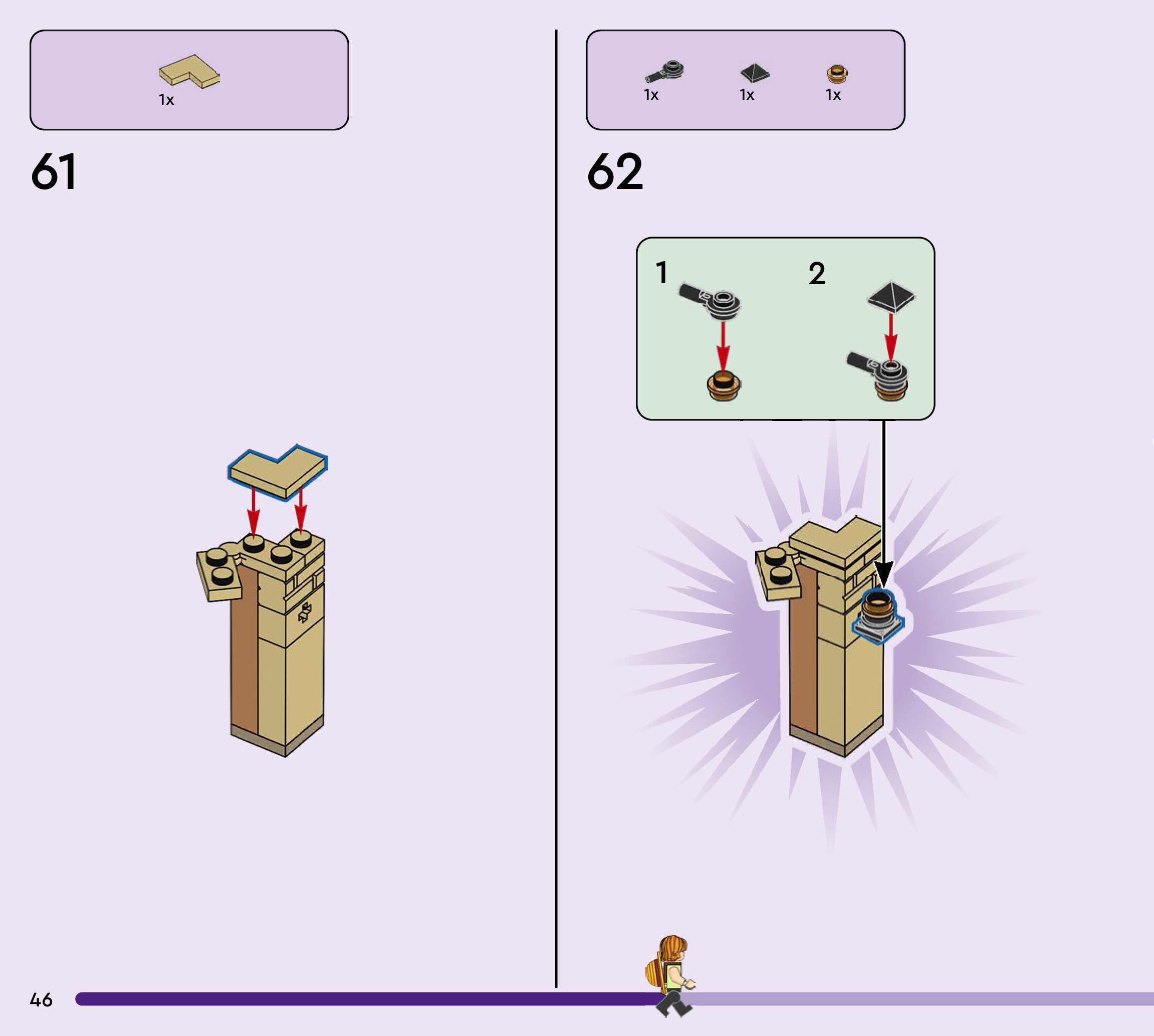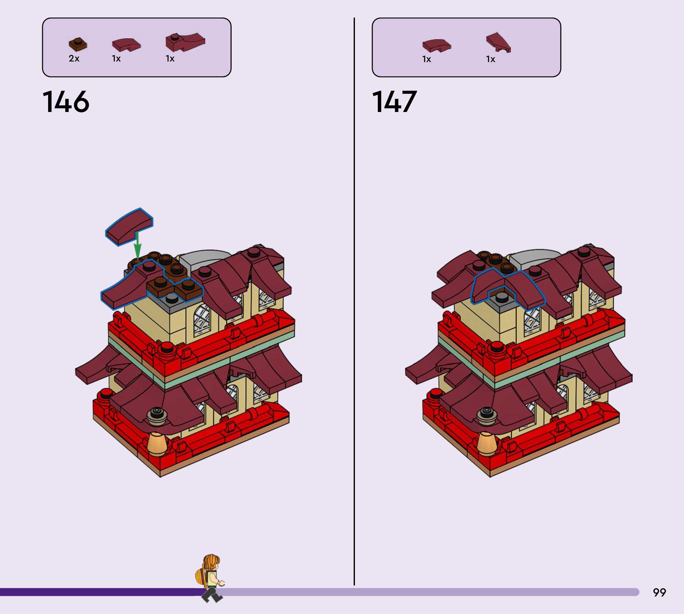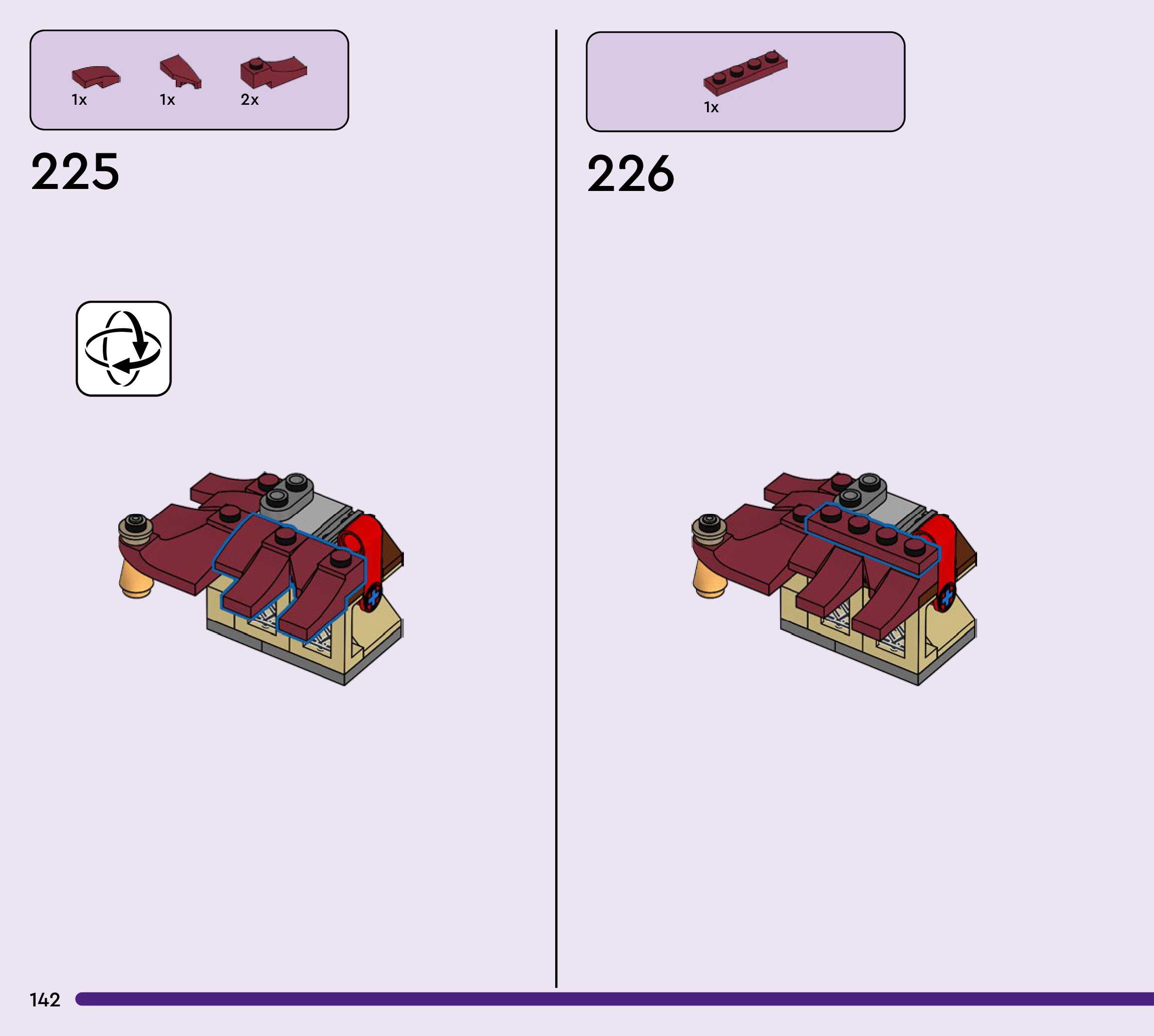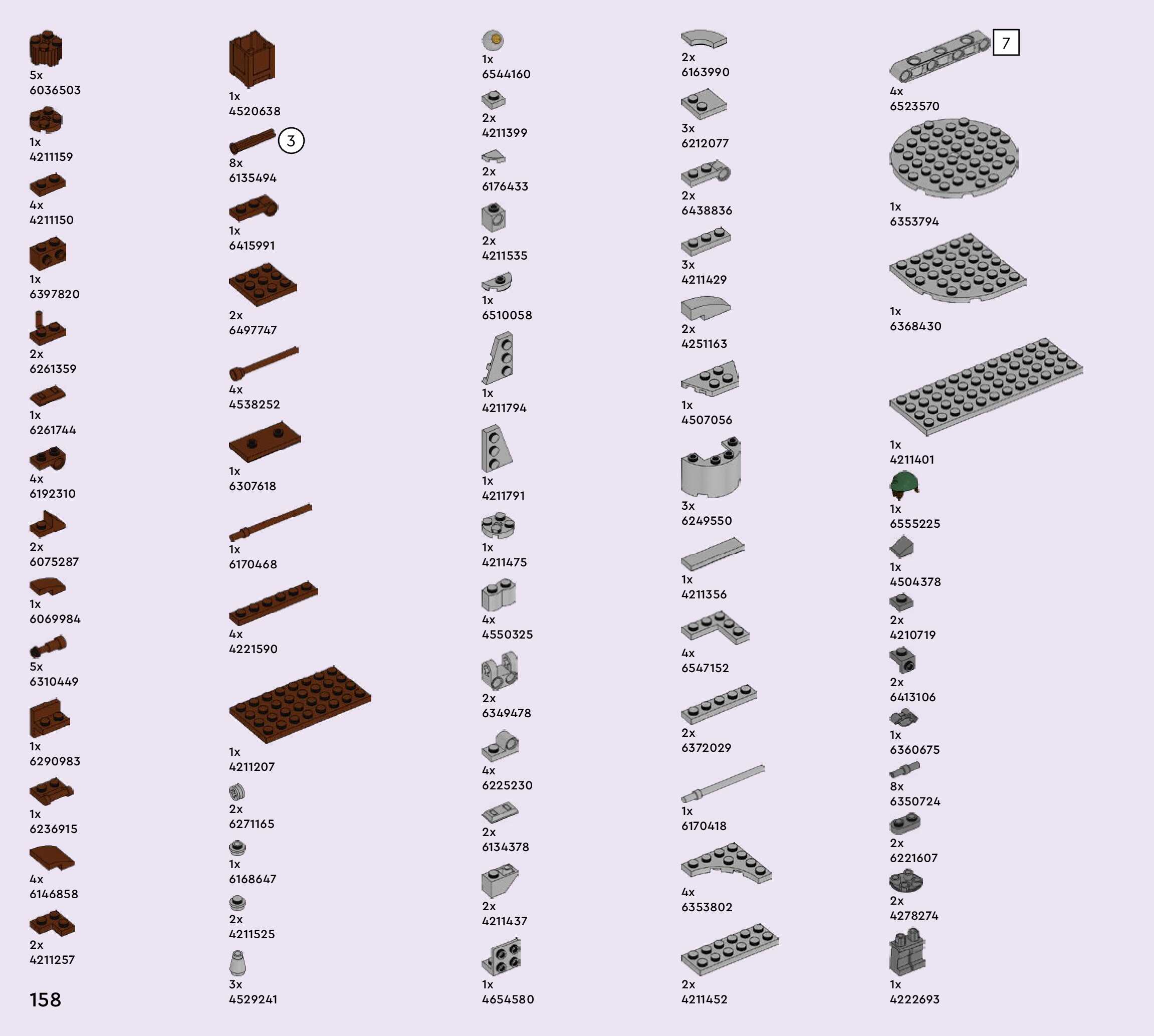 The assembly guide is prepared in a very understandable way for children and adult LEGO enthusiasts. A total of 244 picture galleries are shown, explaining the step-by-step construction stages for 3 different structures.