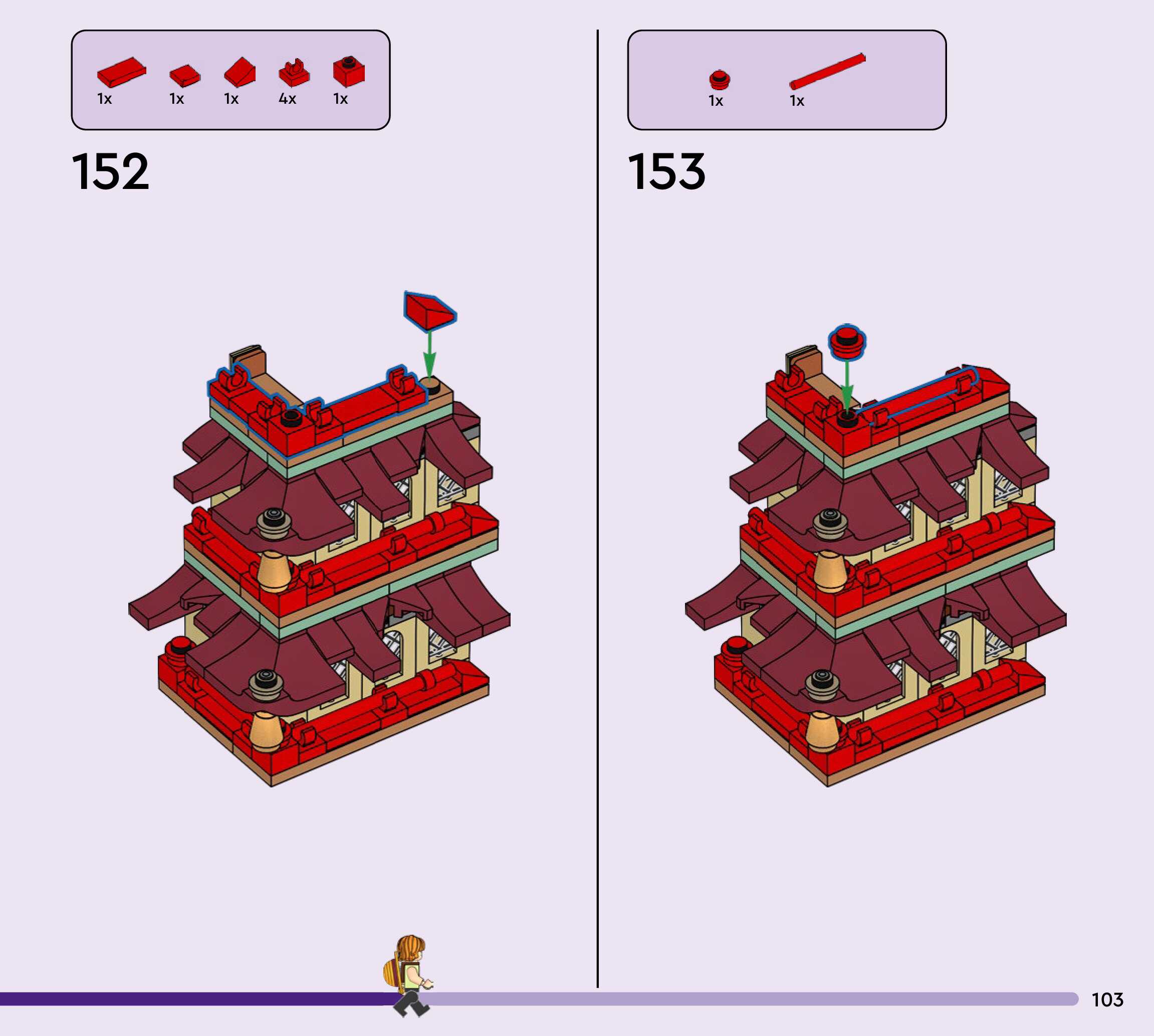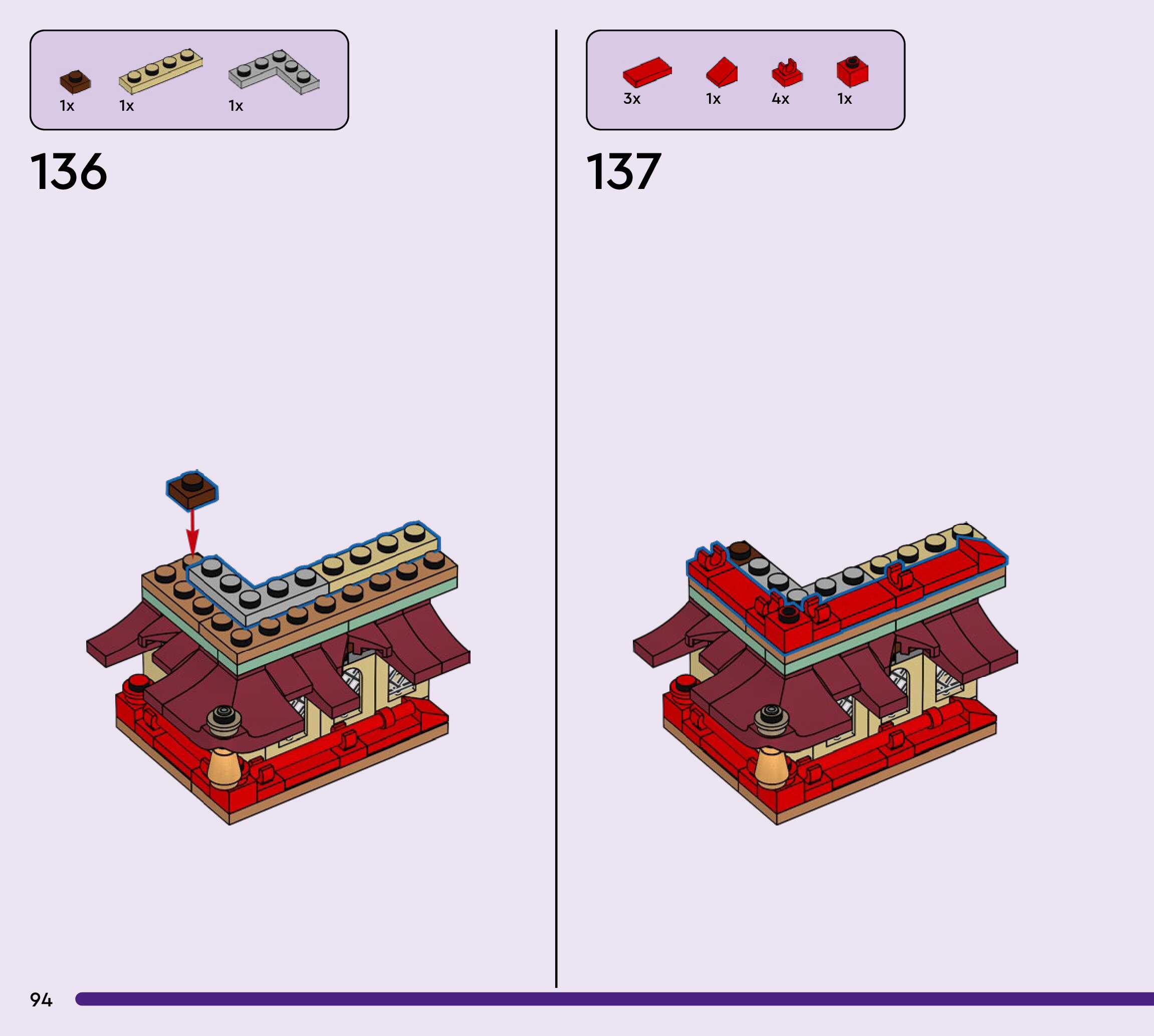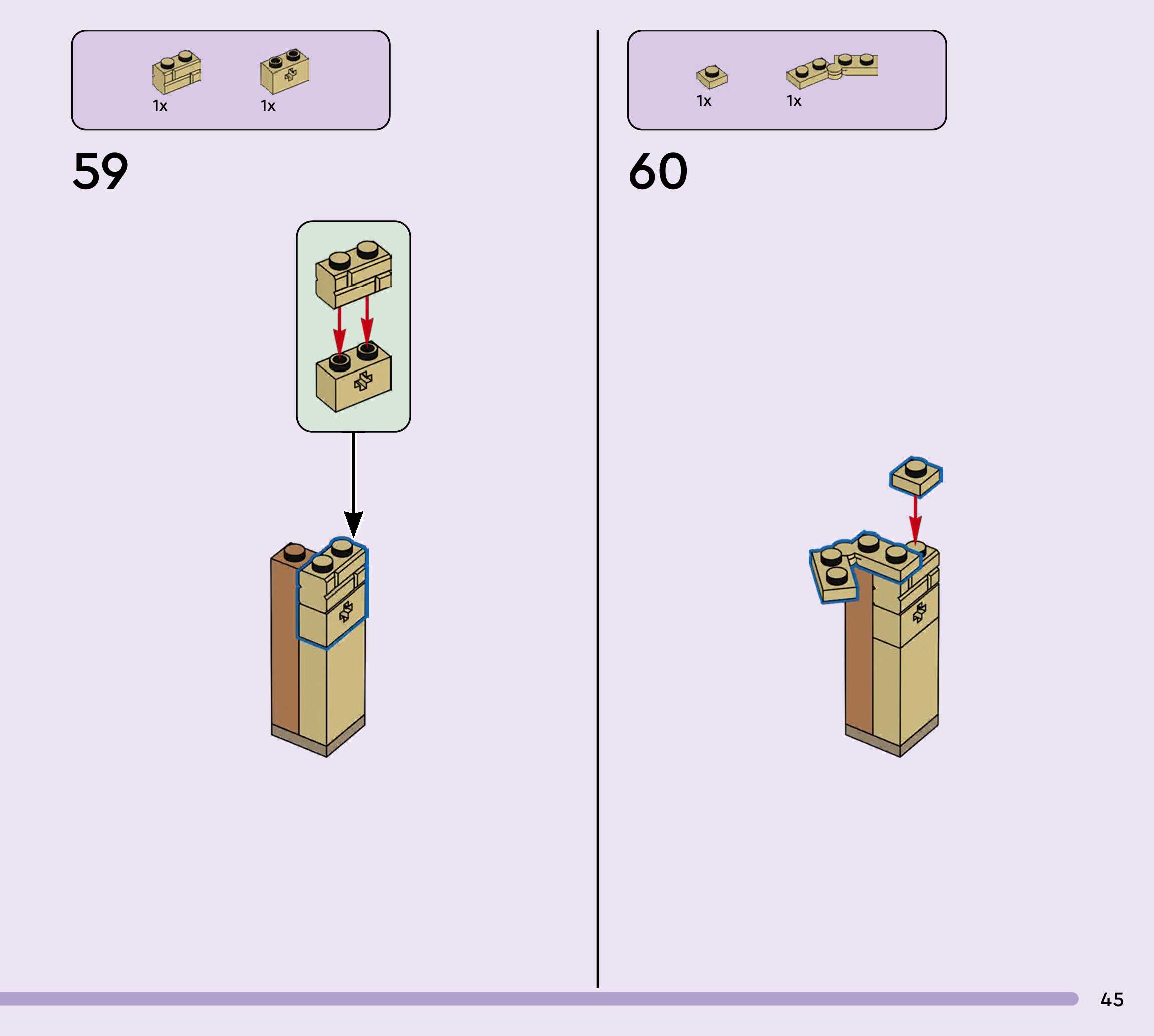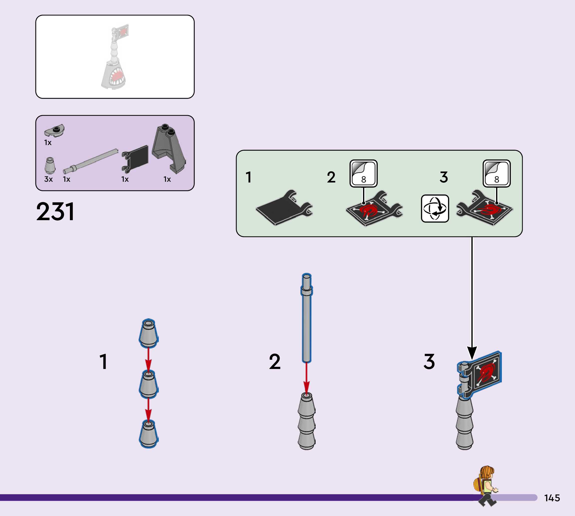 The assembly guide is prepared in a very understandable way for children and adult LEGO enthusiasts. A total of 244 picture galleries are shown, explaining the step-by-step construction stages for 3 different structures.