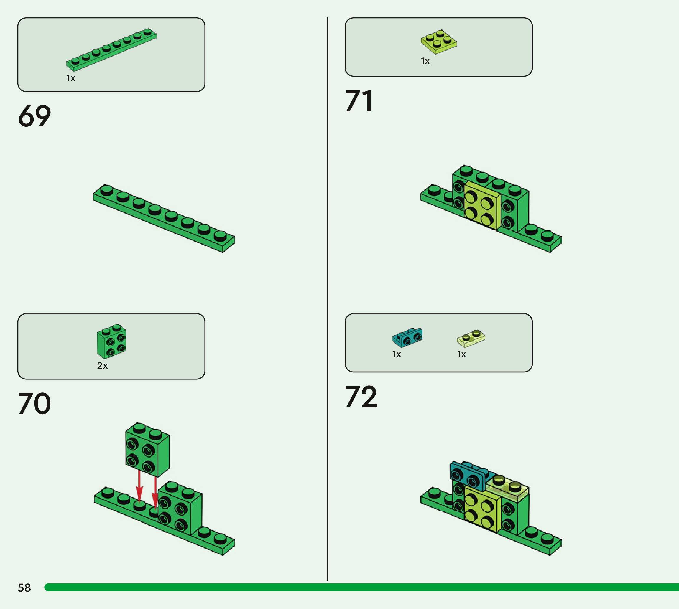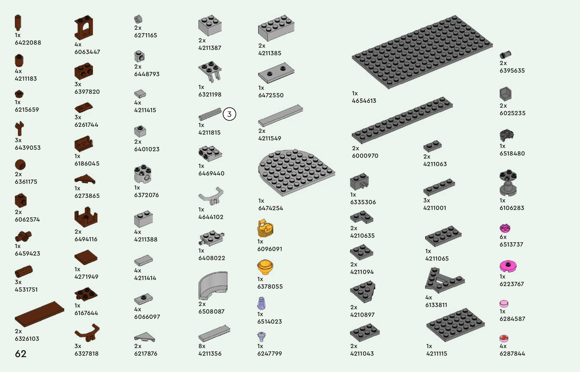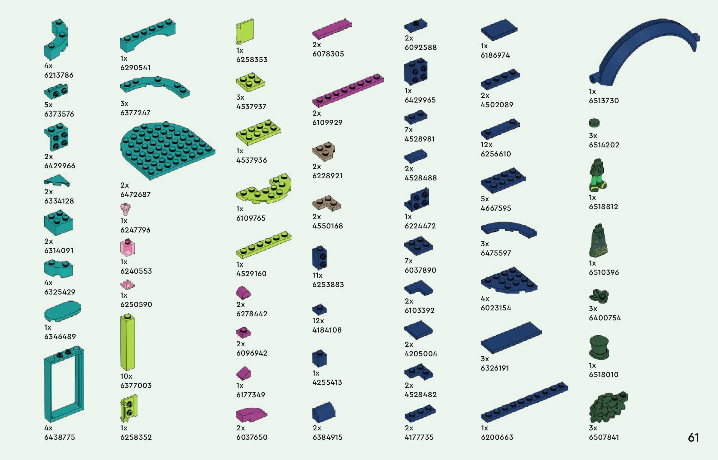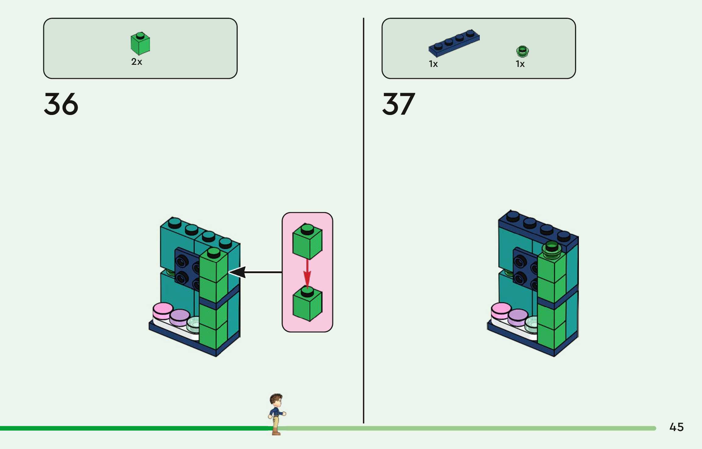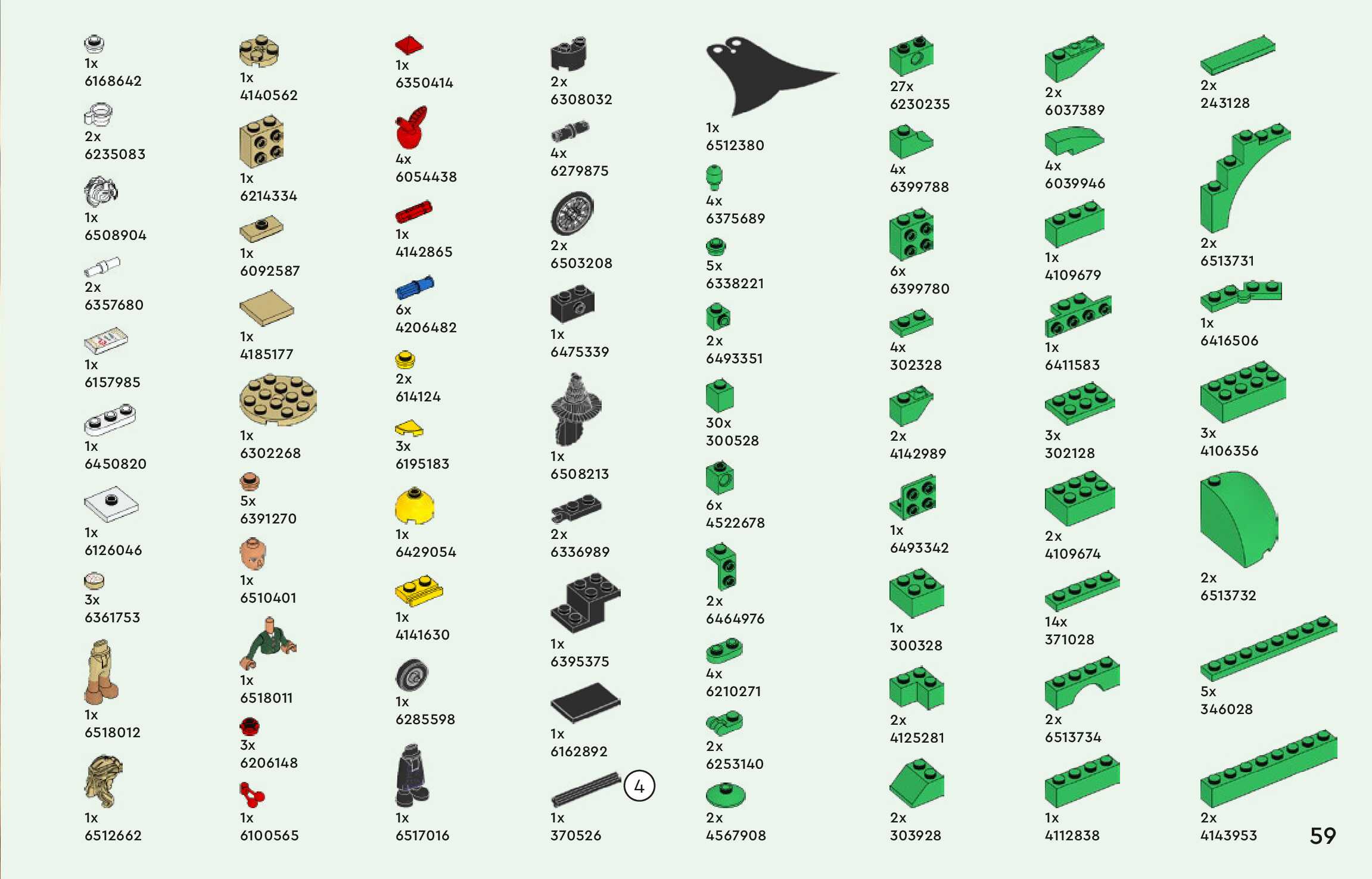 The assembly guide is prepared in a very understandable way for children and adult LEGO enthusiasts. A total of 260 picture galleries are shown, explaining the step-by-step construction stages for 4 different structures.