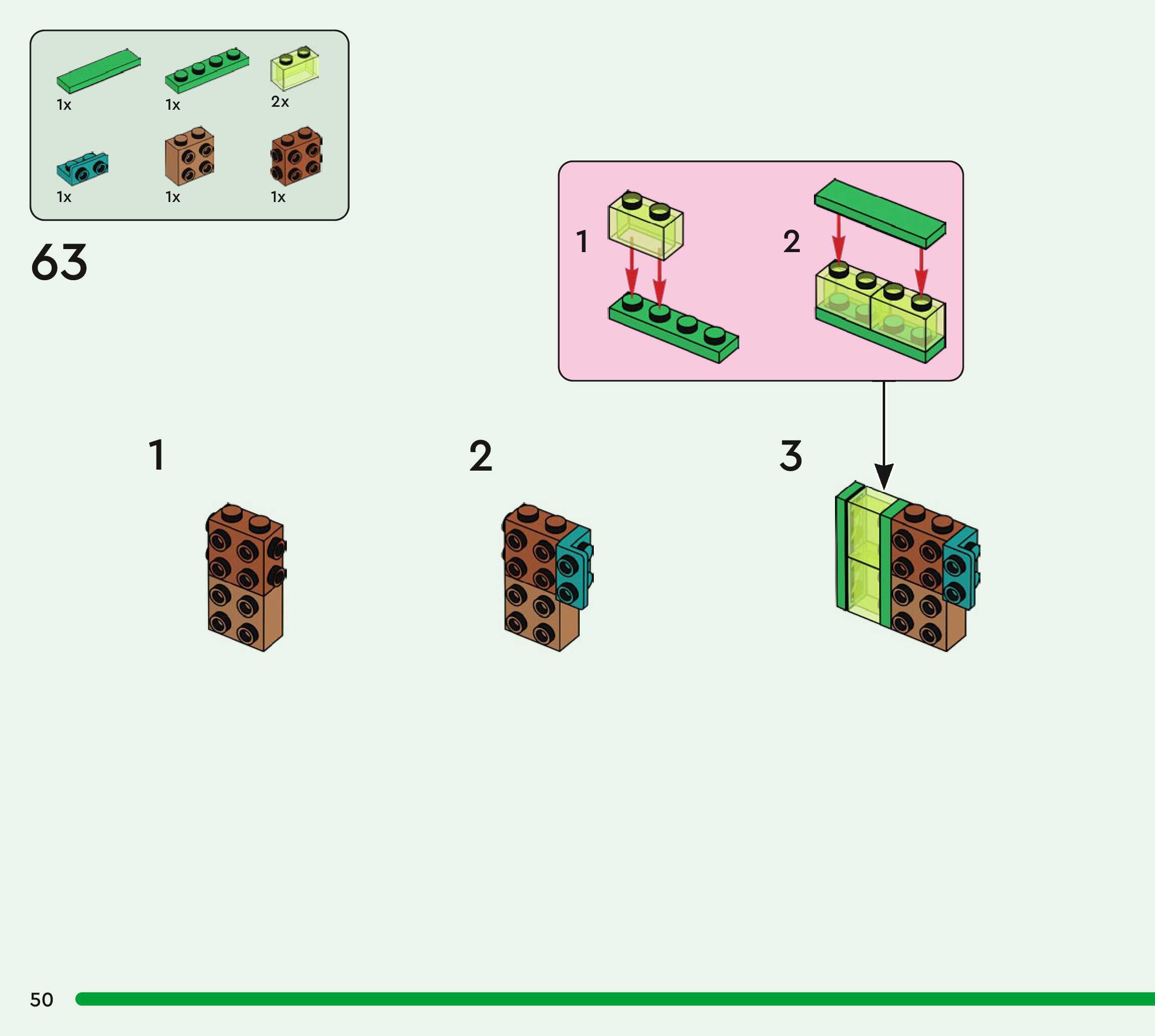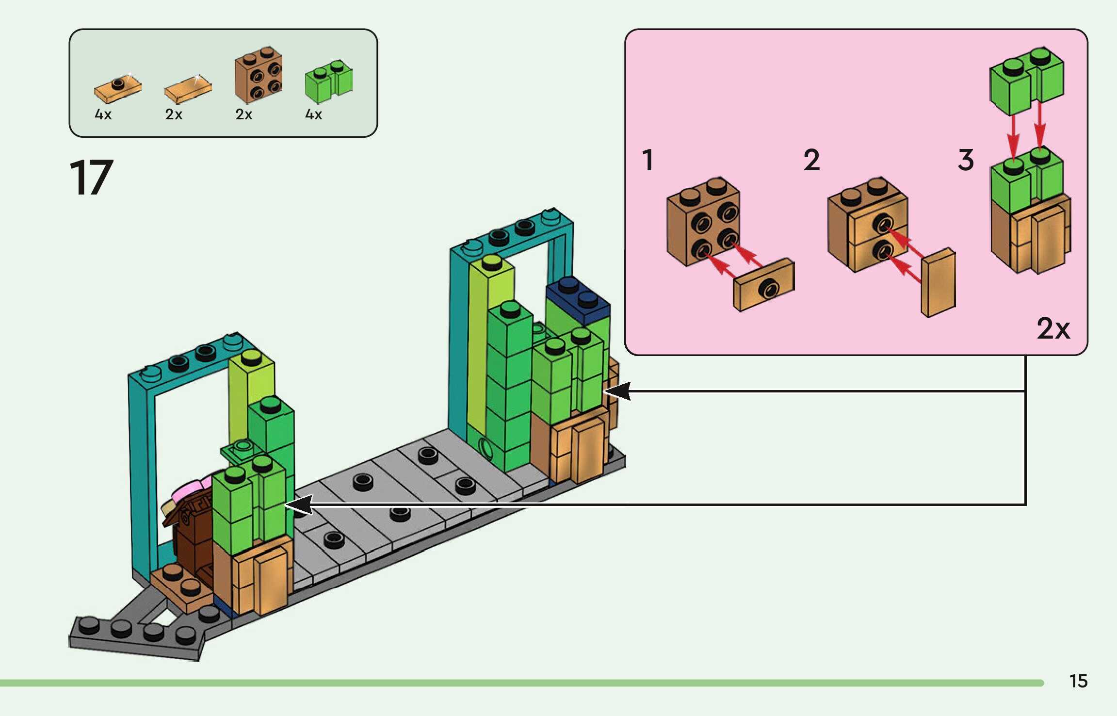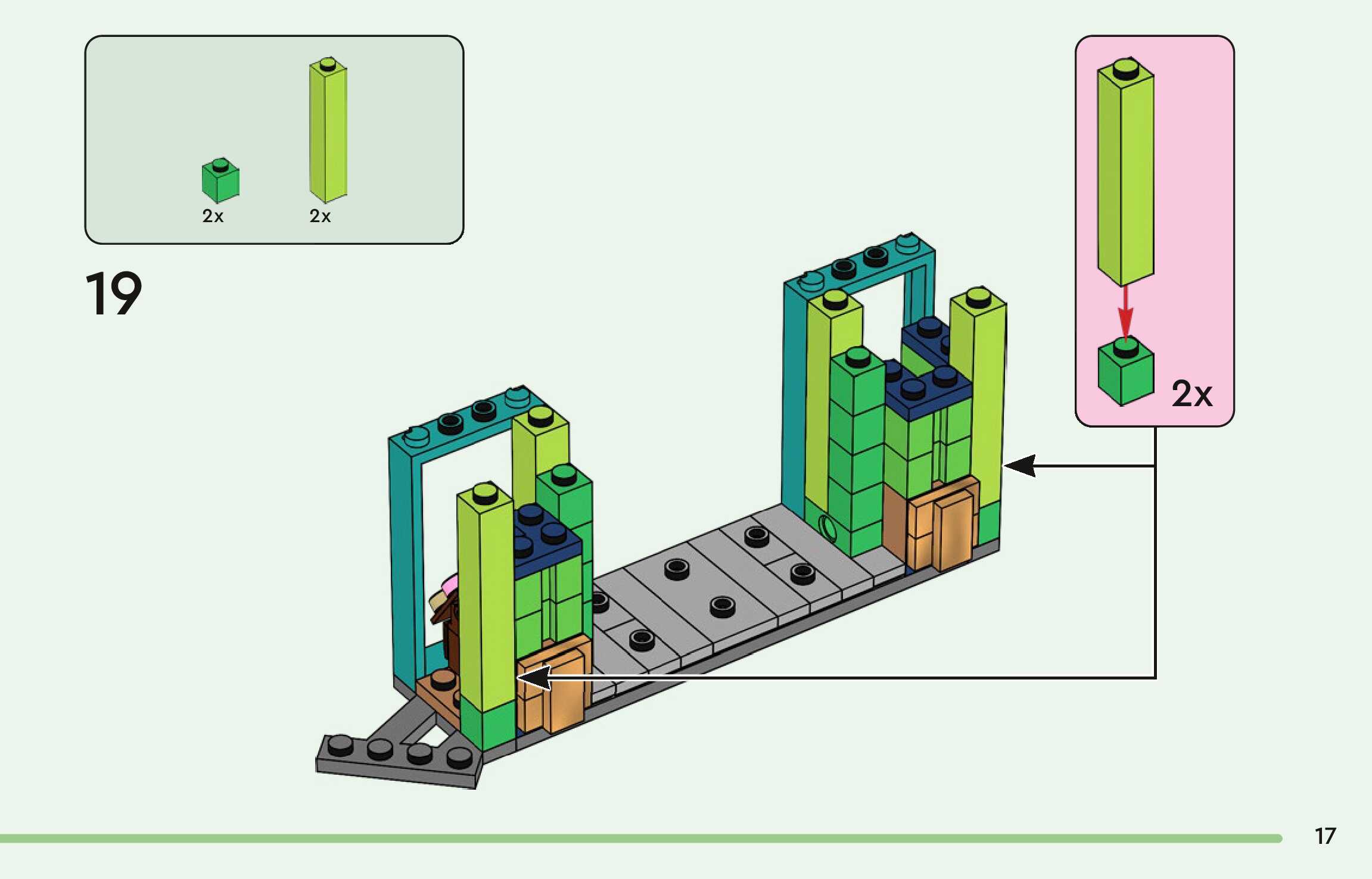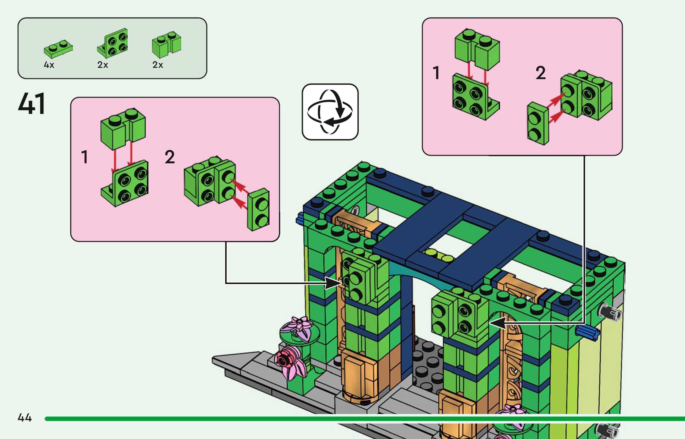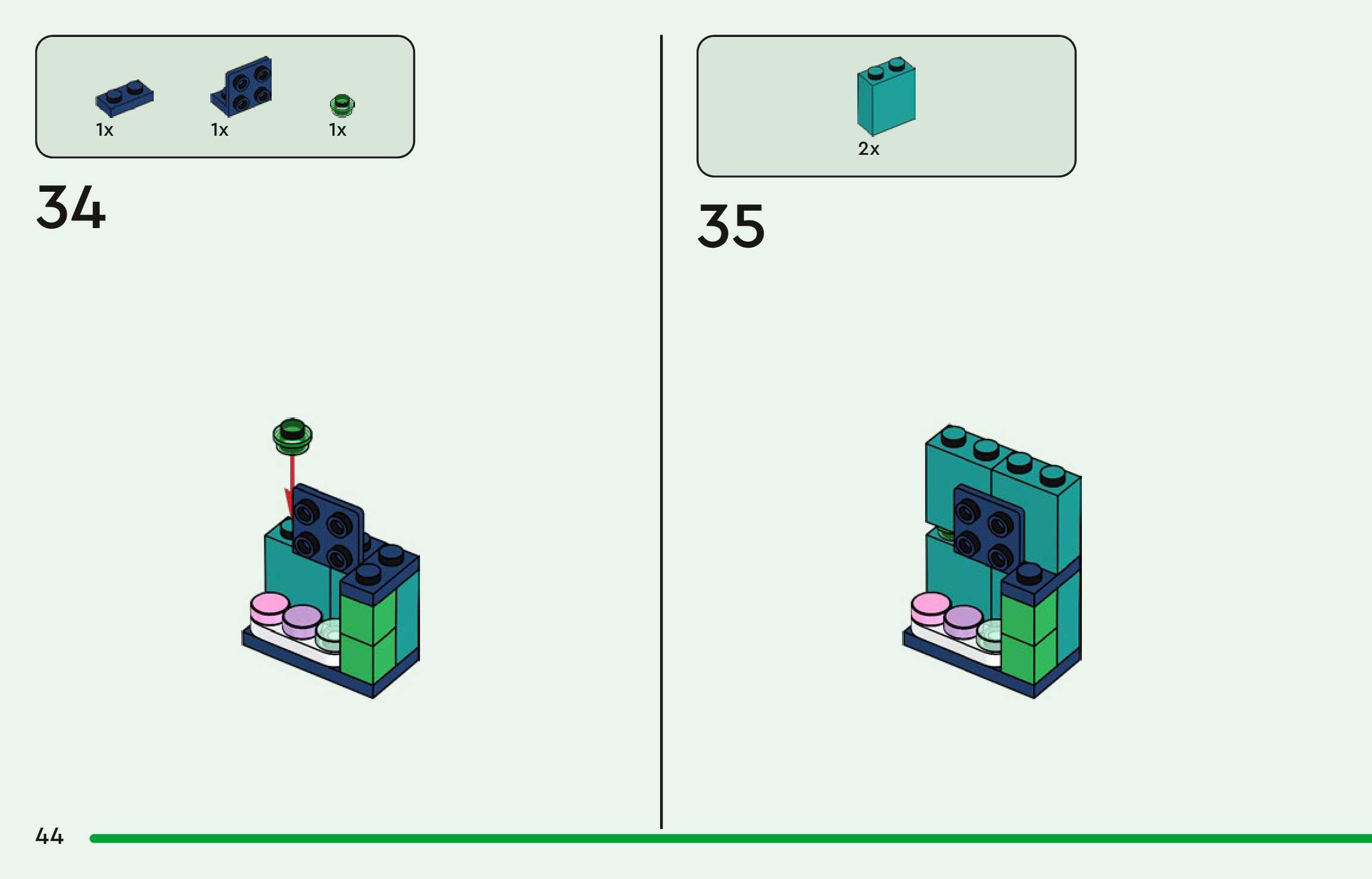 The assembly guide is prepared in a very understandable way for children and adult LEGO enthusiasts. A total of 260 picture galleries are shown, explaining the step-by-step construction stages for 4 different structures.
