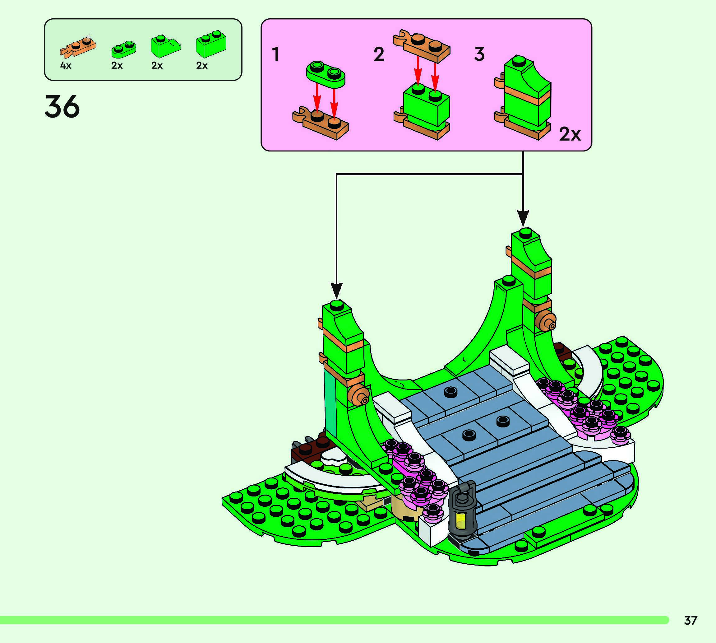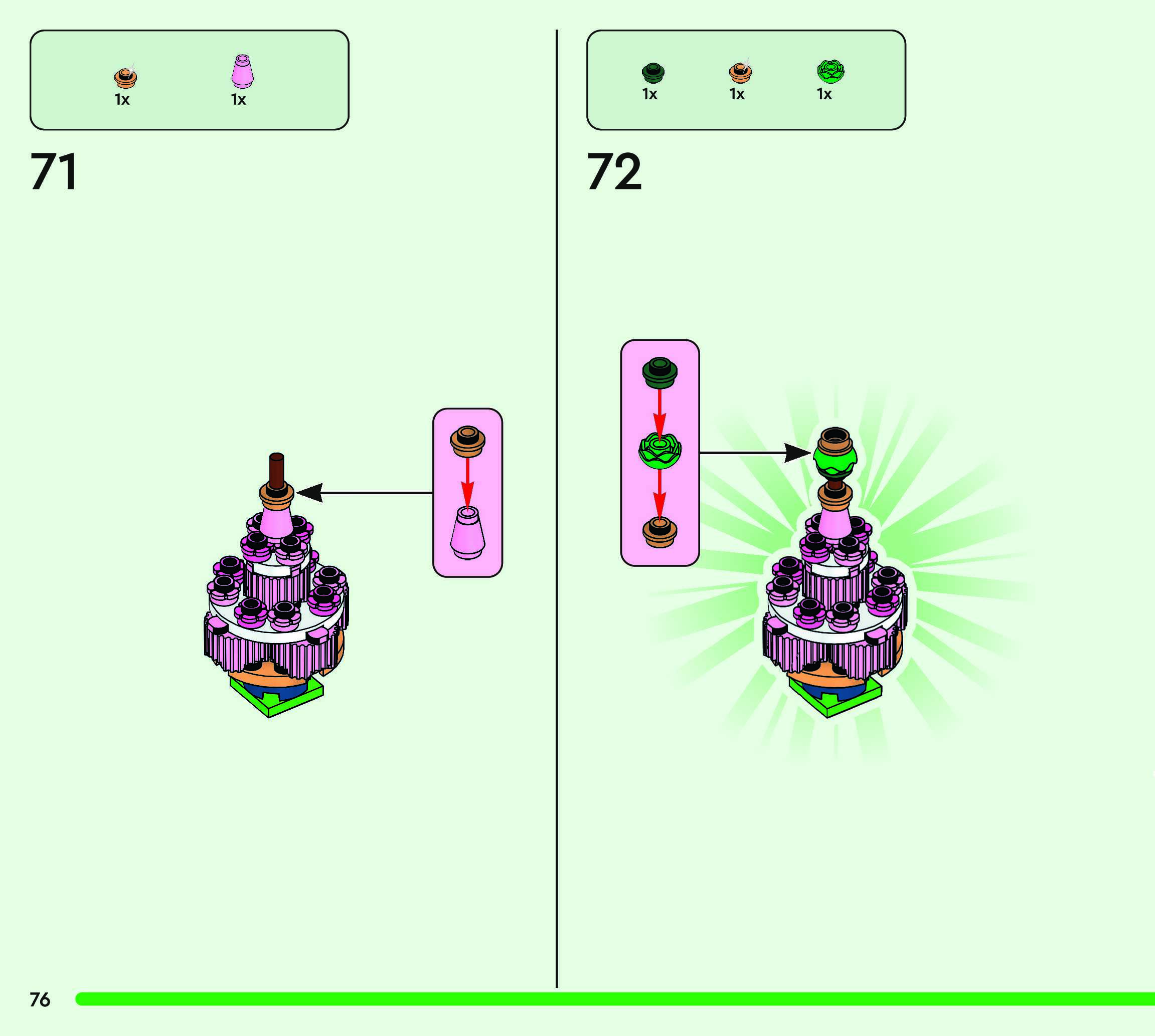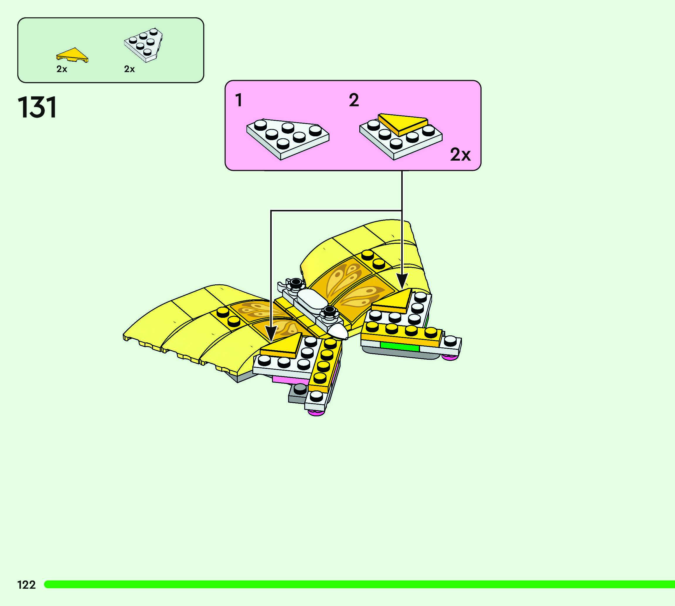 The assembly guide is prepared in a very understandable way for children and adult LEGO enthusiasts. A total of 136 picture galleries are shown, explaining the step-by-step construction stages for 1 different structures.