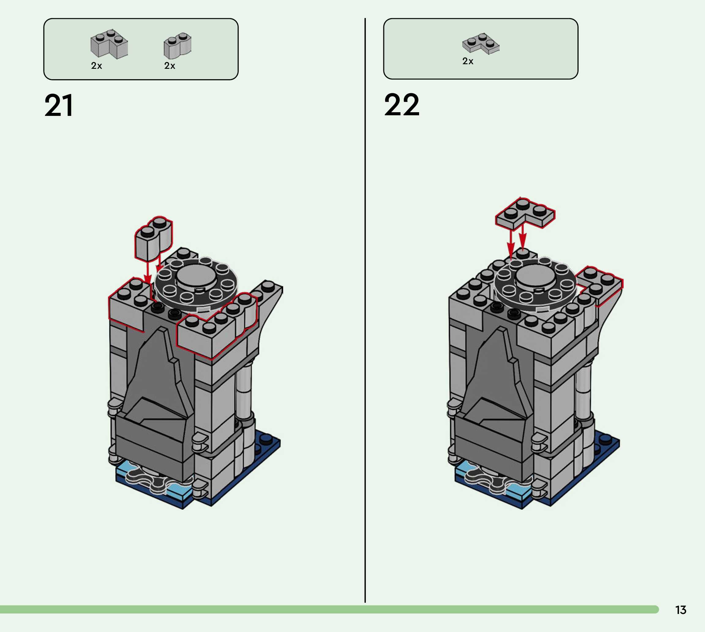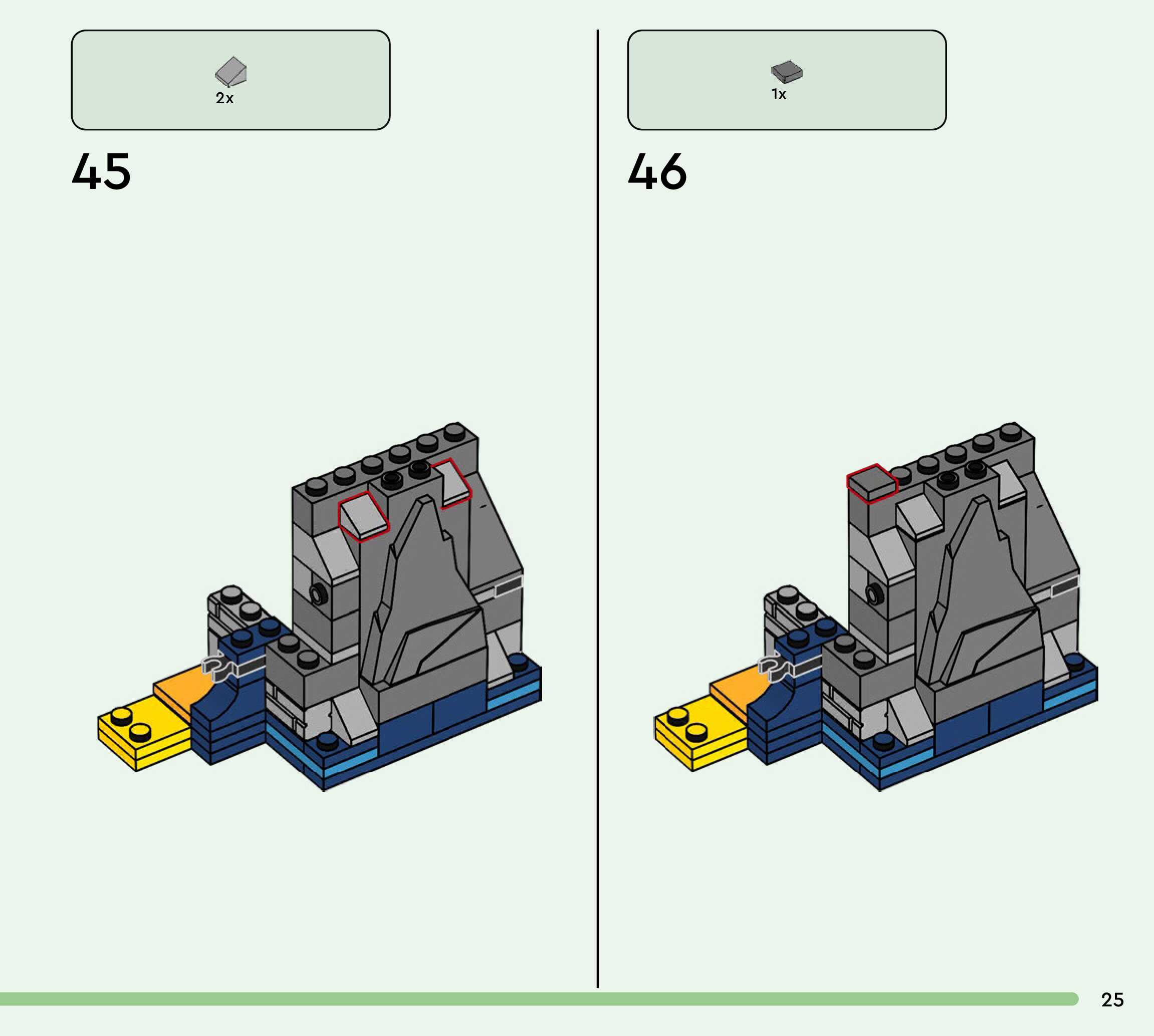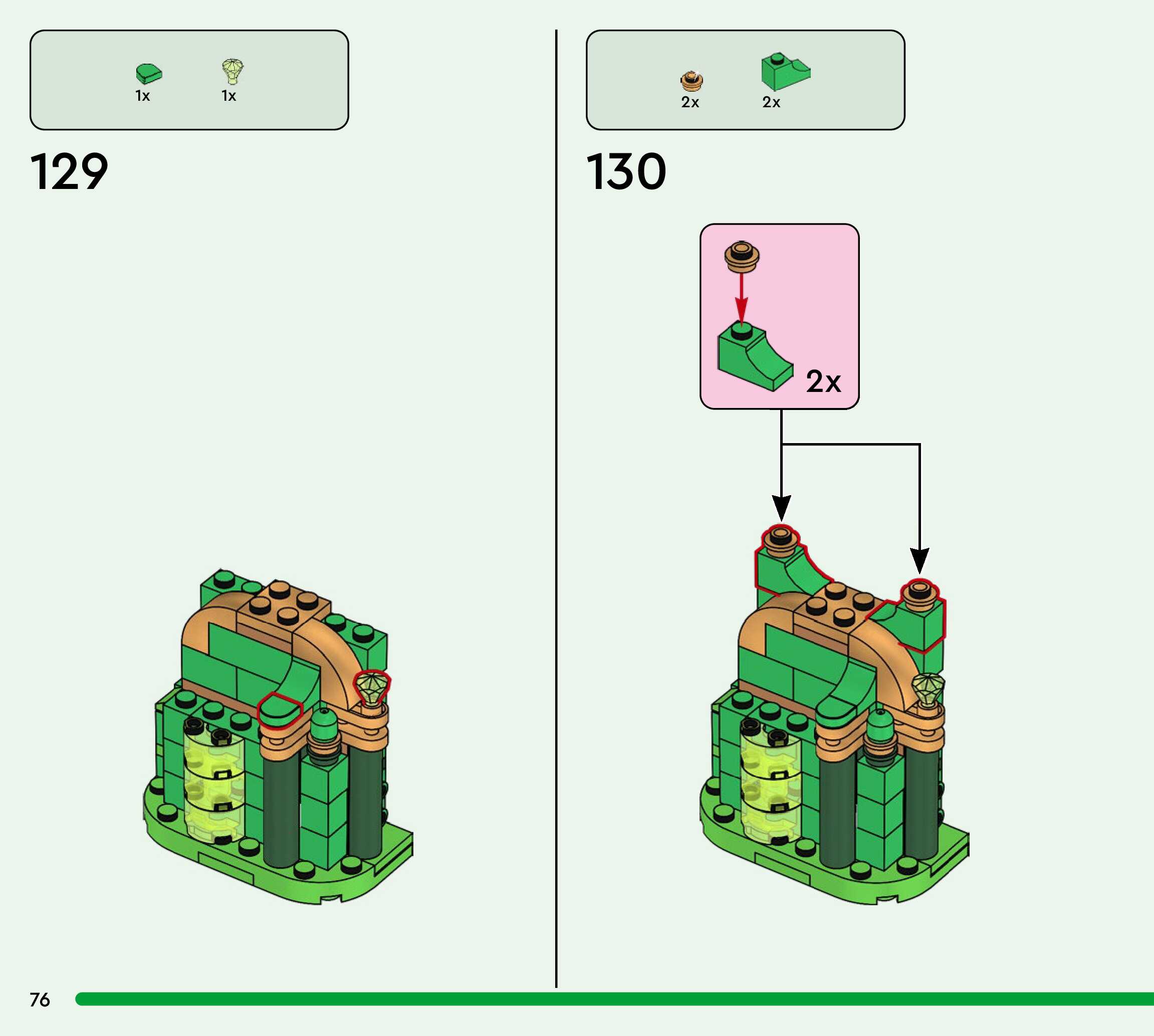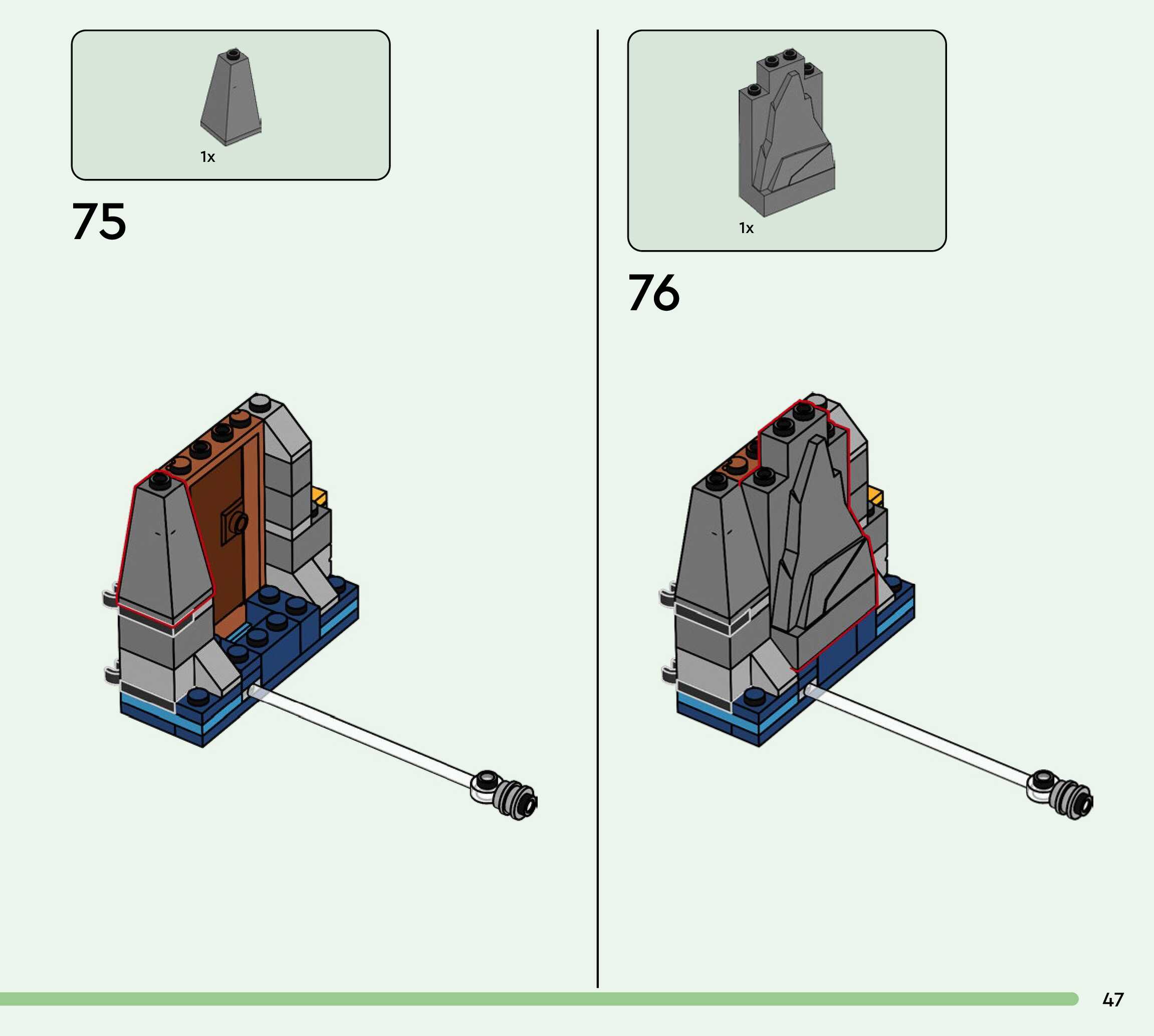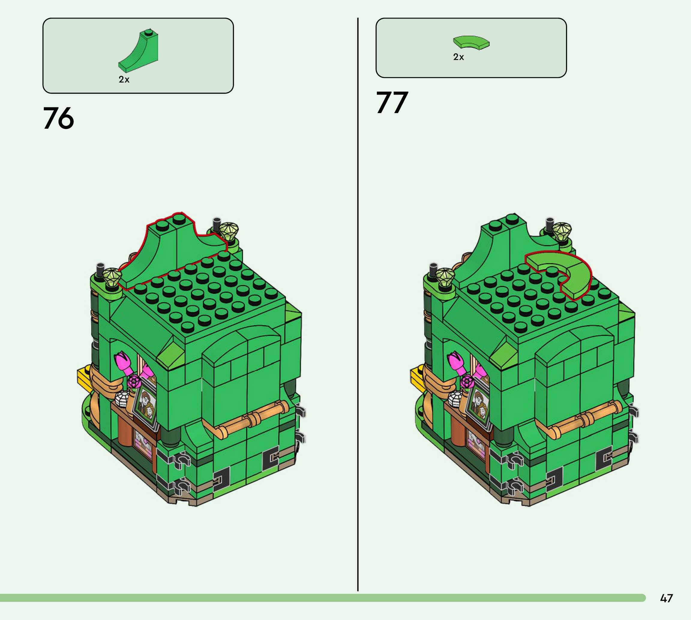 The assembly guide is prepared in a very understandable way for children and adult LEGO enthusiasts. A total of 212 picture galleries are shown, explaining the step-by-step construction stages for 2 different structures.