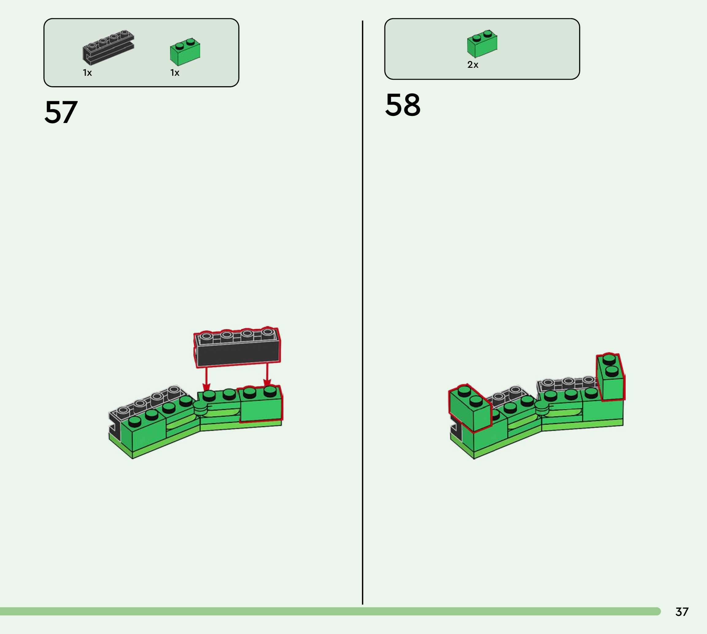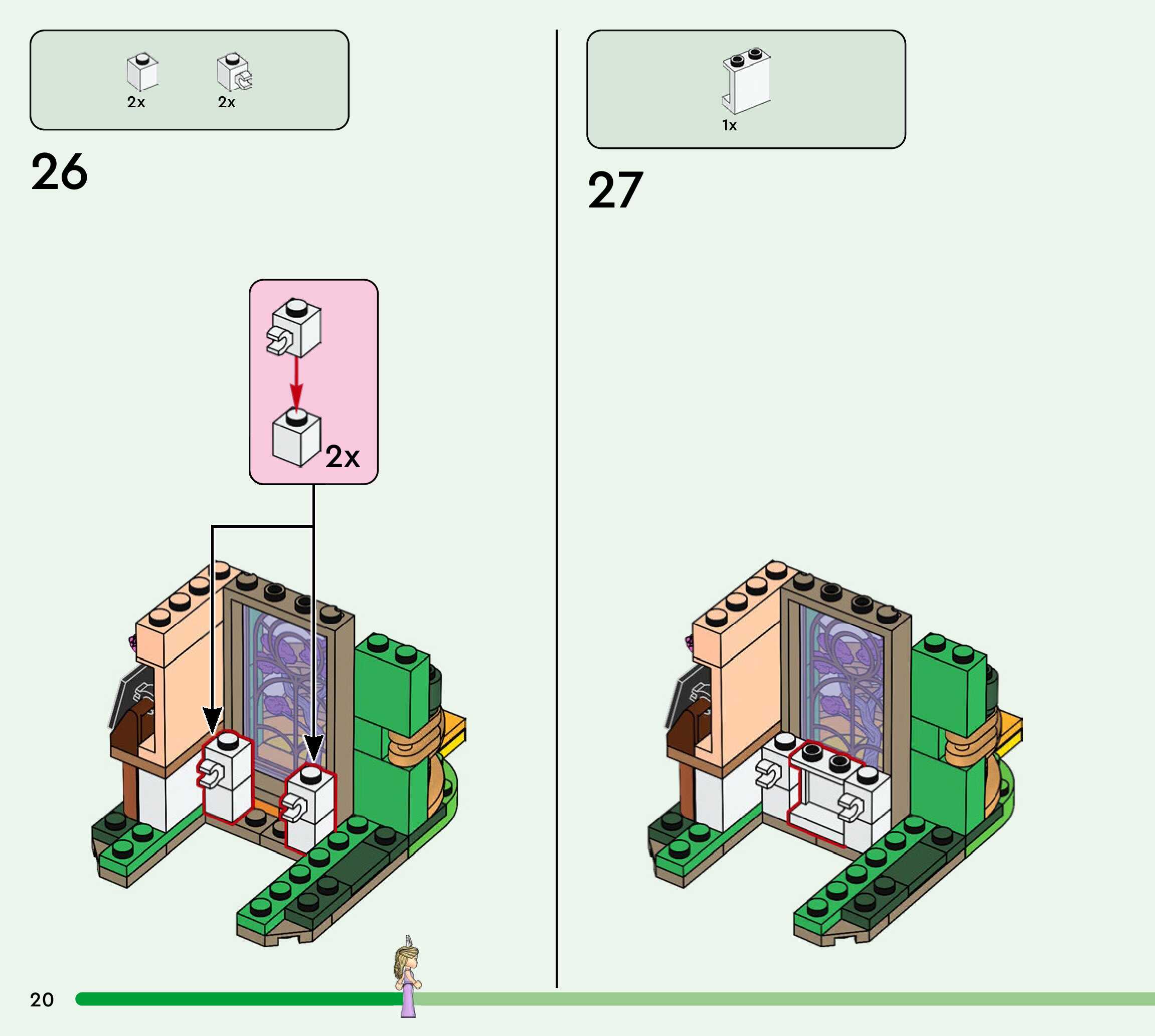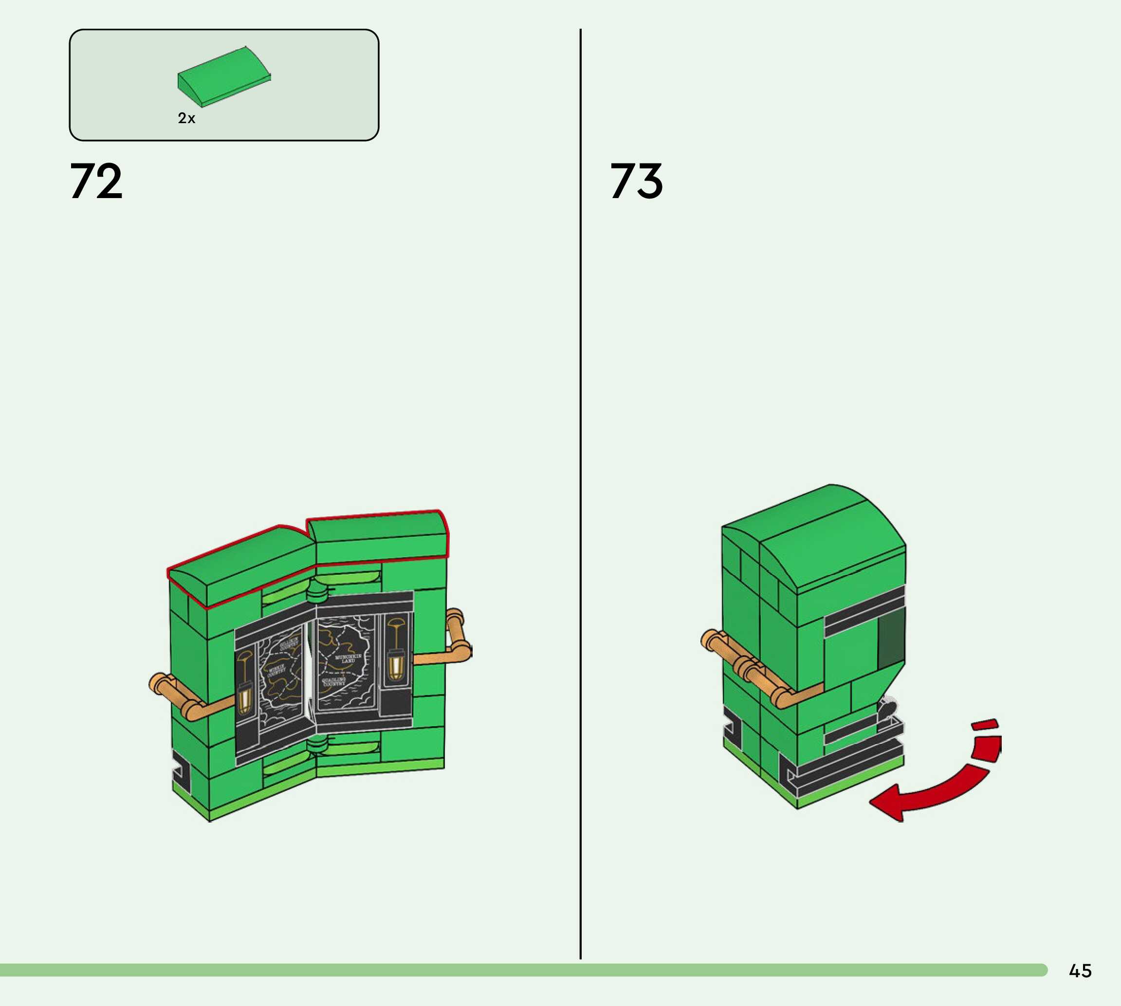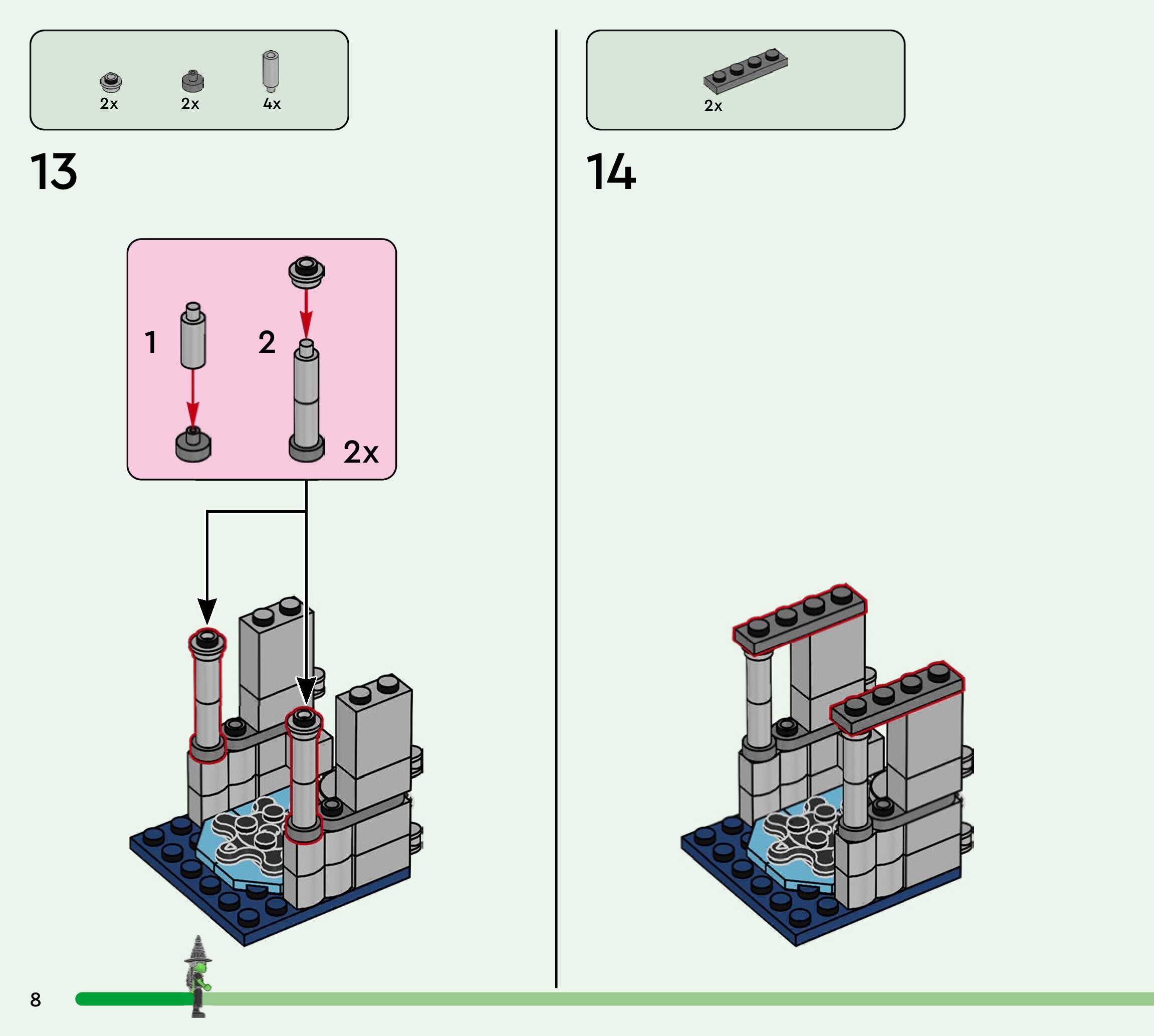 The assembly guide is prepared in a very understandable way for children and adult LEGO enthusiasts. A total of 212 picture galleries are shown, explaining the step-by-step construction stages for 2 different structures.