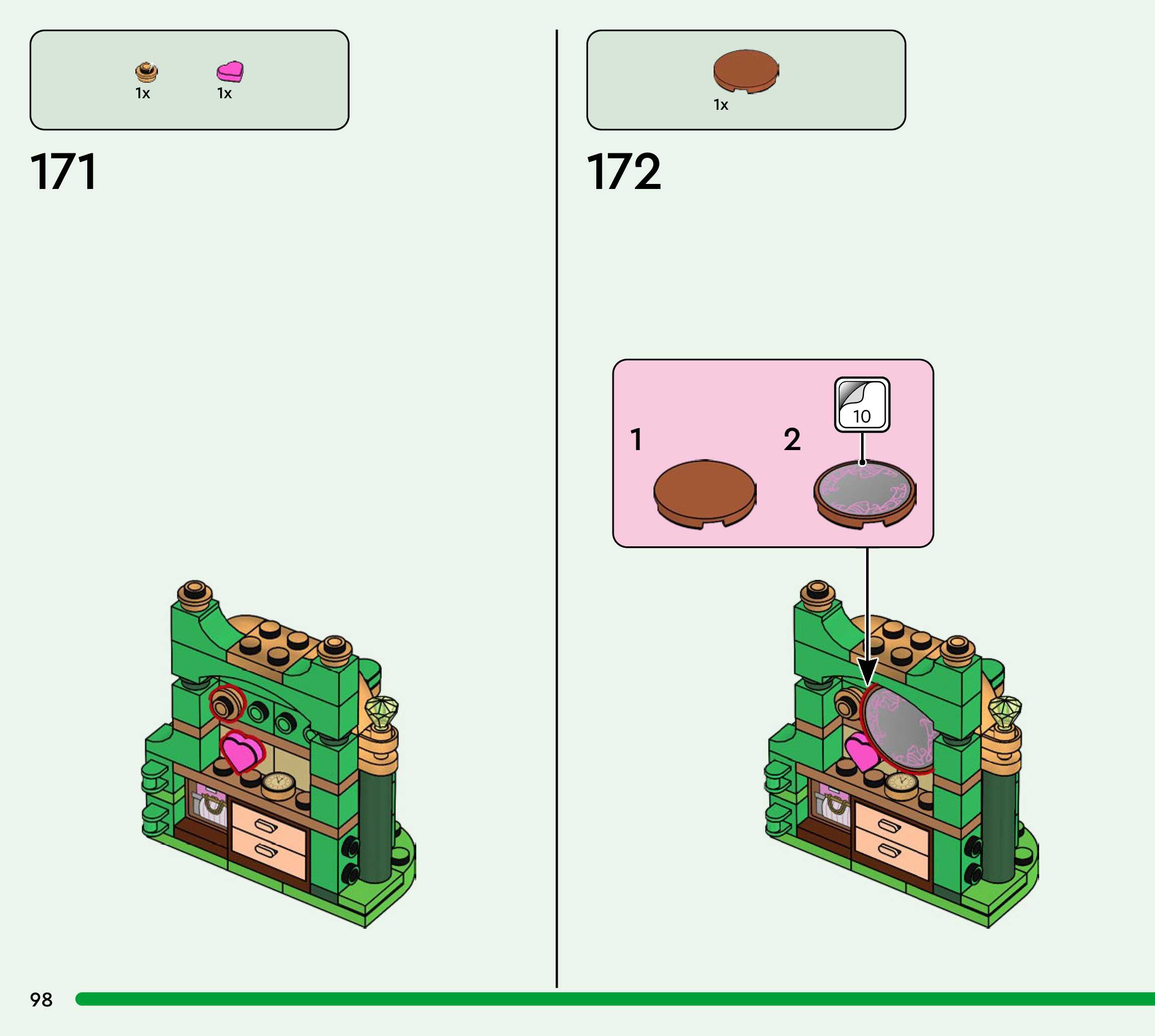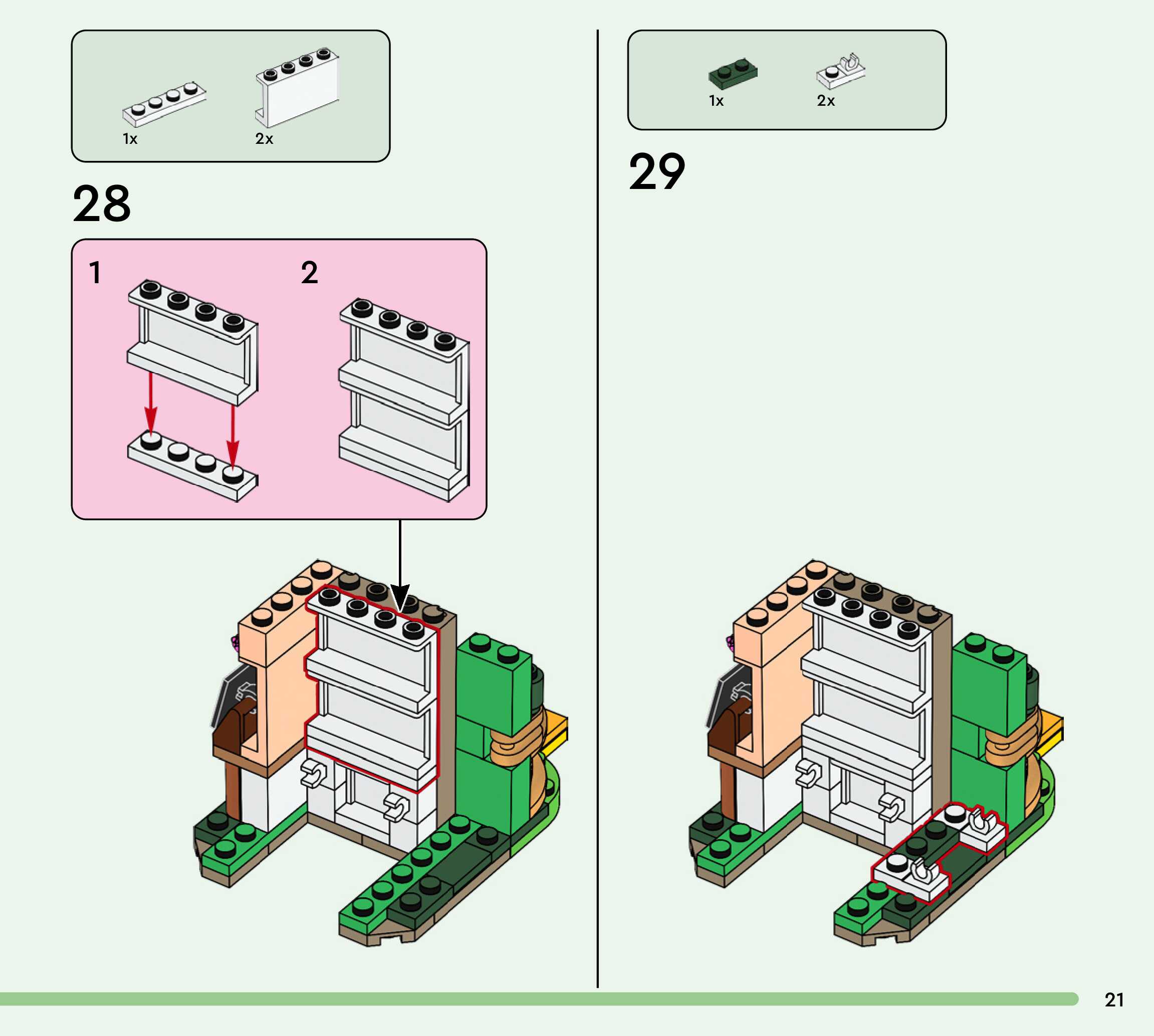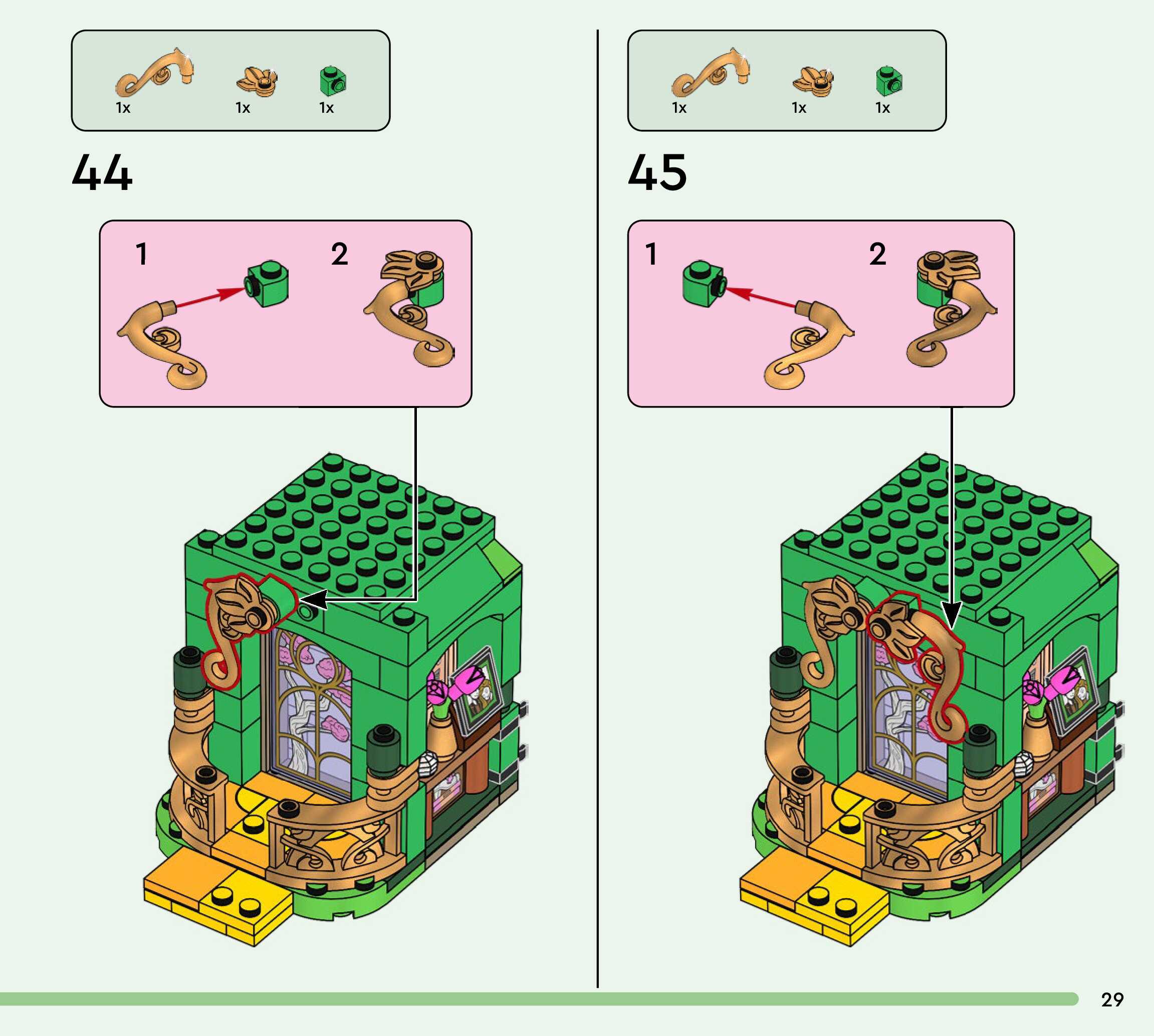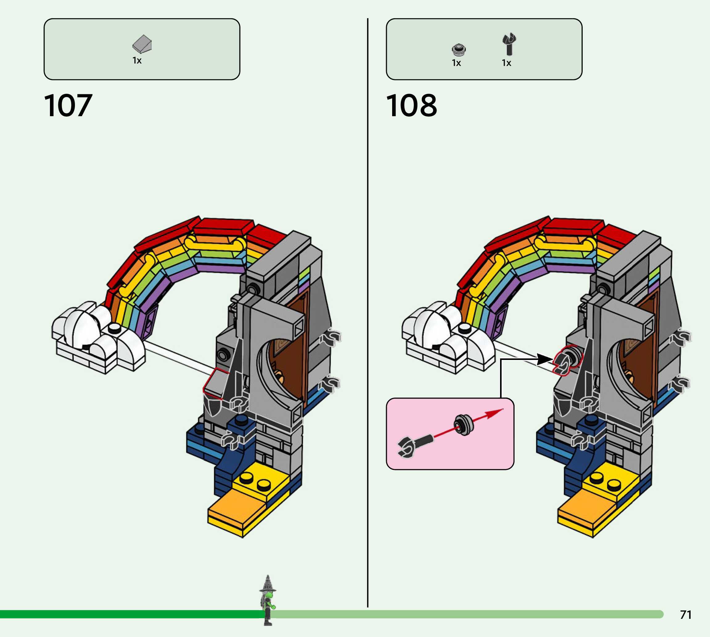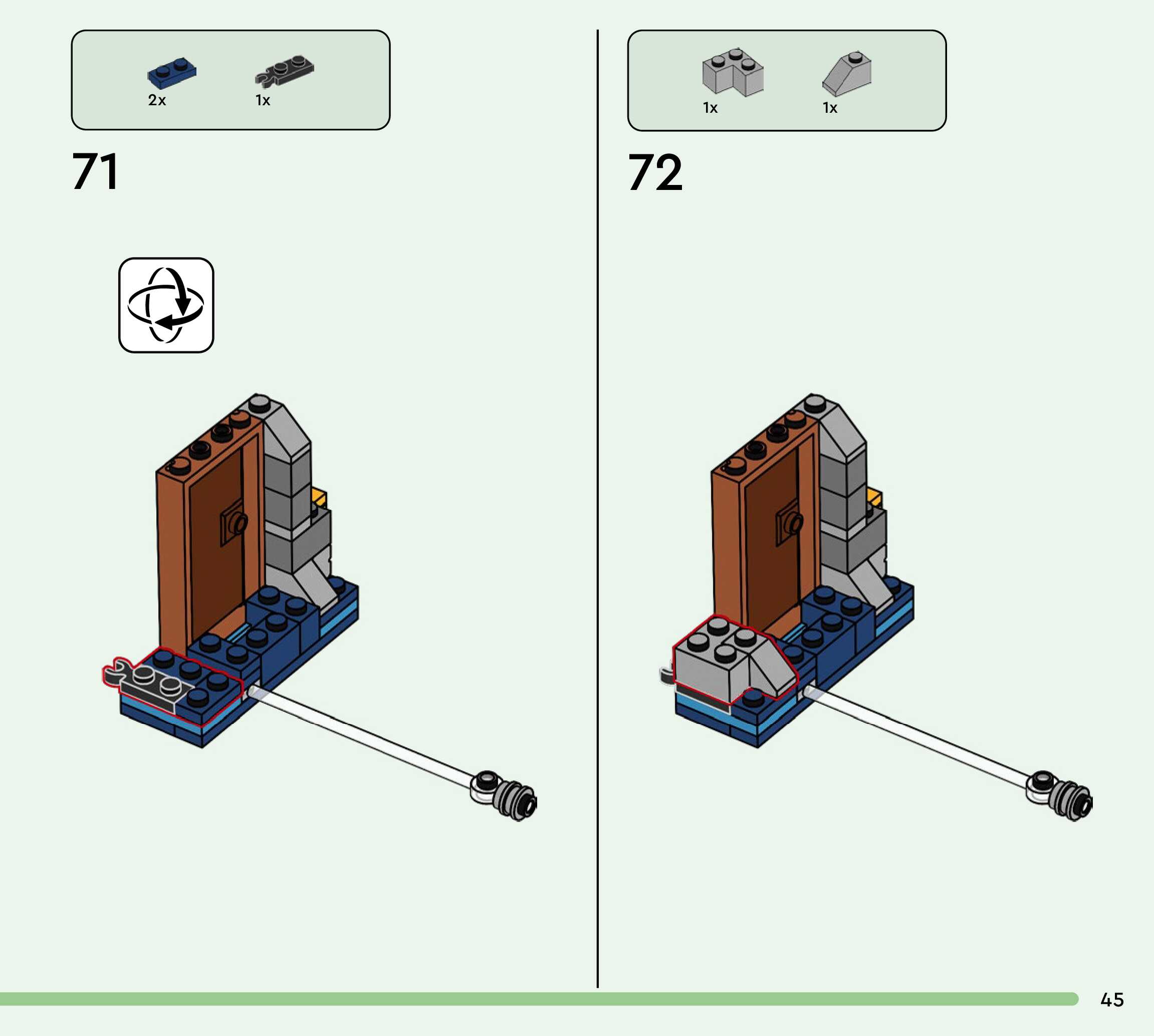 The assembly guide is prepared in a very understandable way for children and adult LEGO enthusiasts. A total of 212 picture galleries are shown, explaining the step-by-step construction stages for 2 different structures.