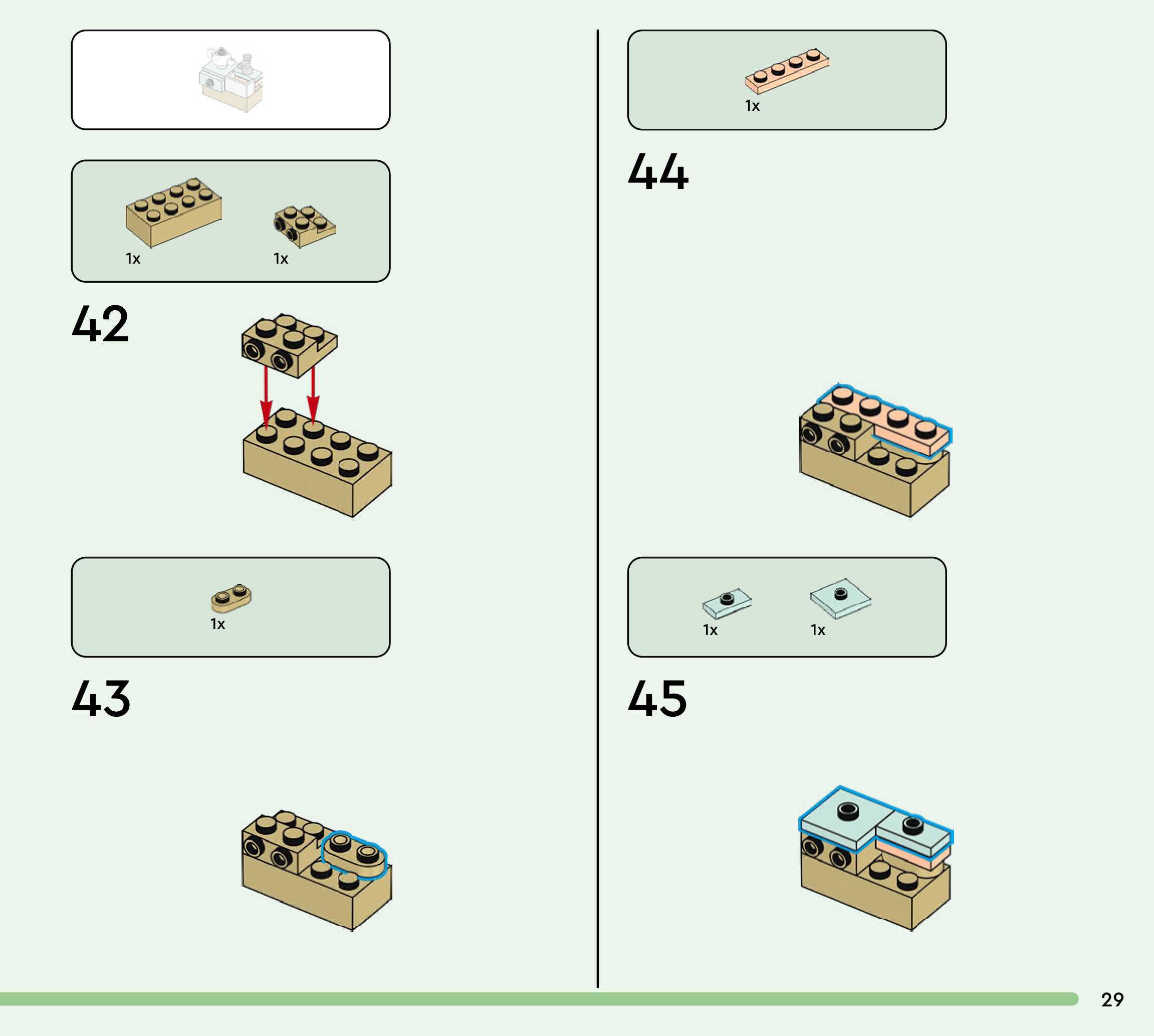 The assembly guide is prepared in a very understandable way for children and adult LEGO enthusiasts. A total of 236 picture galleries are shown, explaining the step-by-step construction stages for 2 different structures.