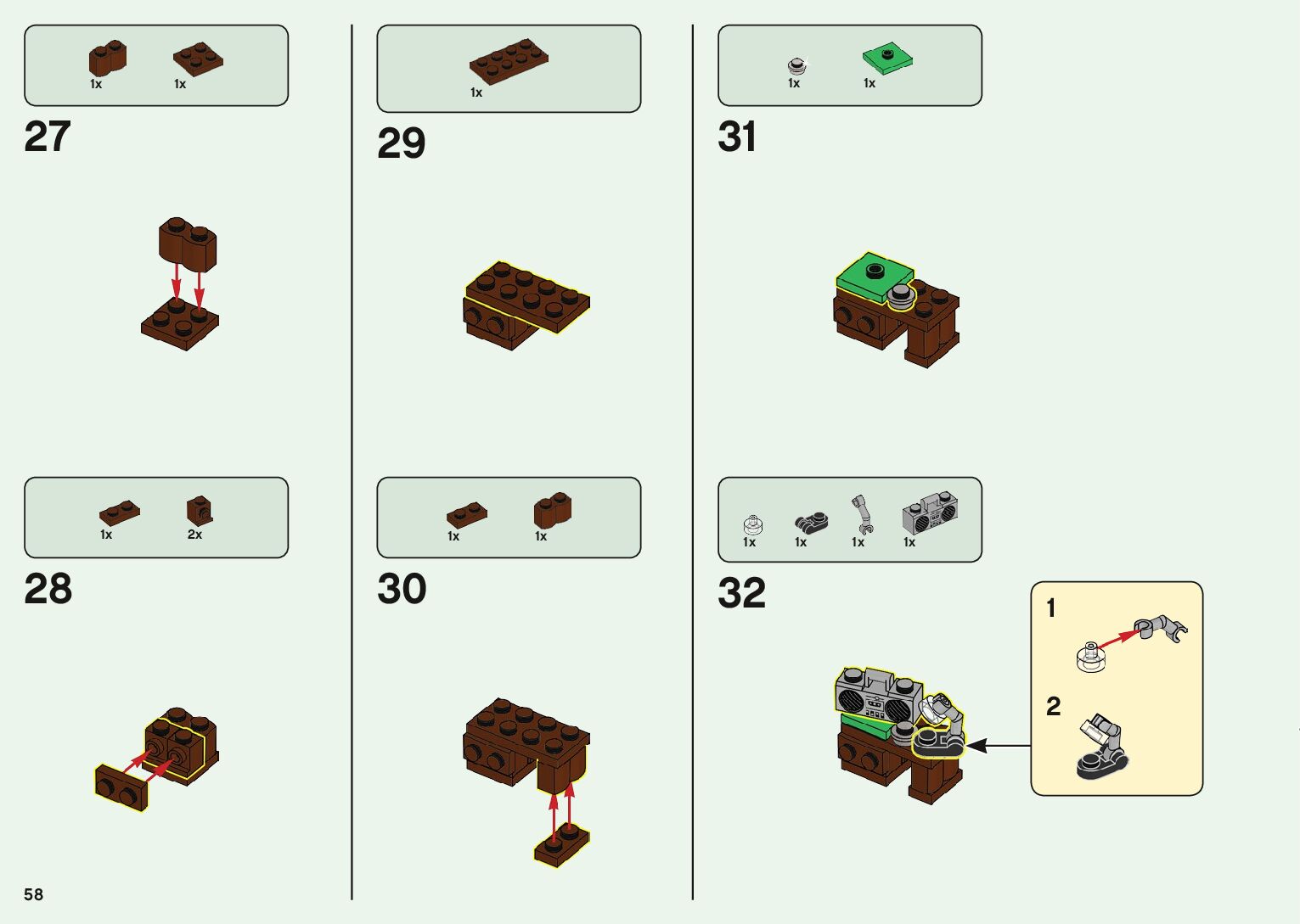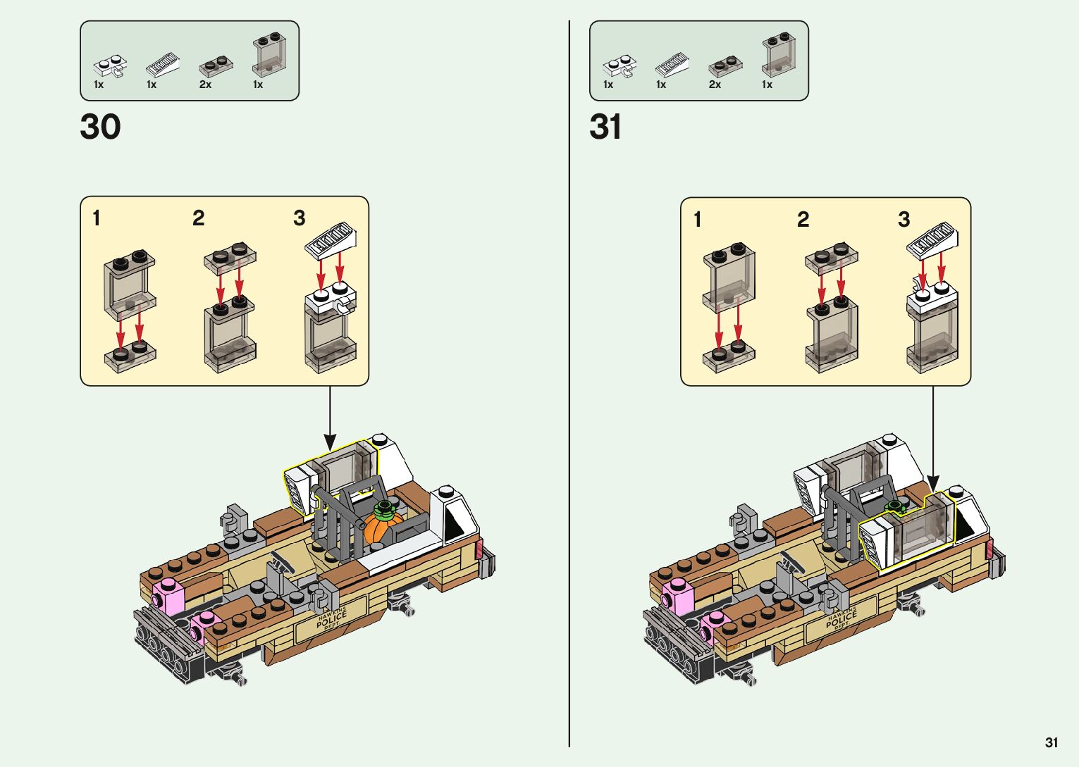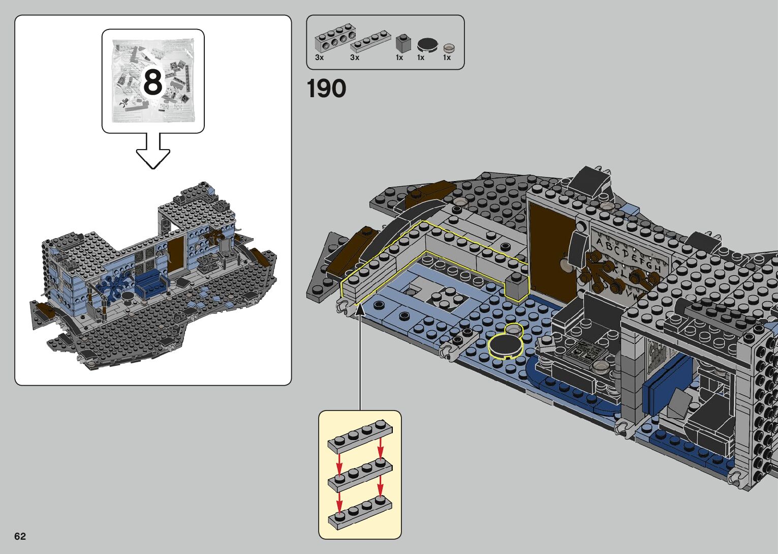 The assembly guide is prepared in a very understandable way for children and adult LEGO enthusiasts. A total of 1500 picture galleries are shown, explaining the step-by-step construction stages for 2 different structures.