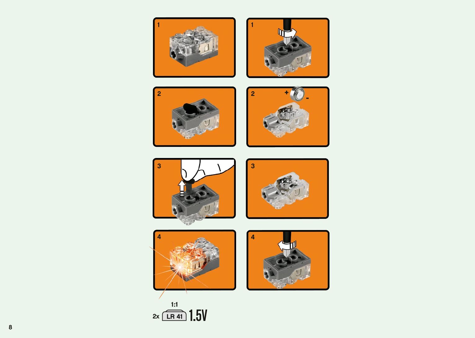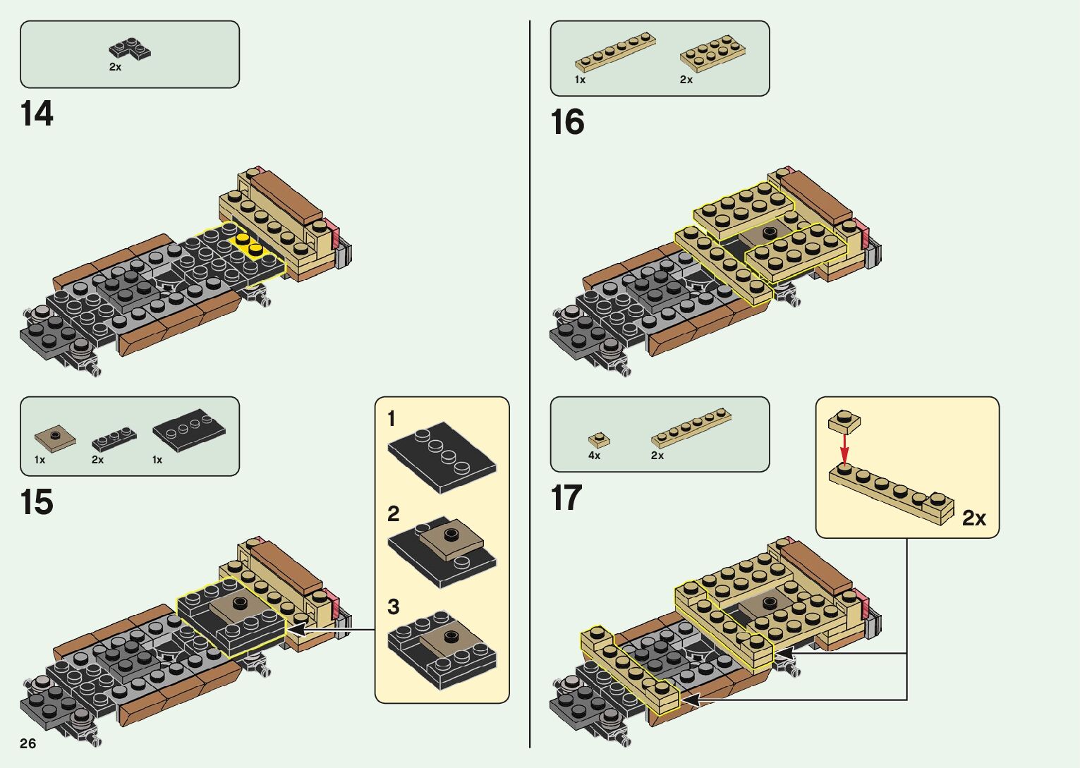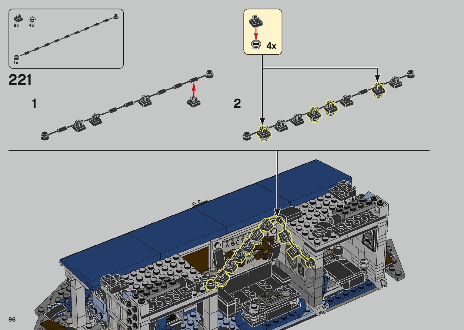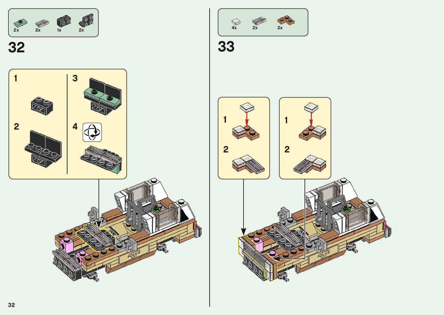 The assembly guide is prepared in a very understandable way for children and adult LEGO enthusiasts. A total of 1500 picture galleries are shown, explaining the step-by-step construction stages for 2 different structures.