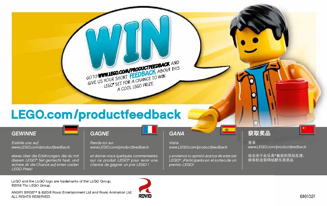 On this page you can find the original construction manual for the LEGO 75822 set. With the assembly manual you can easily learn how to build the 75822 Piggy Plane Attack step by step. The set was released in 2016.