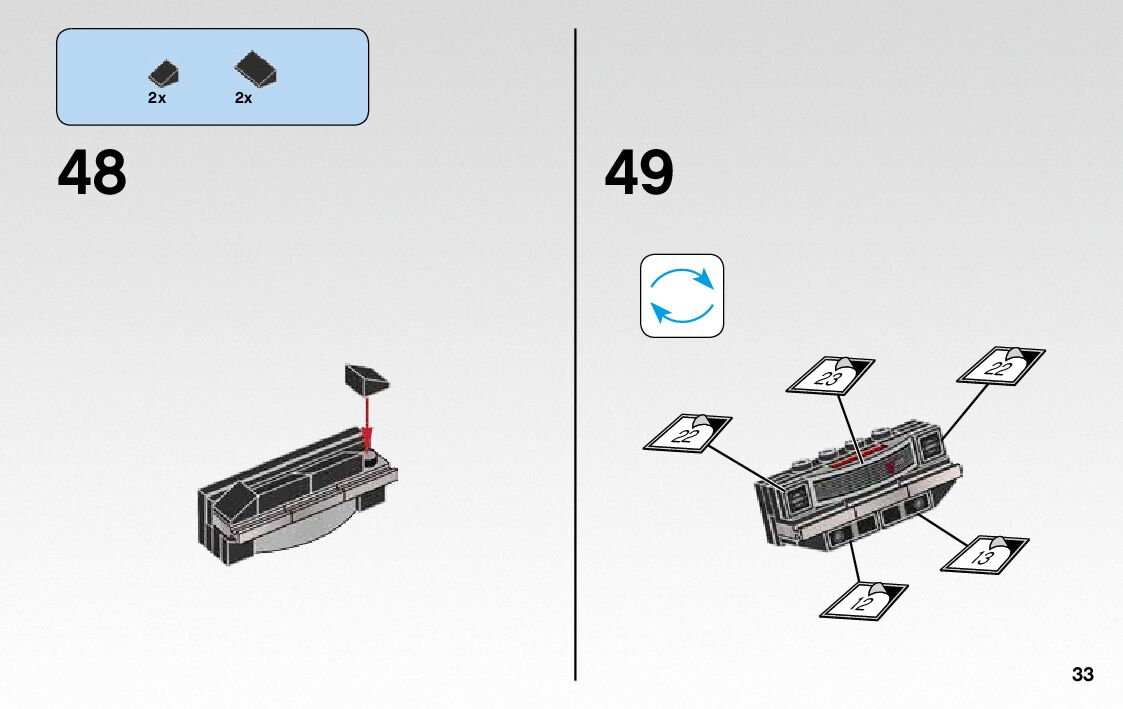 The assembly guide is prepared in a very understandable way for children and adult LEGO enthusiasts. A total of 141 picture galleries are shown, explaining the step-by-step construction stages for 2 different structures.