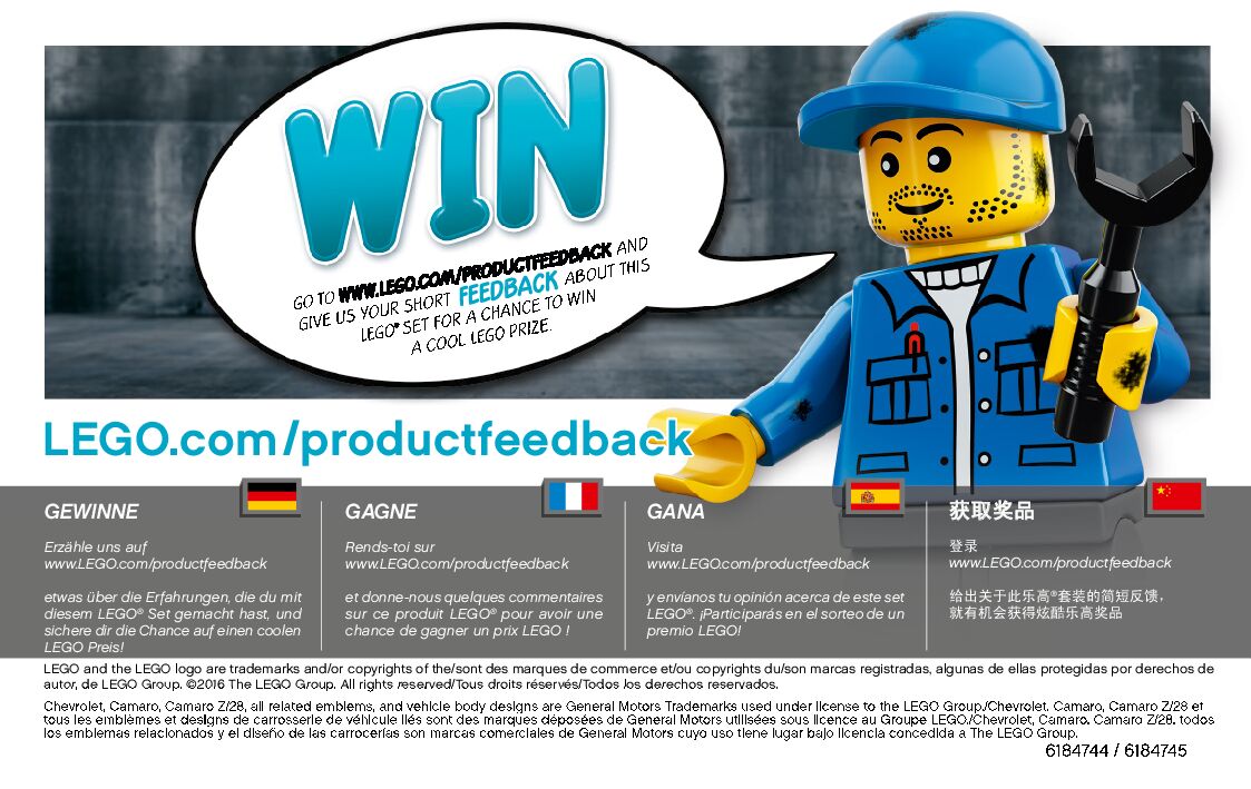 This page shares information about LEGO 75874 Chevrolet Camaro Drag Race manual, LEGO 75874 PDF instructions, LEGO 75874 Chevrolet Camaro Drag Race building guide online, How to build 75874 Chevrolet Camaro Drag Race LEGO.