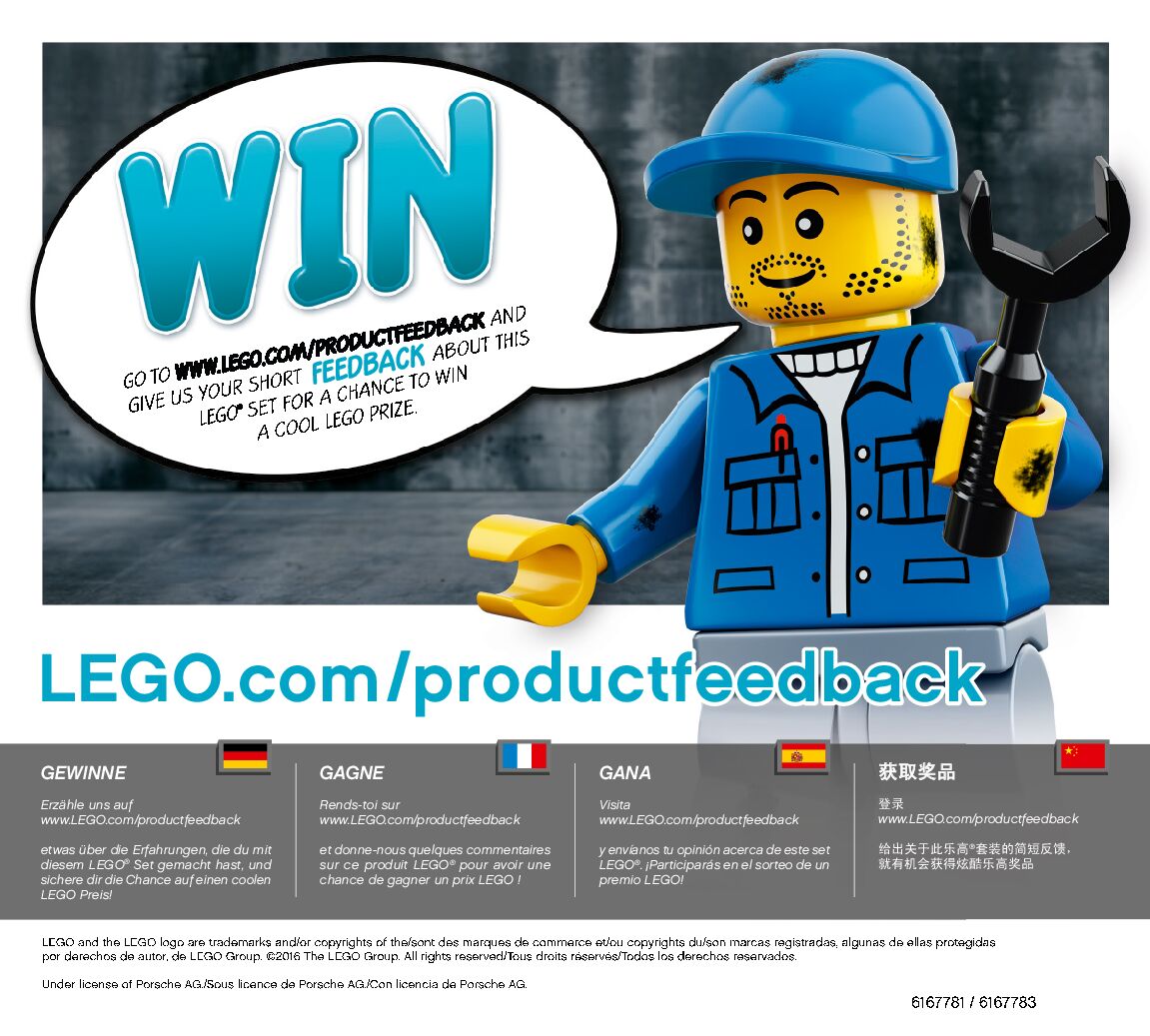 On this page you can find the original construction manual for the LEGO 75876 set. With the assembly manual you can easily learn how to build the 75876 Porsche 919 Hybrid and 917K Pit Lane step by step. The set was released in 2016.