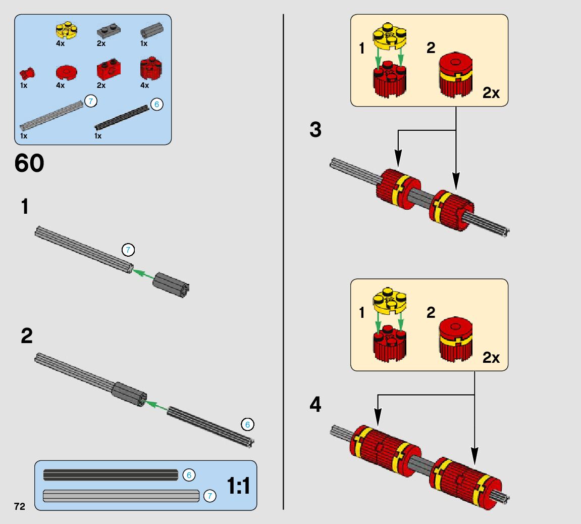 The assembly guide is prepared in a very understandable way for children and adult LEGO enthusiasts. A total of 144 picture galleries are shown, explaining the step-by-step construction stages for 2 different structures.