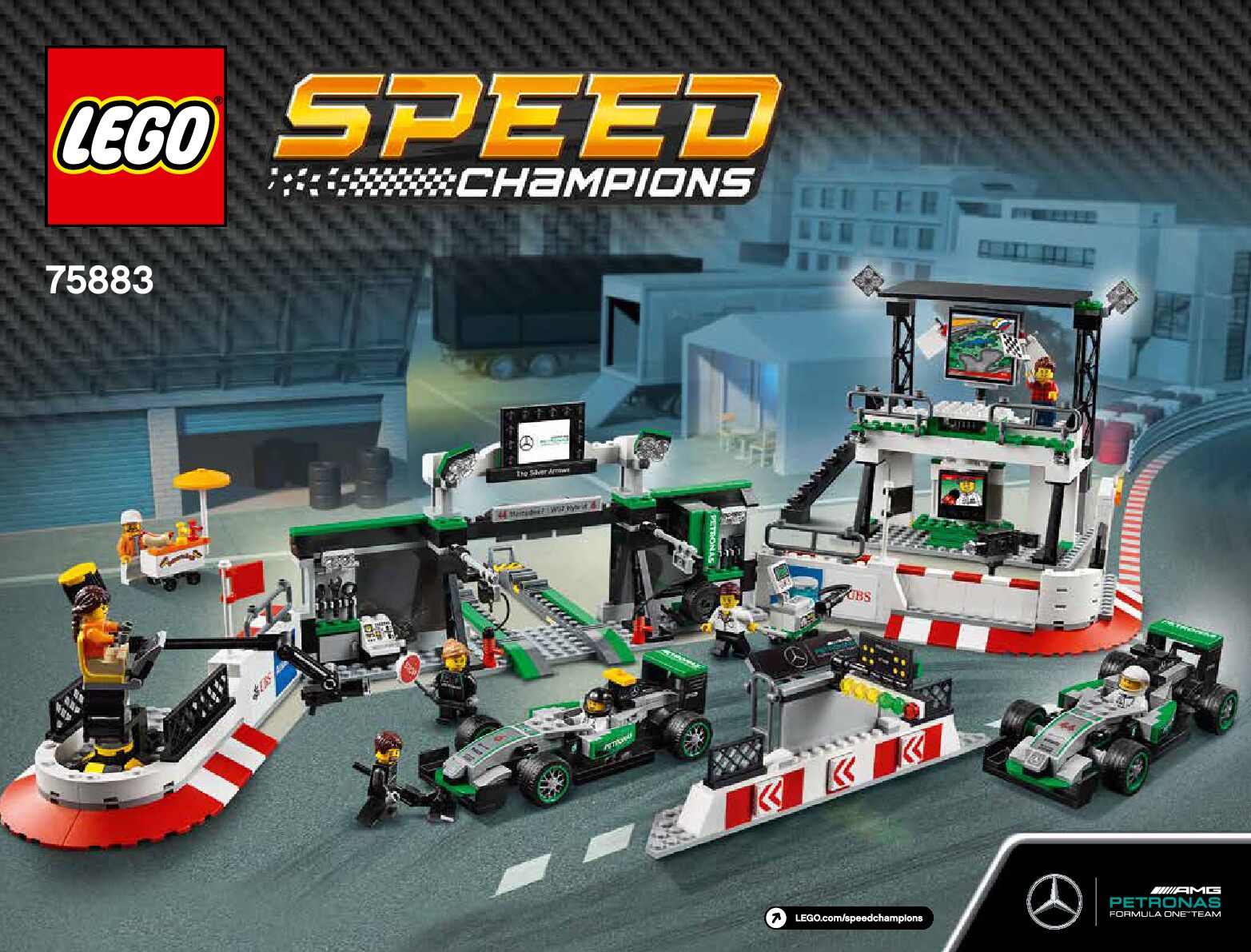 On this page you can find the original construction manual for the LEGO 75883 set. With the assembly manual you can easily learn how to build the 75883 MERCEDES AMG PETRONAS Formula One Team step by step. The set was released in 2017.