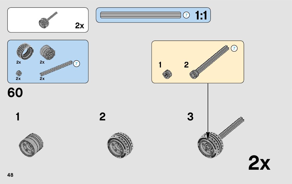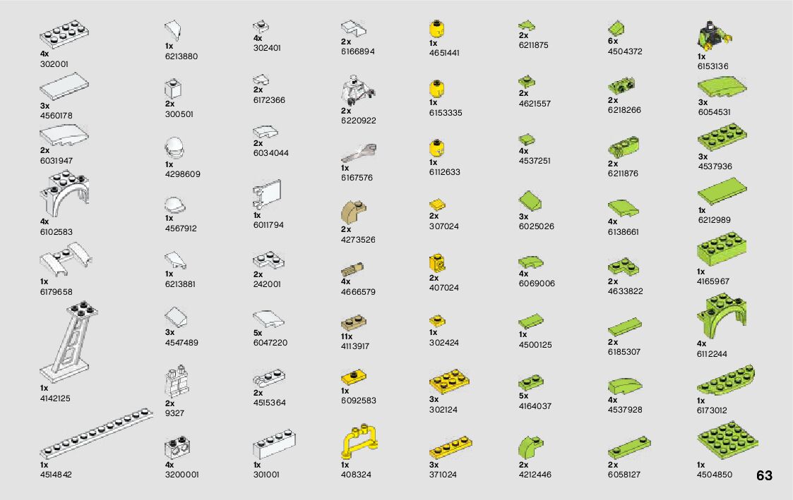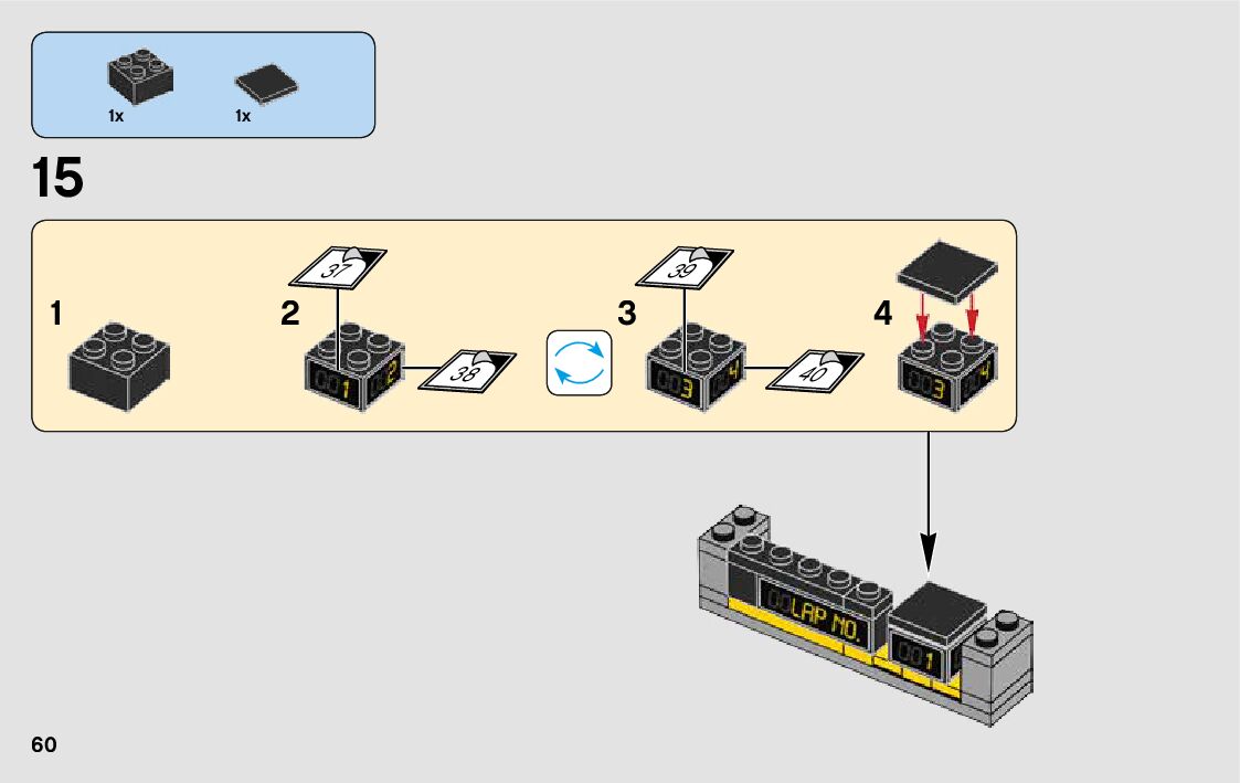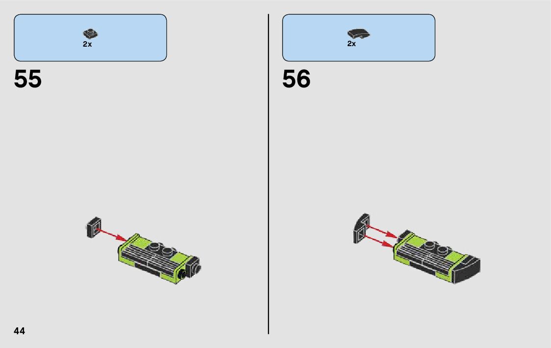 The assembly guide is prepared in a very understandable way for children and adult LEGO enthusiasts. A total of 120 picture galleries are shown, explaining the step-by-step construction stages for 2 different structures.