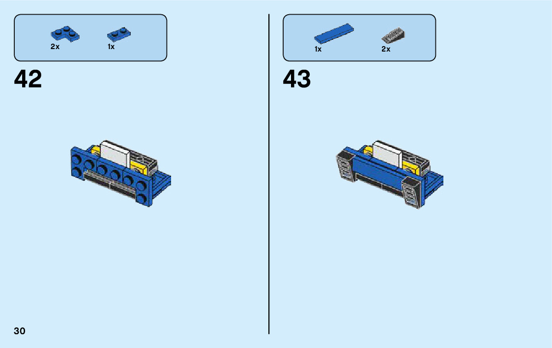 The assembly guide is prepared in a very understandable way for children and adult LEGO enthusiasts. A total of 60 picture galleries are shown, explaining the step-by-step construction stages for 1 different structures.