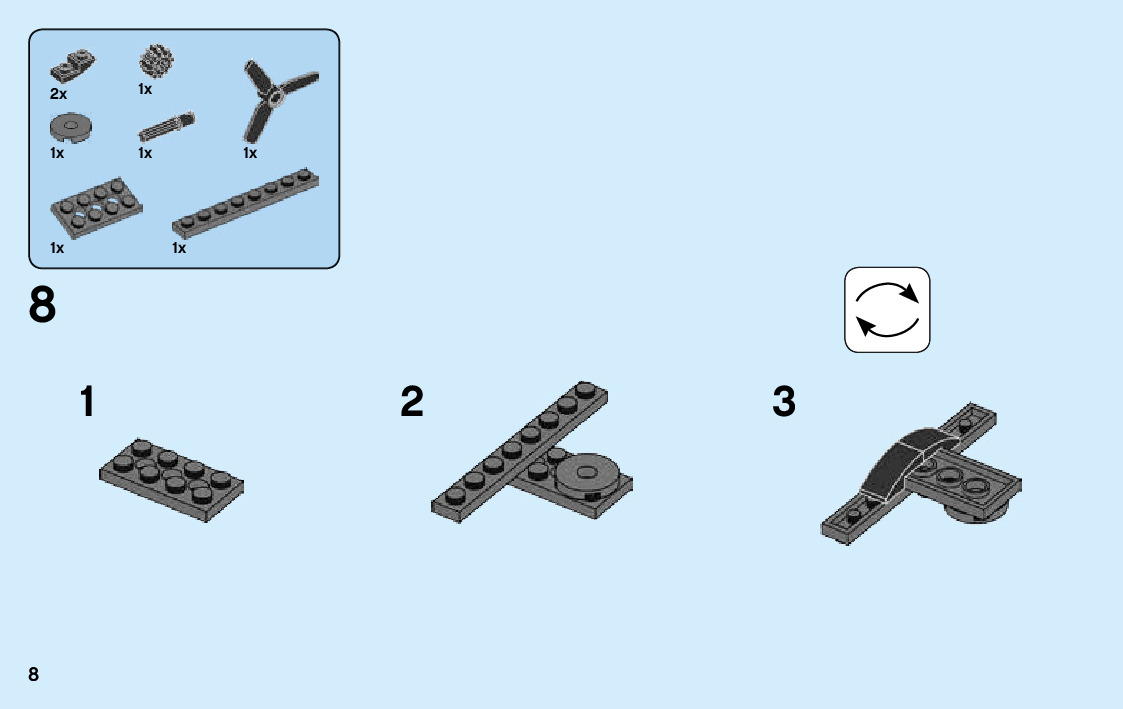 The assembly guide is prepared in a very understandable way for children and adult LEGO enthusiasts. A total of 64 picture galleries are shown, explaining the step-by-step construction stages for 1 different structures.