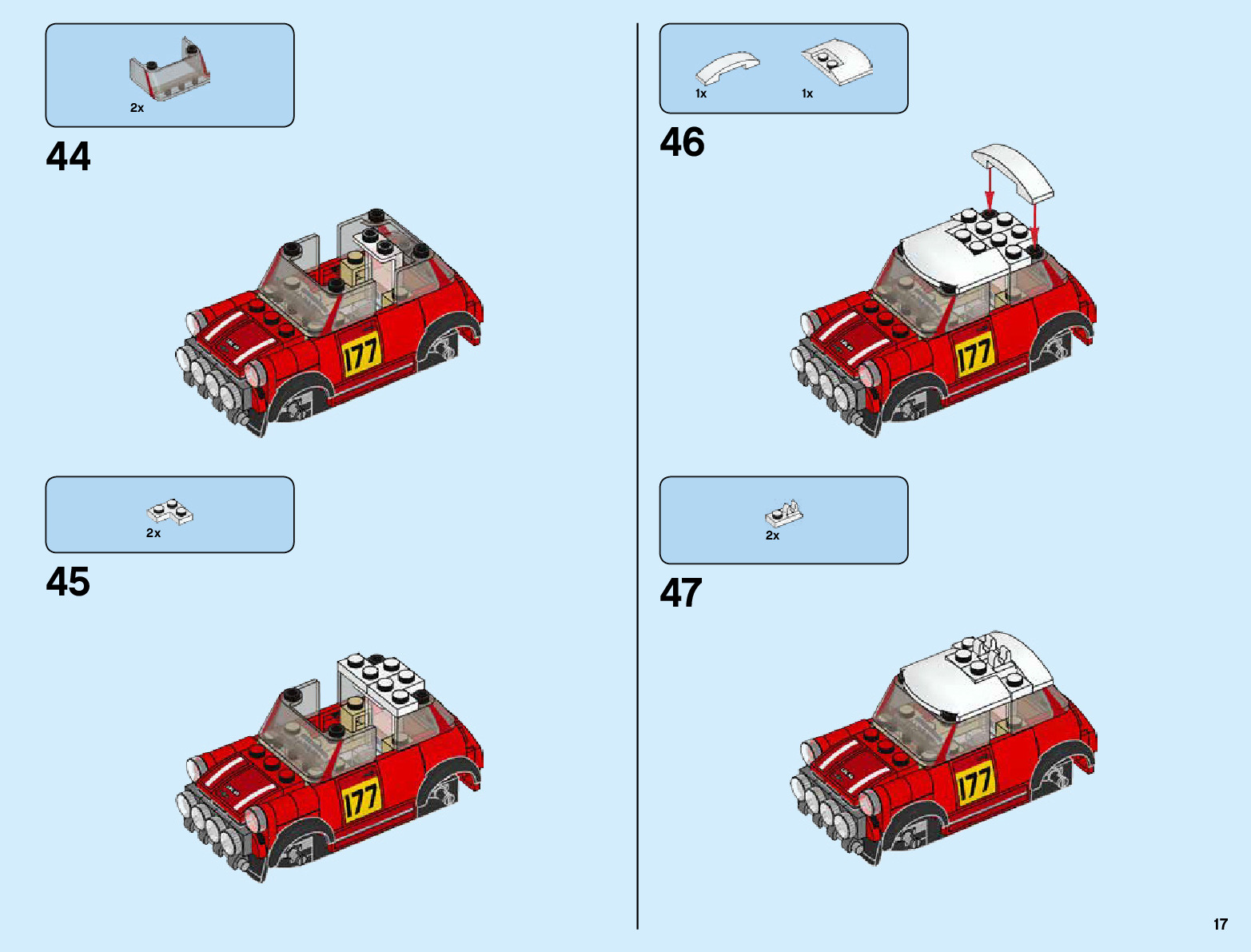 On this page you can find the original construction manual for the LEGO 75894 set. With the assembly manual you can easily learn how to build the 75894 1967 Mini Cooper S Rally and 2018 MINI John Cooper Works Buggy step by step. The set was released in 2019.