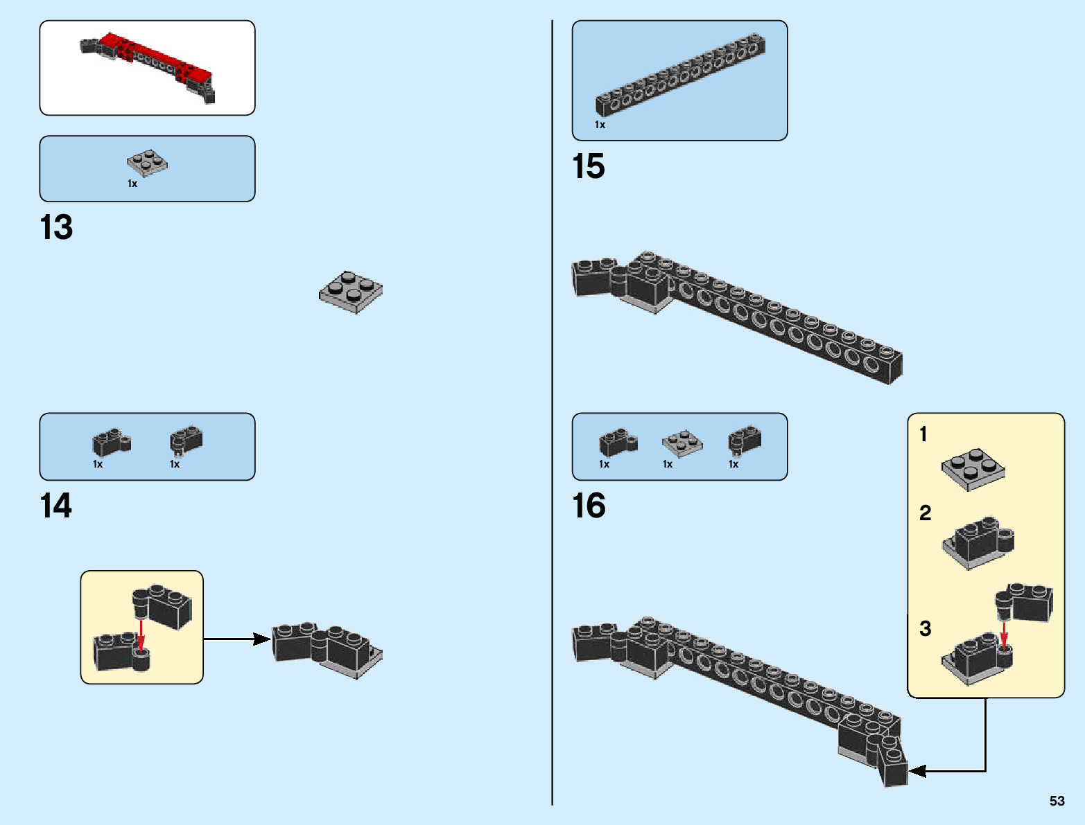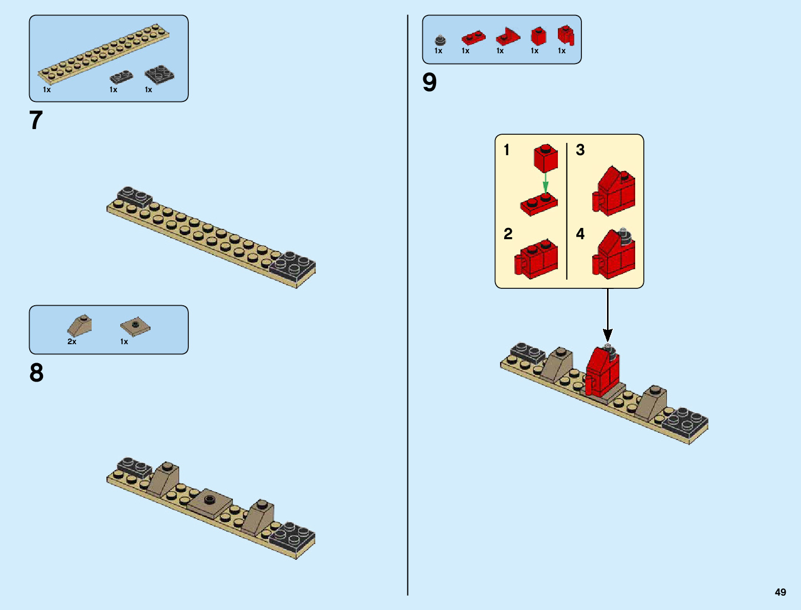 The assembly guide is prepared in a very understandable way for children and adult LEGO enthusiasts. A total of 64 picture galleries are shown, explaining the step-by-step construction stages for 1 different structures.