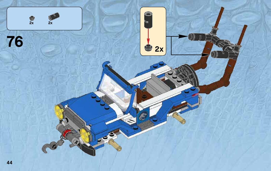 The assembly guide is prepared in a very understandable way for children and adult LEGO enthusiasts. A total of 108 picture galleries are shown, explaining the step-by-step construction stages for 2 different structures.
