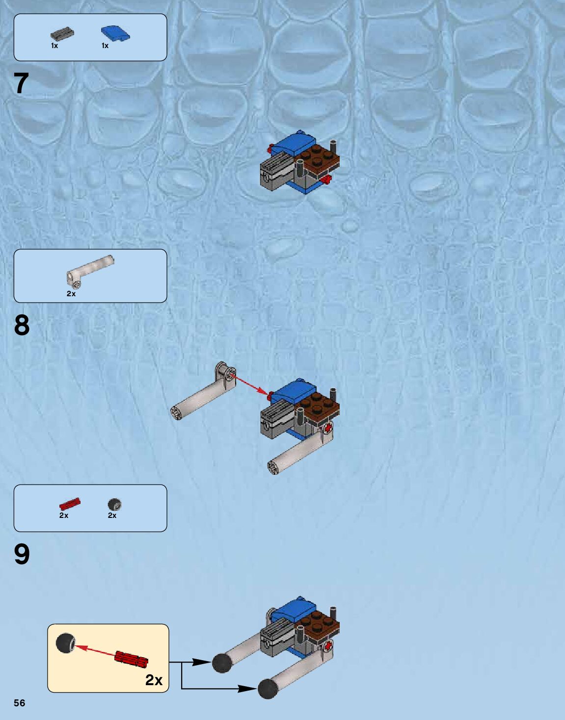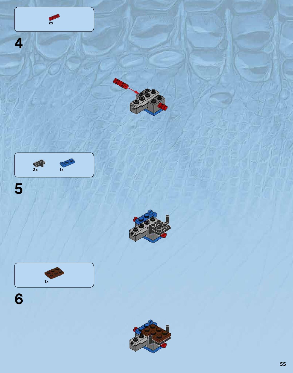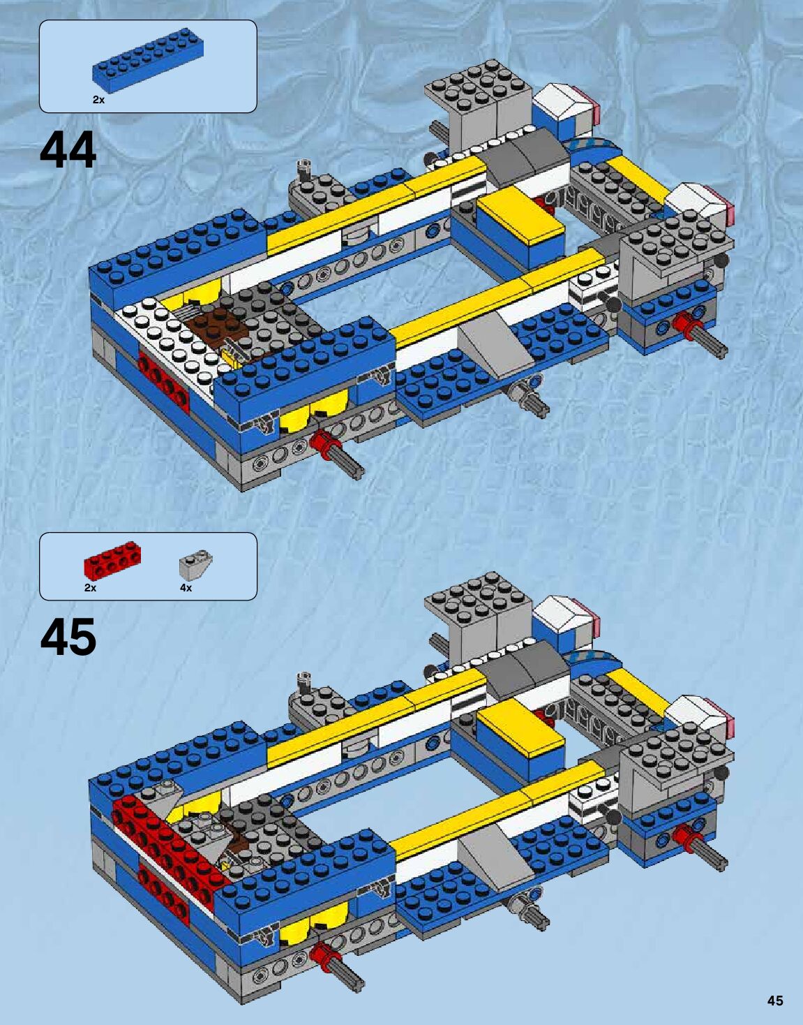 The assembly guide is prepared in a very understandable way for children and adult LEGO enthusiasts. A total of 120 picture galleries are shown, explaining the step-by-step construction stages for 2 different structures.