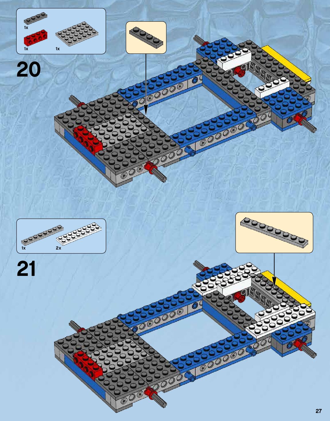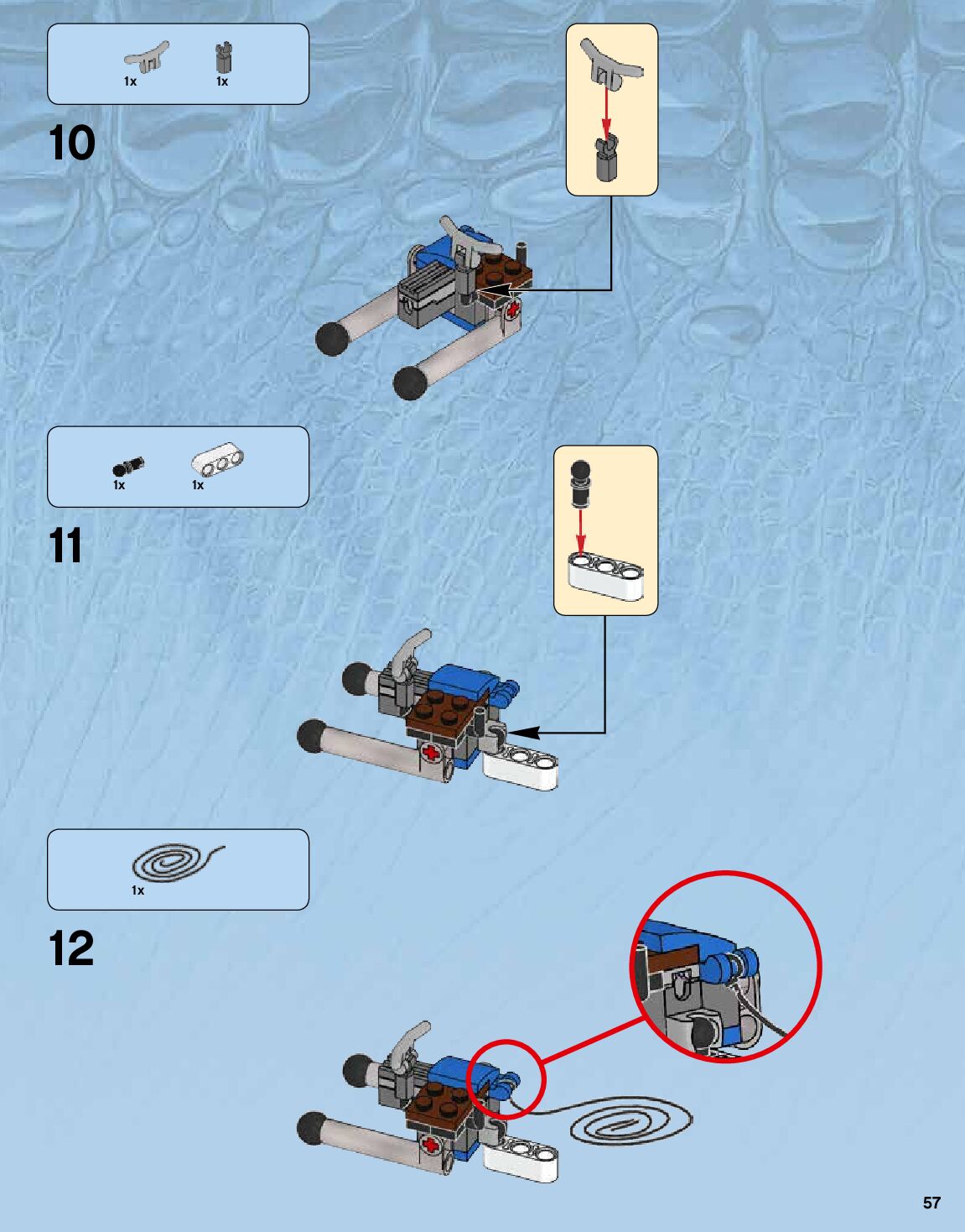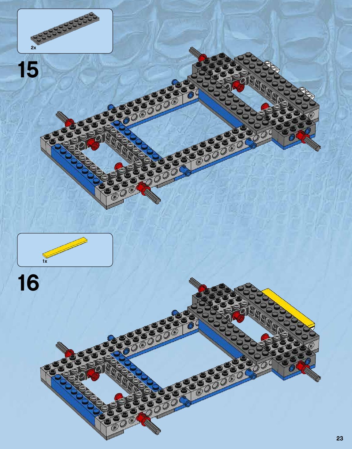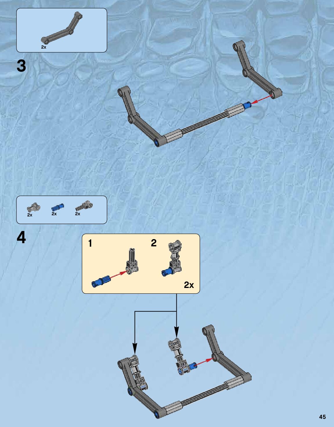 The assembly guide is prepared in a very understandable way for children and adult LEGO enthusiasts. A total of 120 picture galleries are shown, explaining the step-by-step construction stages for 2 different structures.