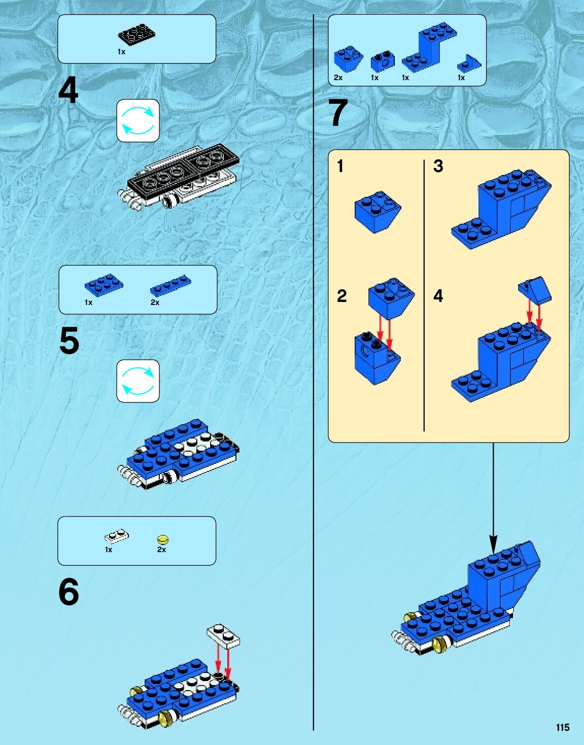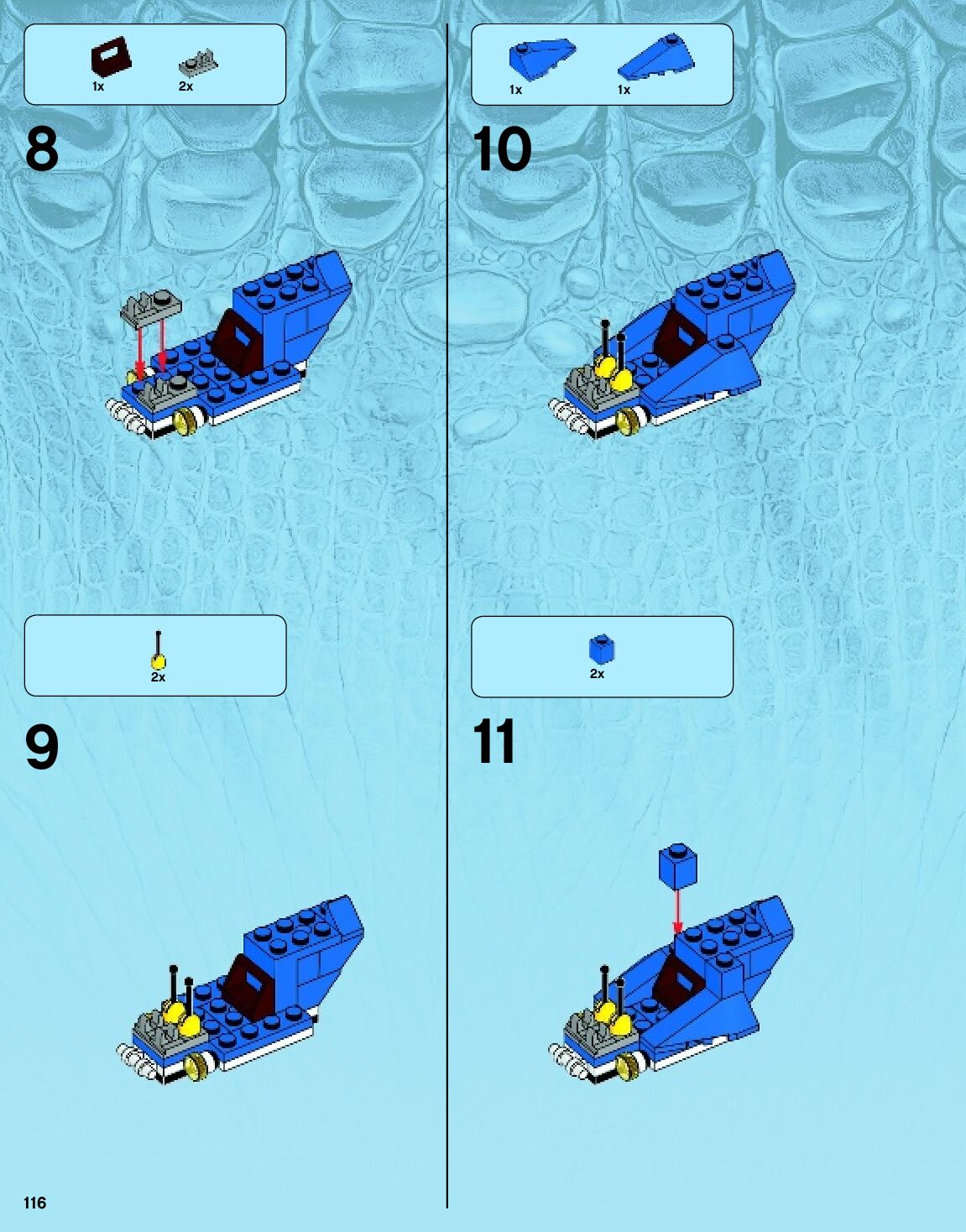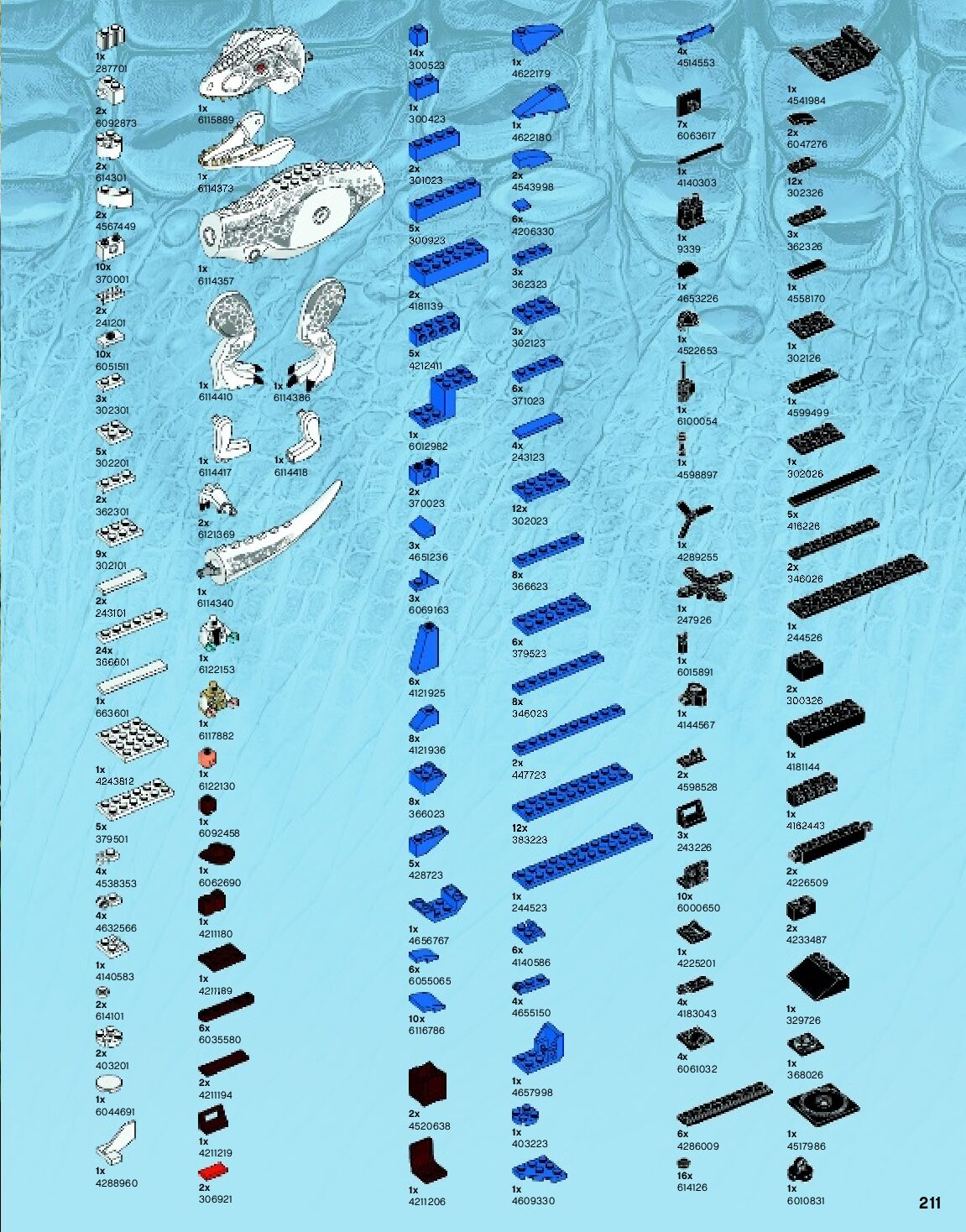 The assembly guide is prepared in a very understandable way for children and adult LEGO enthusiasts. A total of 216 picture galleries are shown, explaining the step-by-step construction stages for 1 different structures.