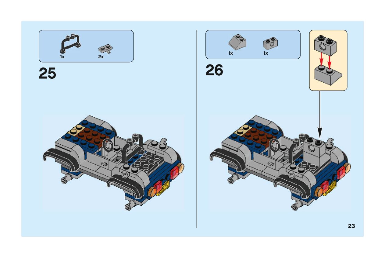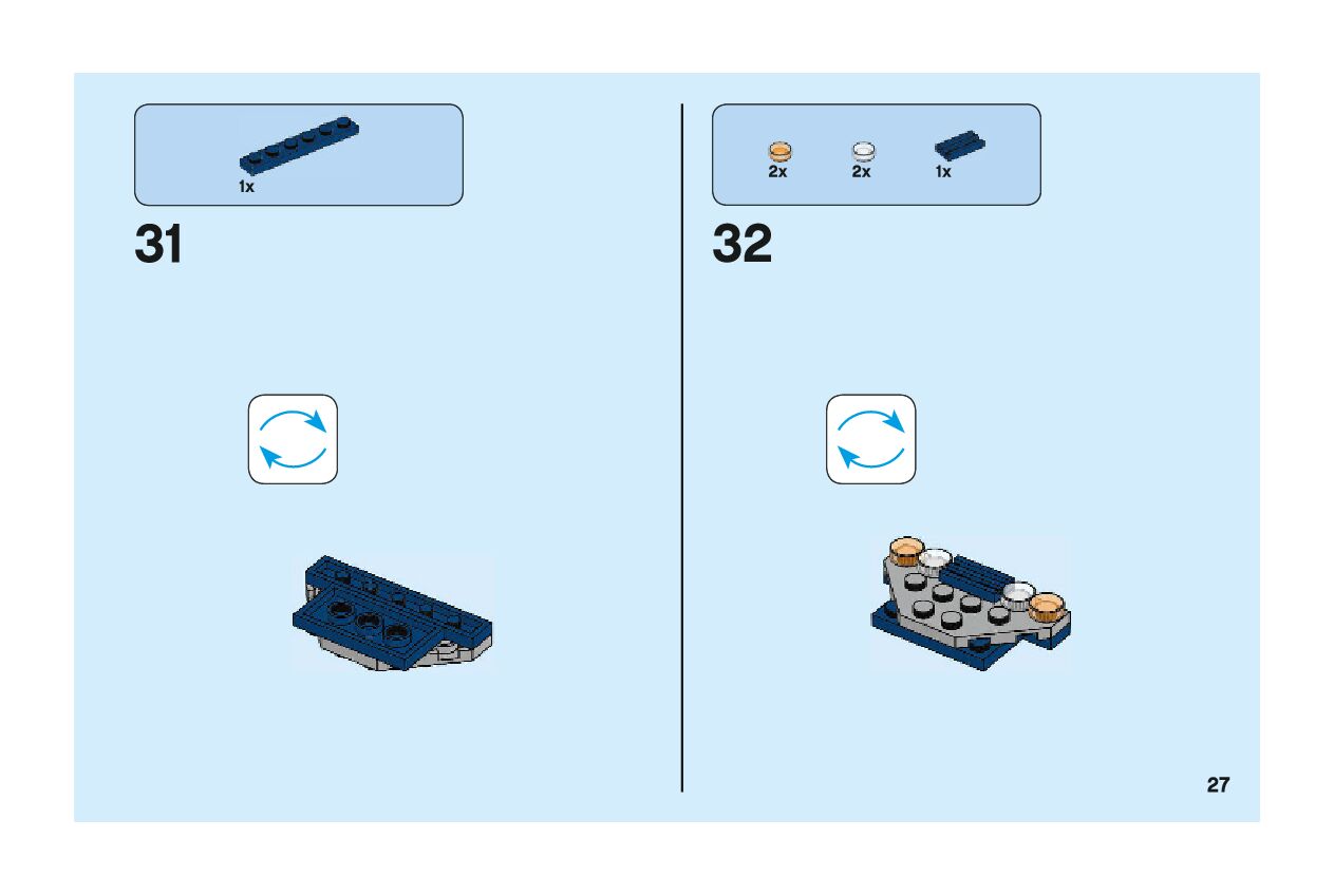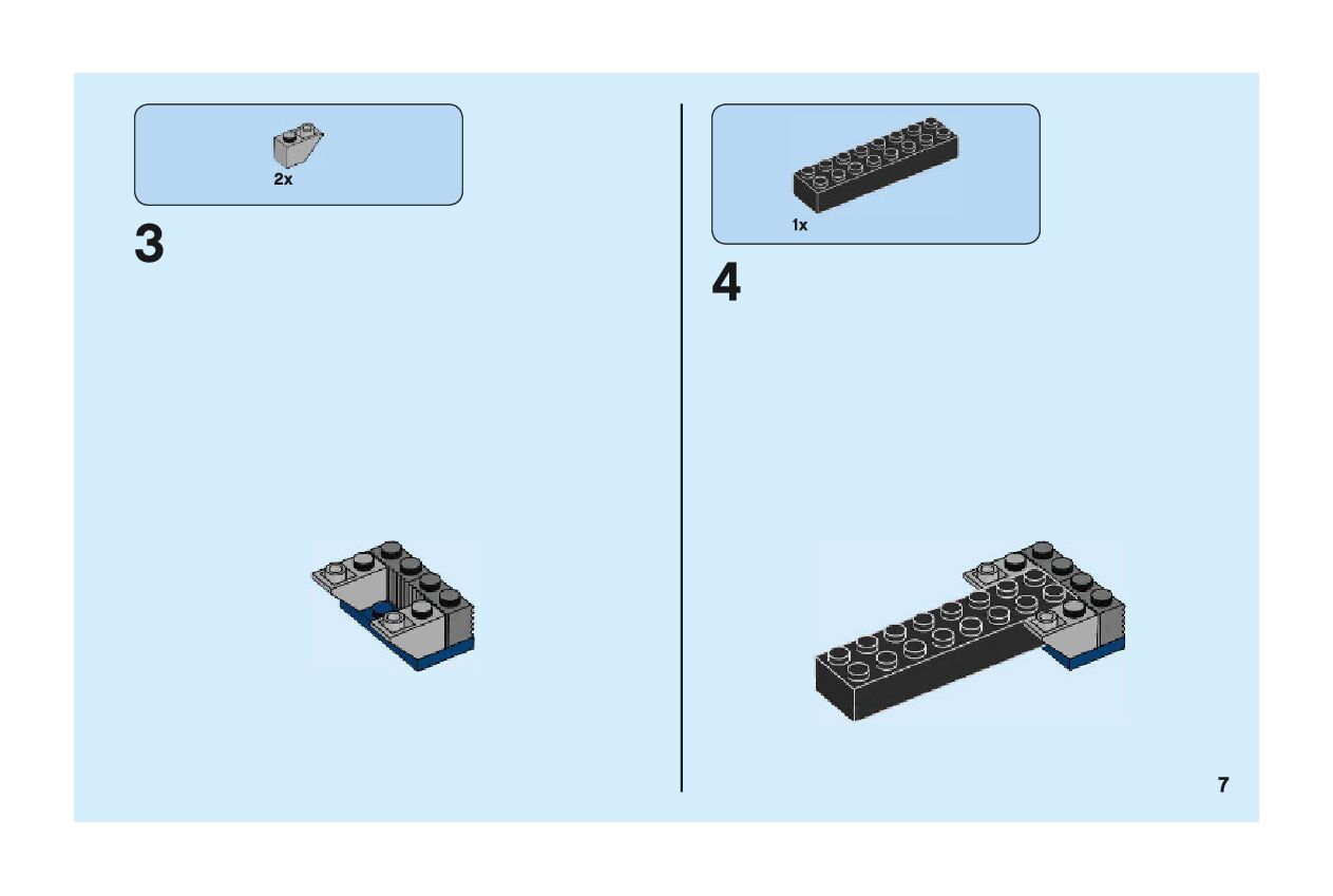 The assembly guide is prepared in a very understandable way for children and adult LEGO enthusiasts. A total of 44 picture galleries are shown, explaining the step-by-step construction stages for 1 different structures.