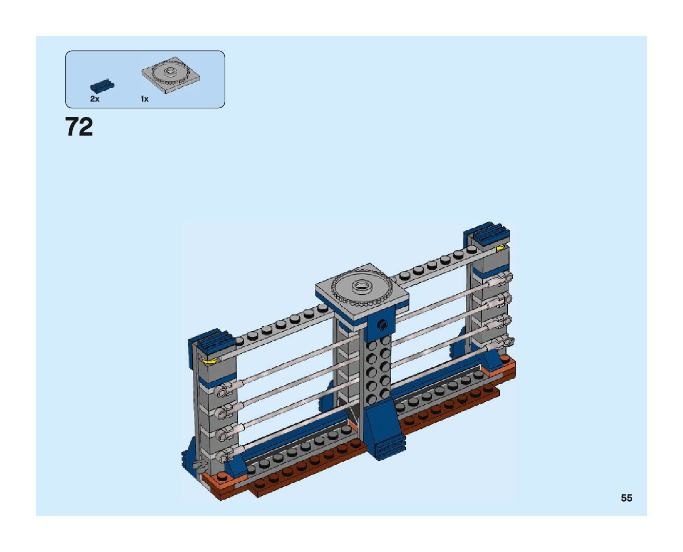 The assembly guide is prepared in a very understandable way for children and adult LEGO enthusiasts. A total of 72 picture galleries are shown, explaining the step-by-step construction stages for 1 different structures.