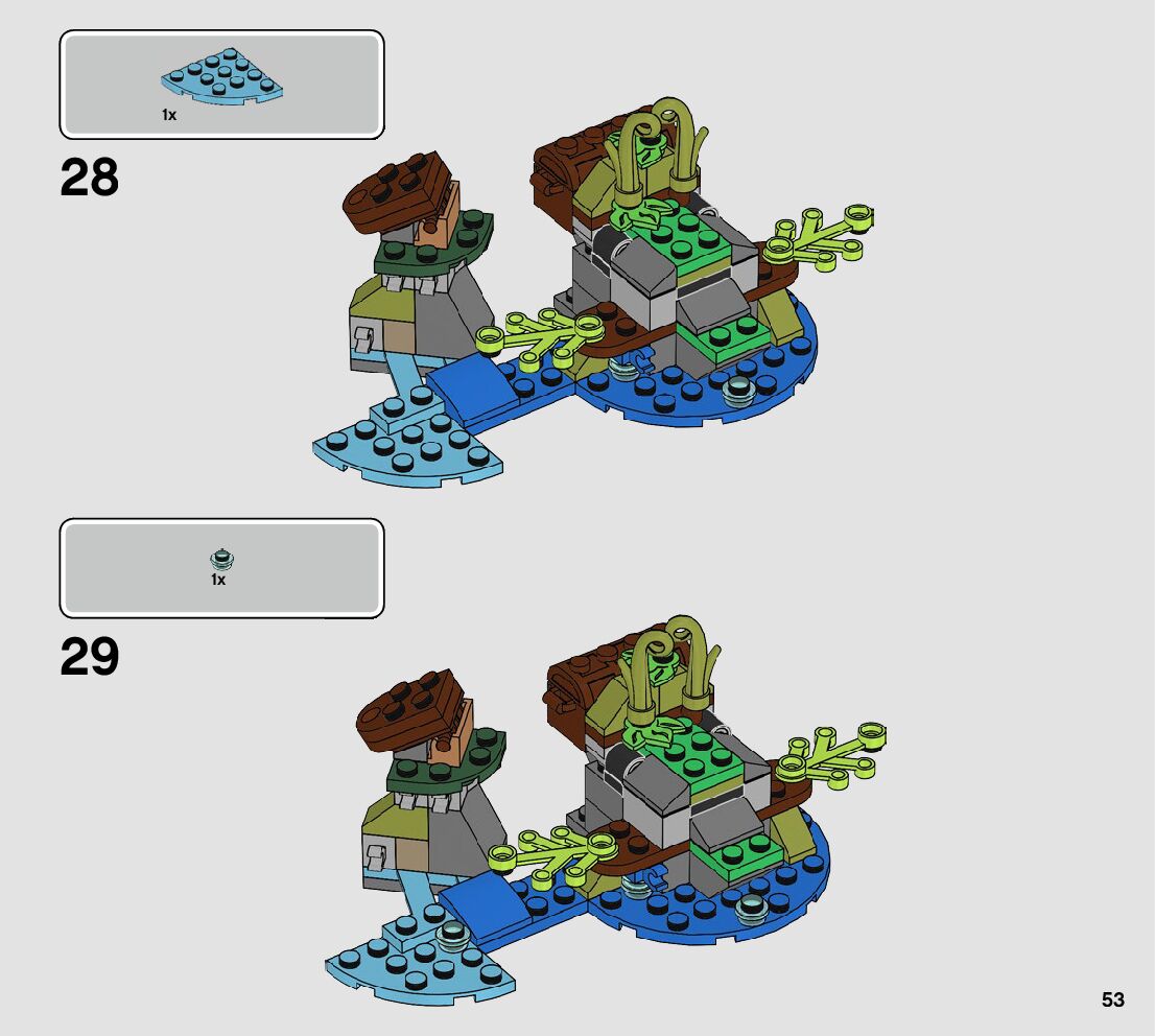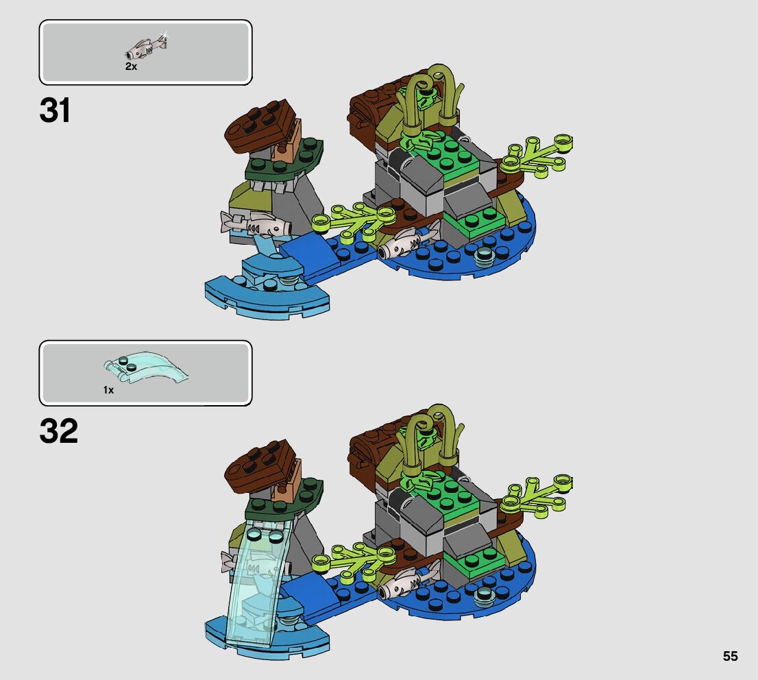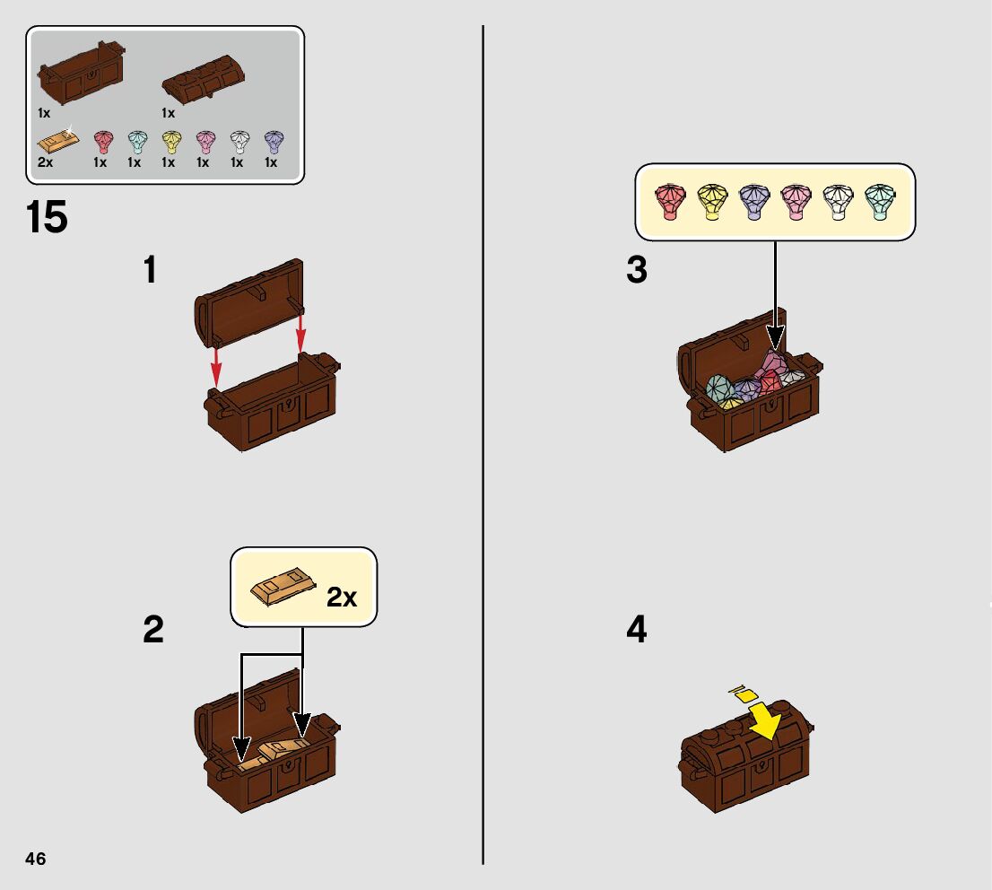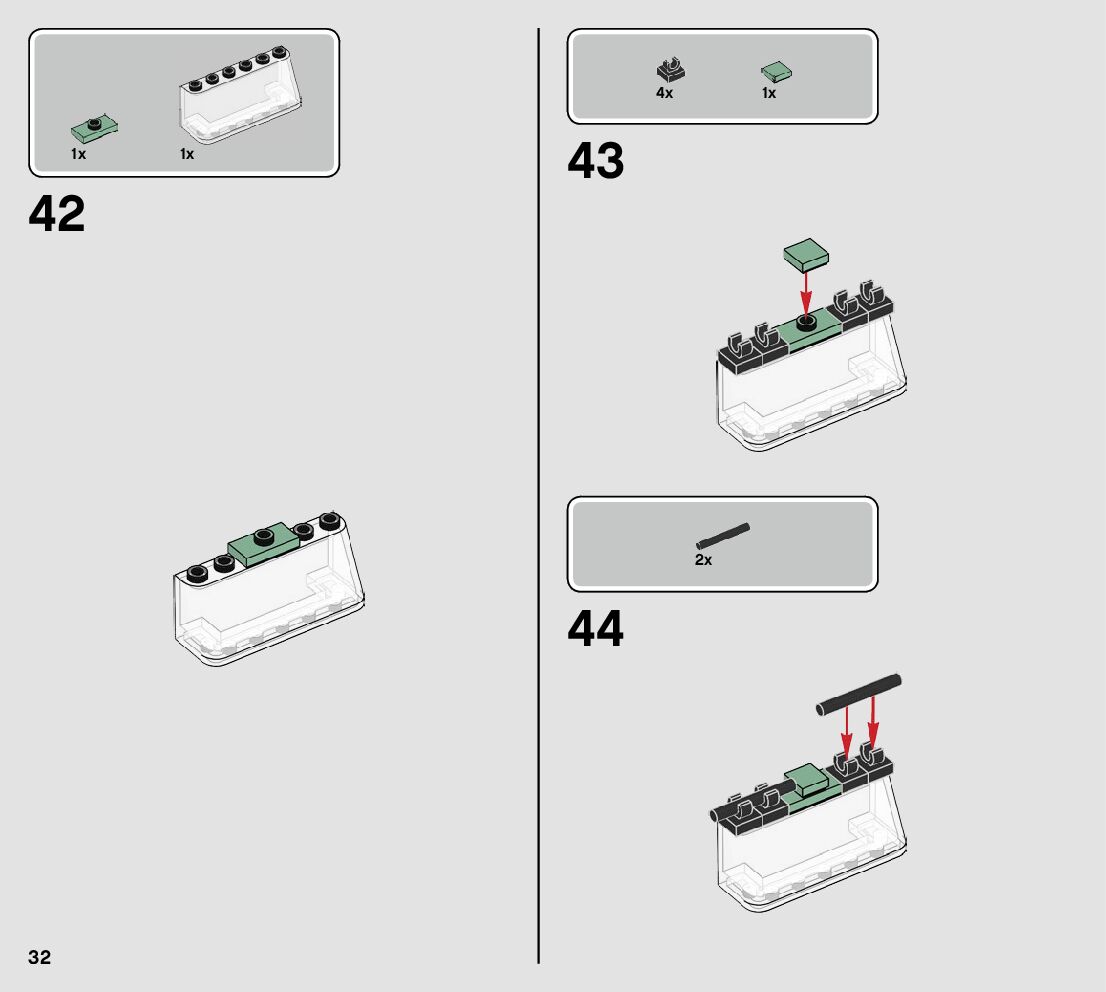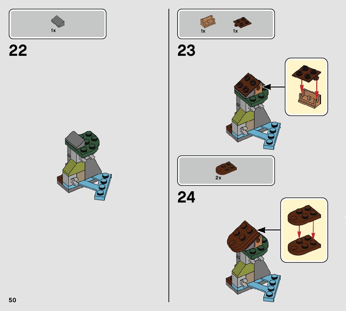 The assembly guide is prepared in a very understandable way for children and adult LEGO enthusiasts. A total of 96 picture galleries are shown, explaining the step-by-step construction stages for 2 different structures.