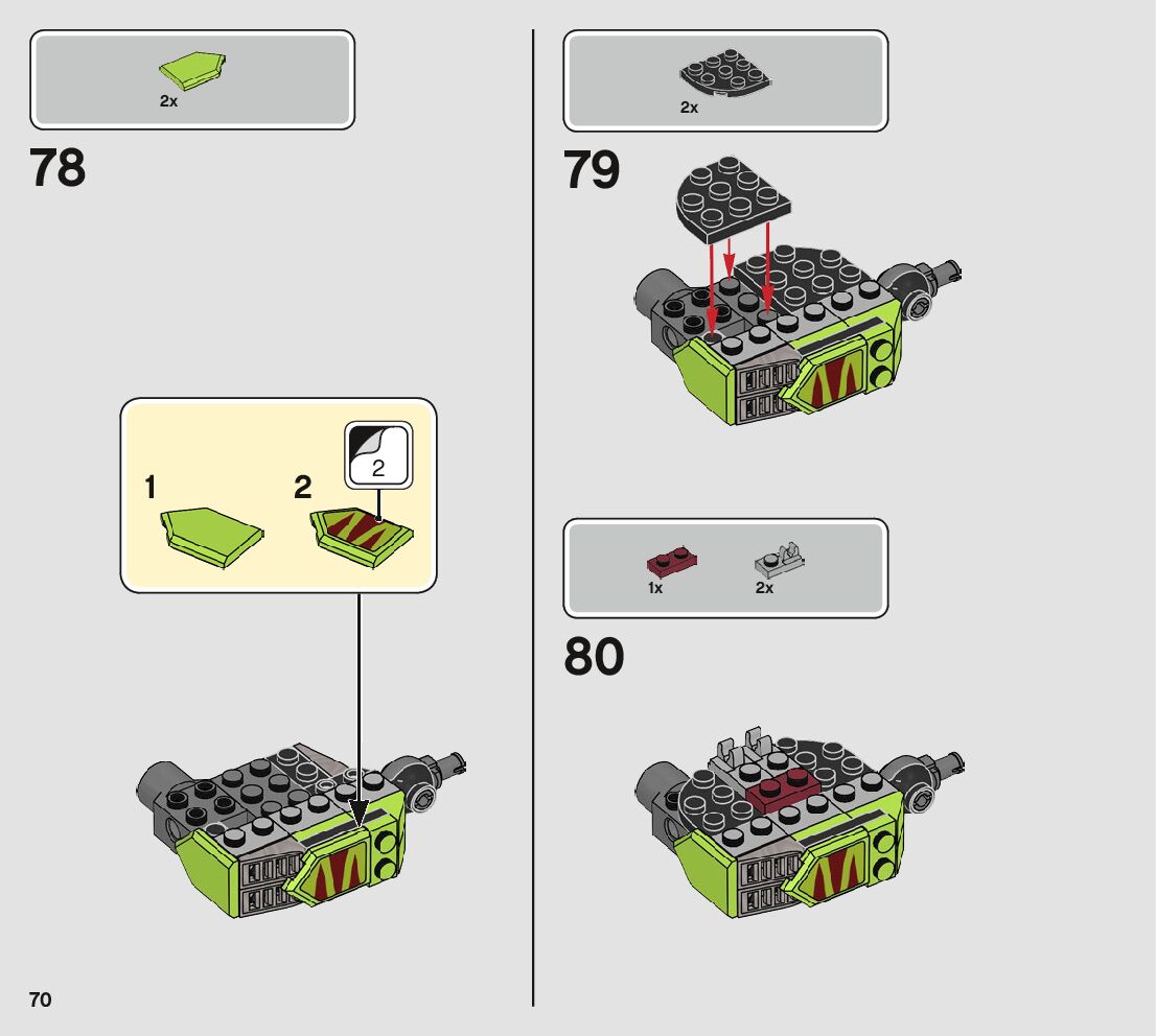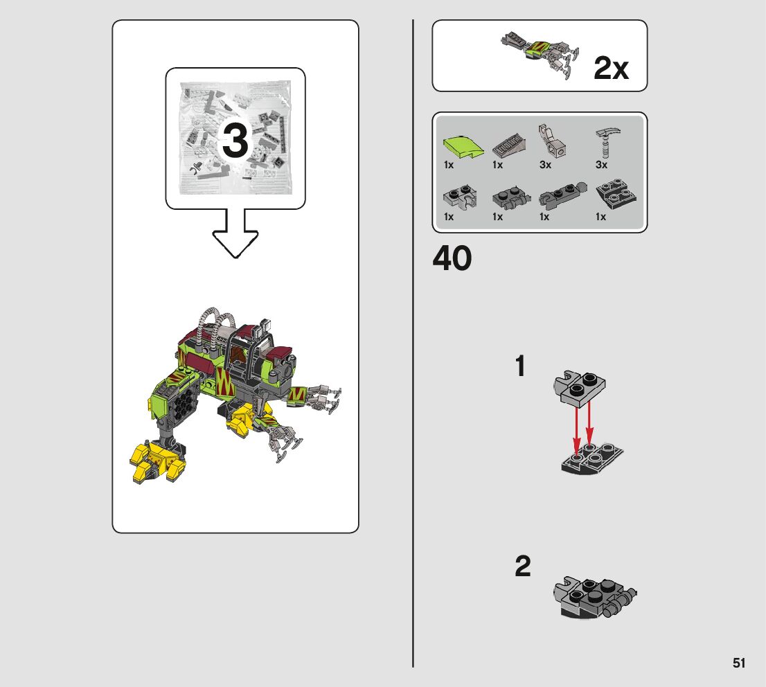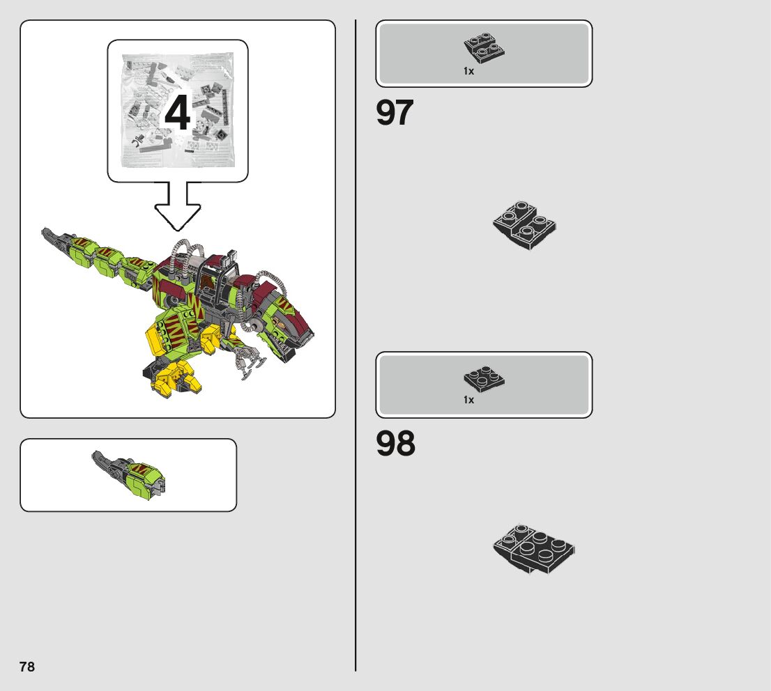 The assembly guide is prepared in a very understandable way for children and adult LEGO enthusiasts. A total of 176 picture galleries are shown, explaining the step-by-step construction stages for 2 different structures.
