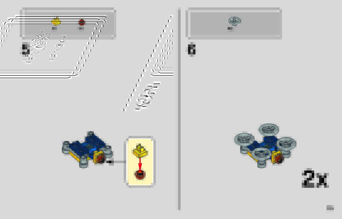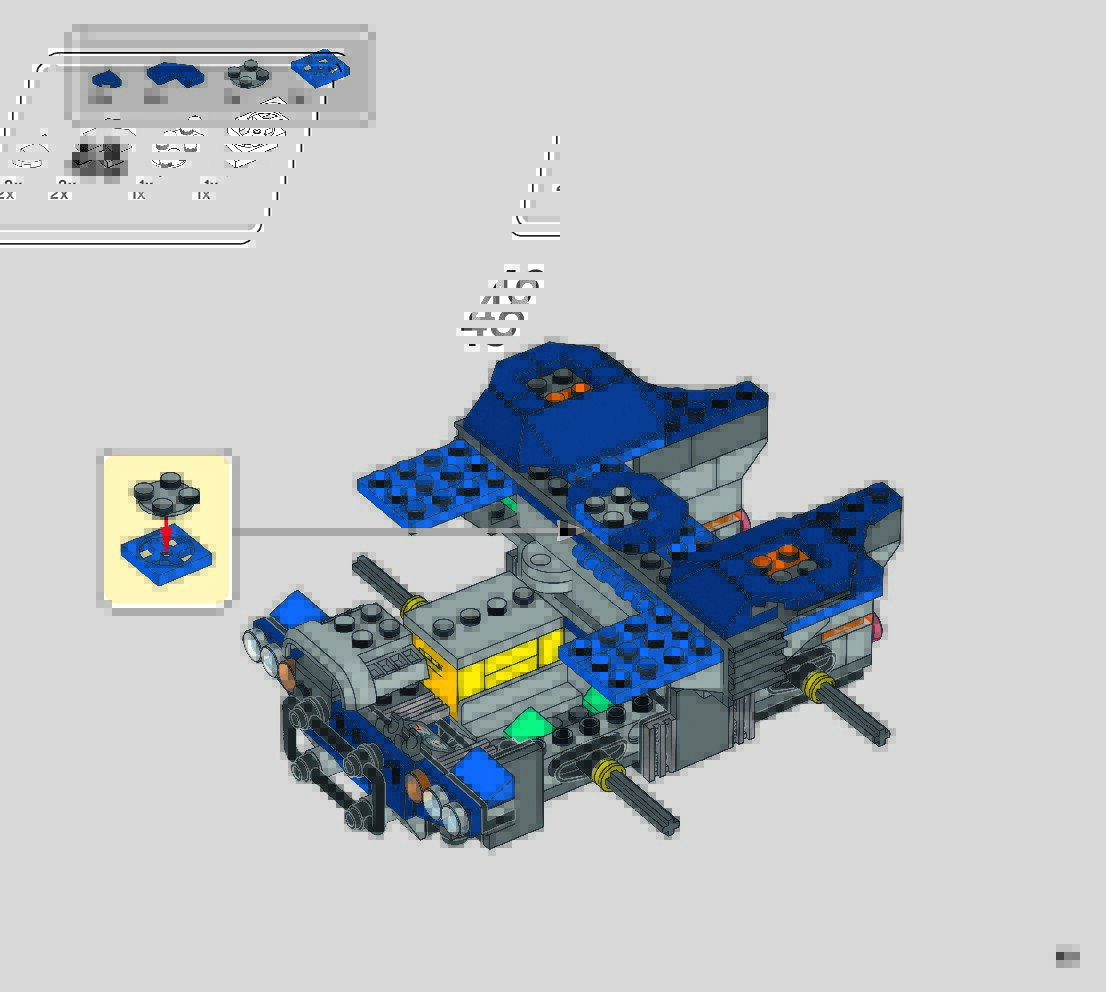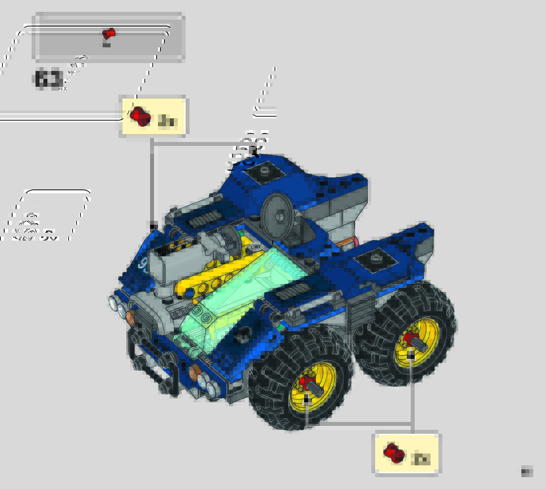 The assembly guide is prepared in a very understandable way for children and adult LEGO enthusiasts. A total of 112 picture galleries are shown, explaining the step-by-step construction stages for 2 different structures.
