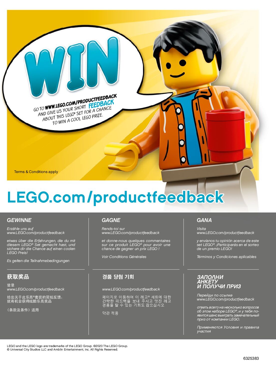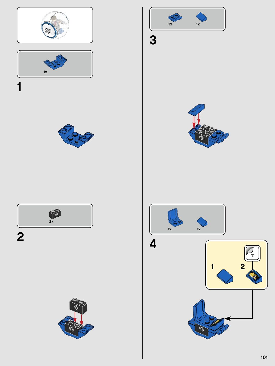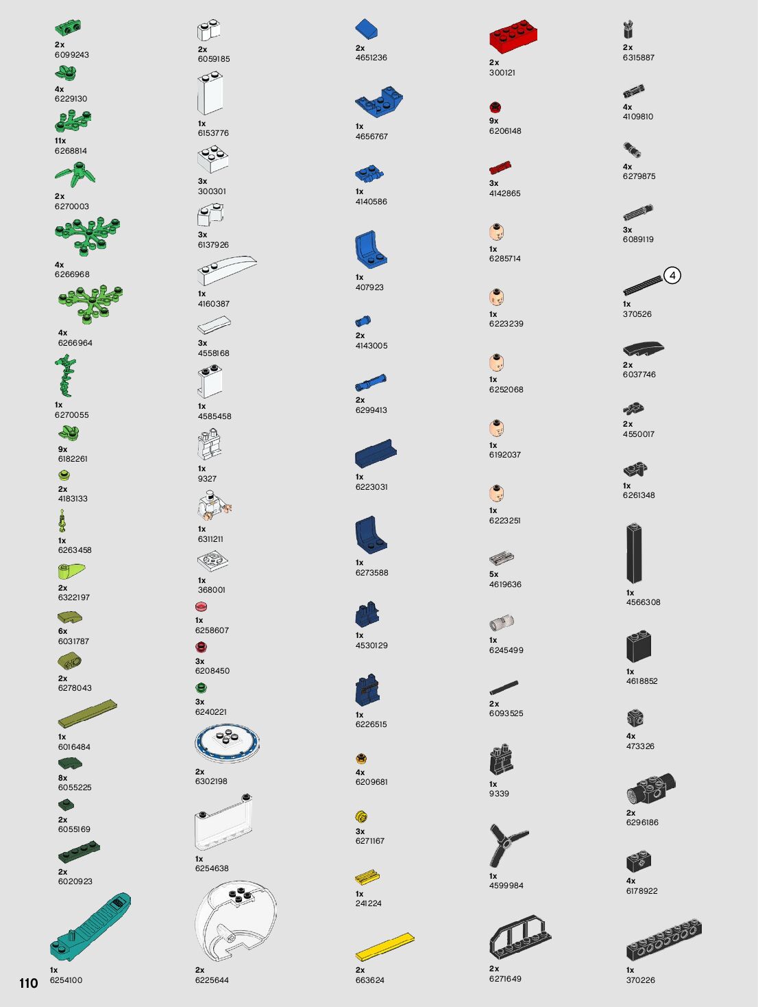 The assembly guide is prepared in a very understandable way for children and adult LEGO enthusiasts. A total of 112 picture galleries are shown, explaining the step-by-step construction stages for 1 different structures.