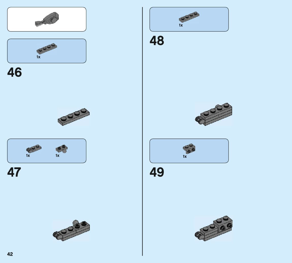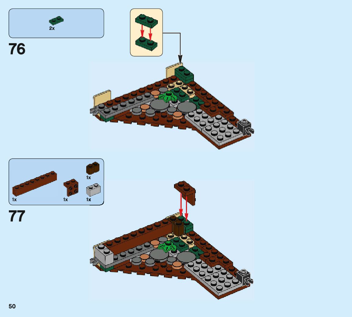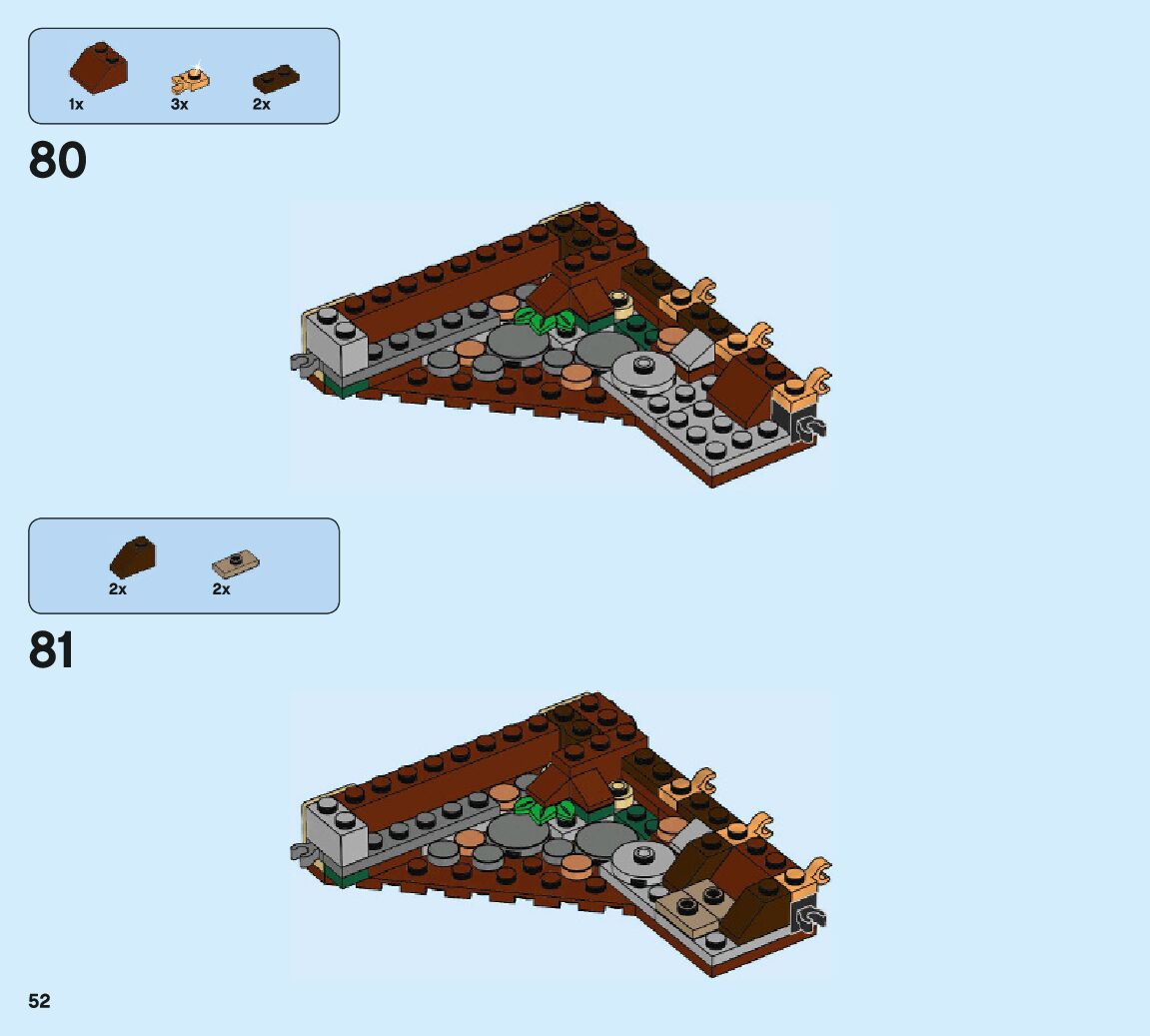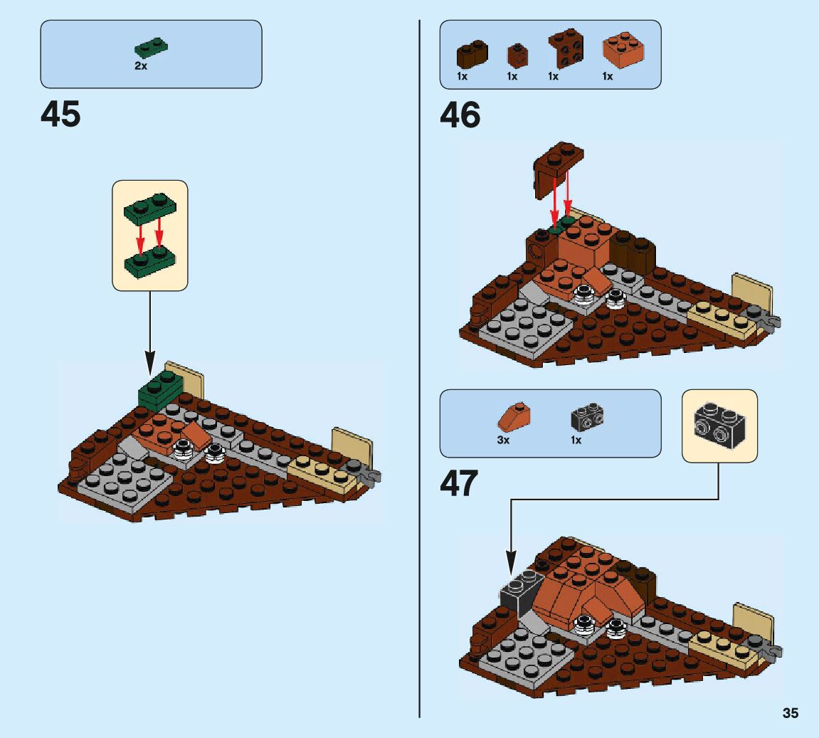 The assembly guide is prepared in a very understandable way for children and adult LEGO enthusiasts. A total of 132 picture galleries are shown, explaining the step-by-step construction stages for 2 different structures.