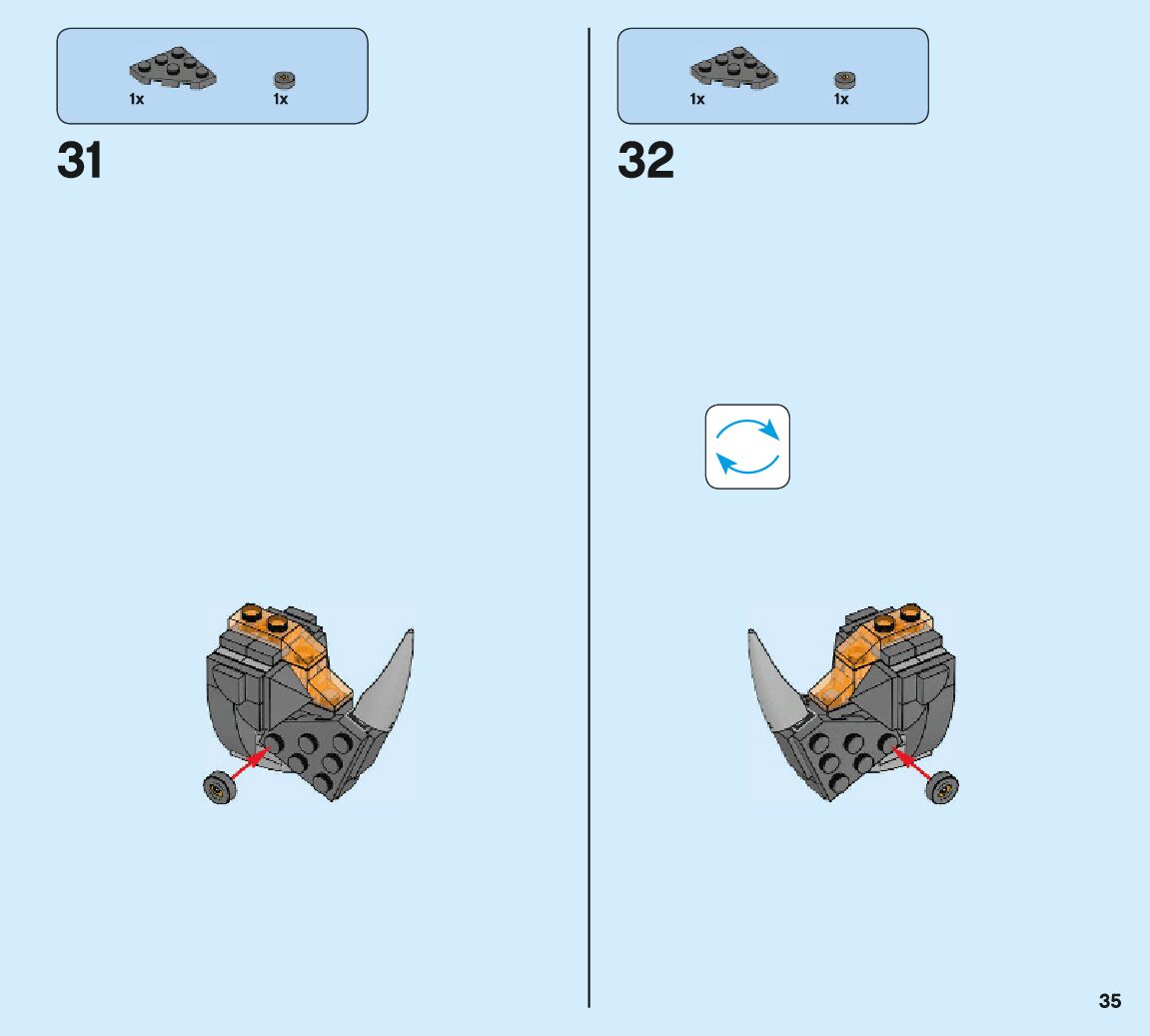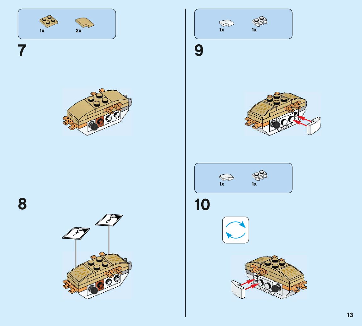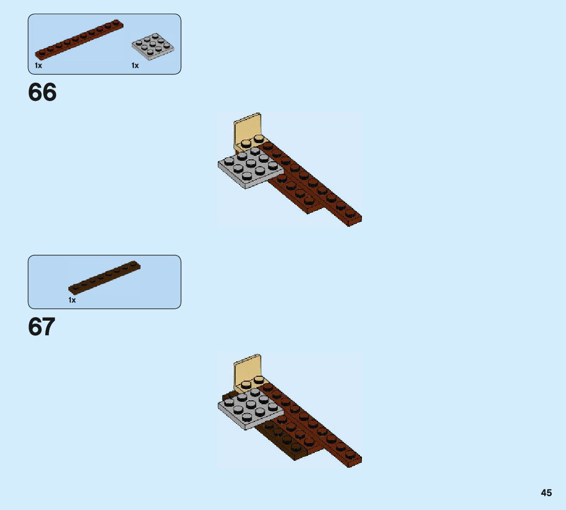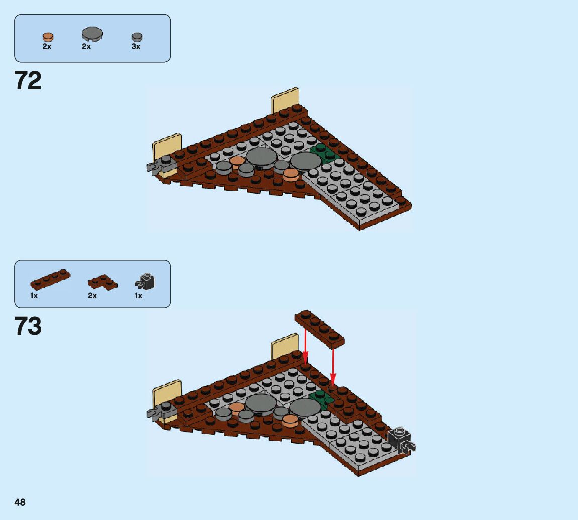 The assembly guide is prepared in a very understandable way for children and adult LEGO enthusiasts. A total of 132 picture galleries are shown, explaining the step-by-step construction stages for 2 different structures.