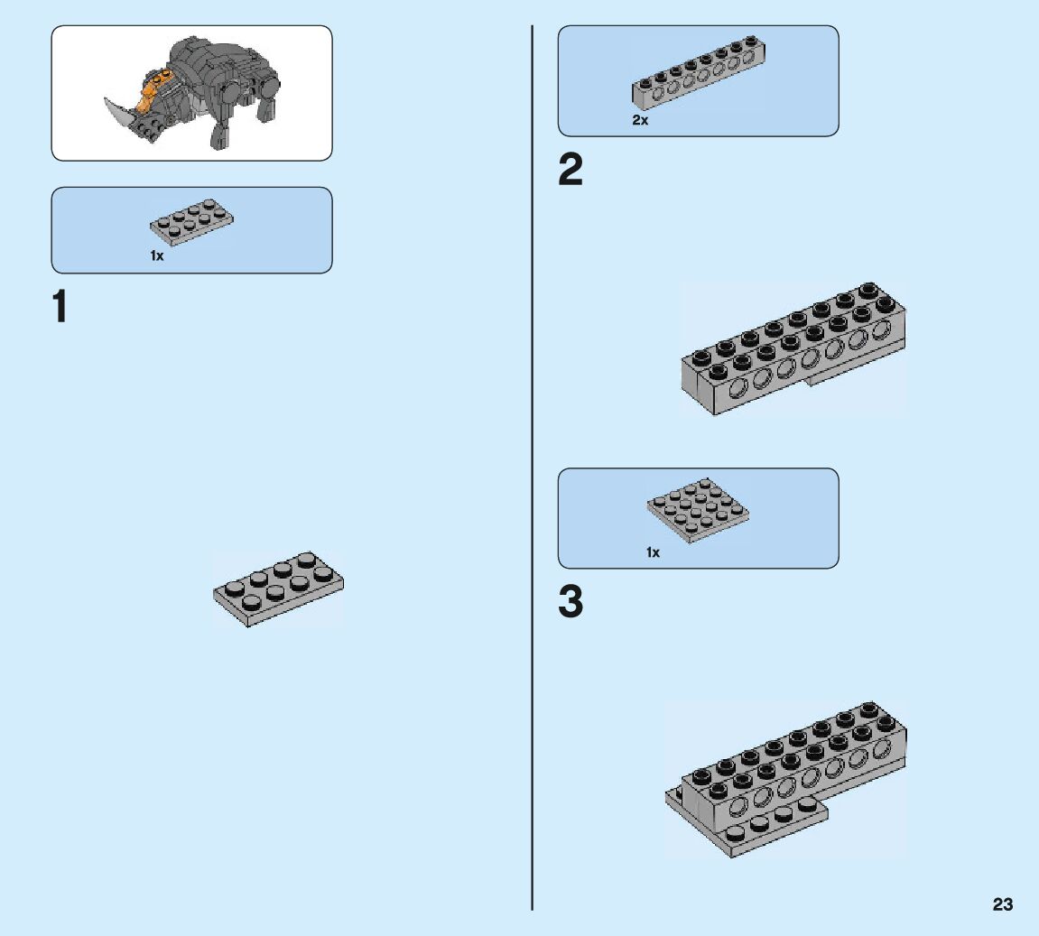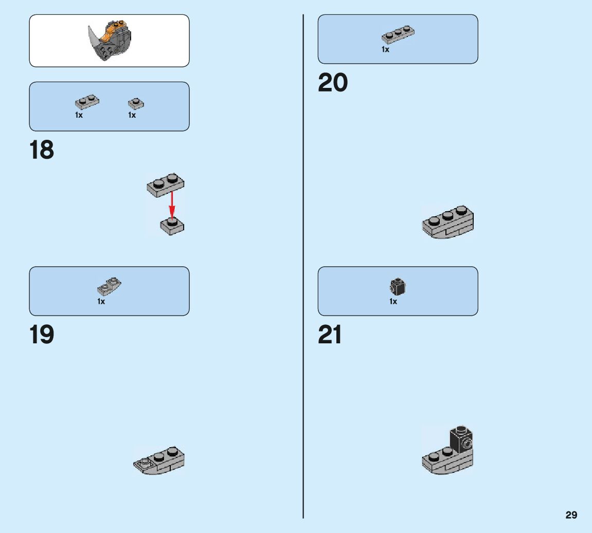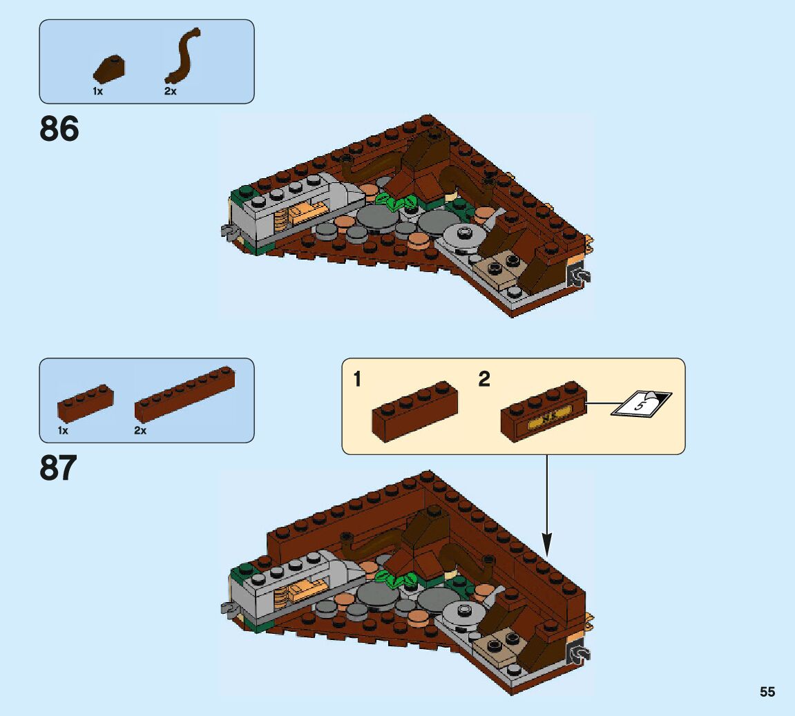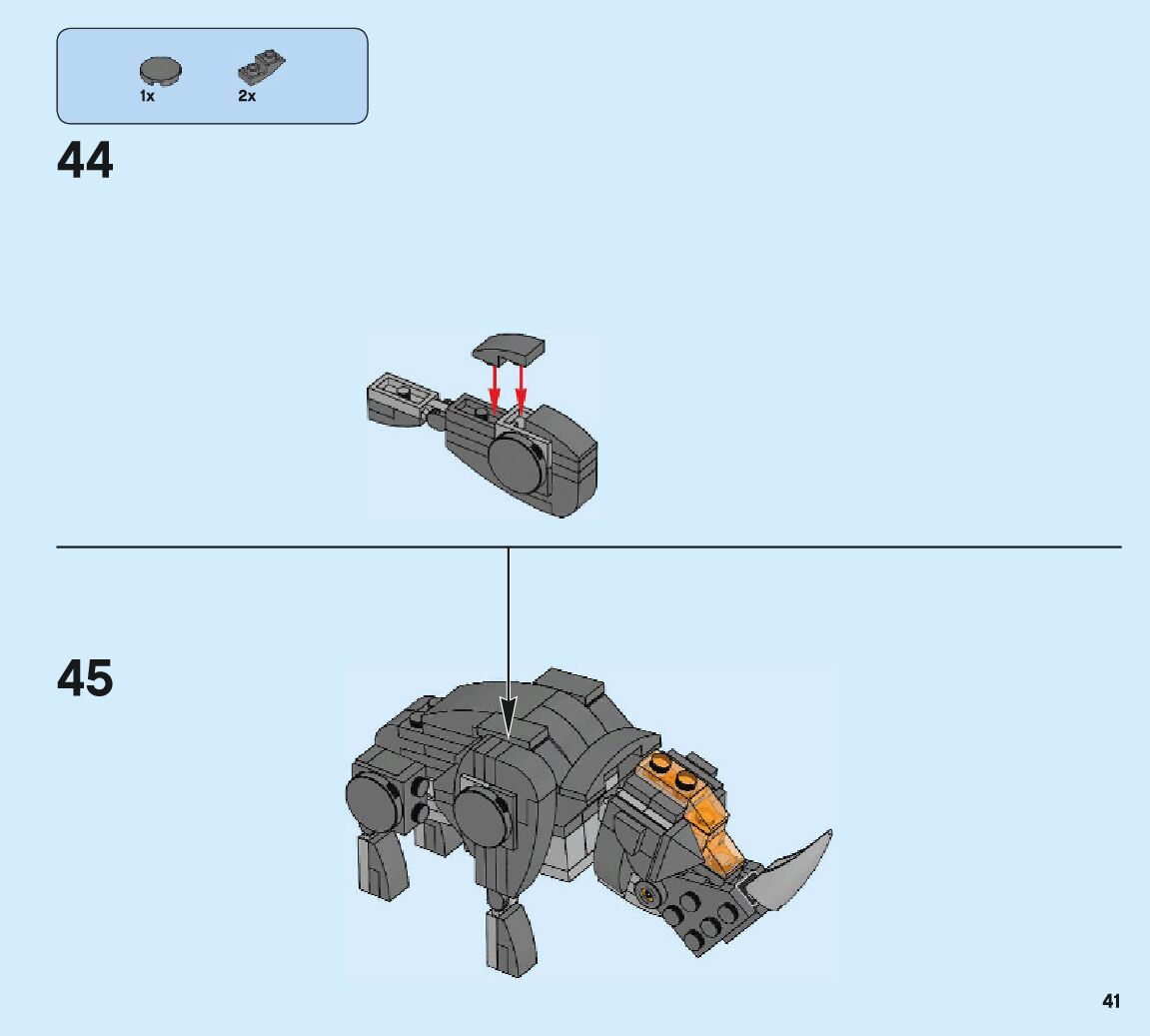 The assembly guide is prepared in a very understandable way for children and adult LEGO enthusiasts. A total of 132 picture galleries are shown, explaining the step-by-step construction stages for 2 different structures.