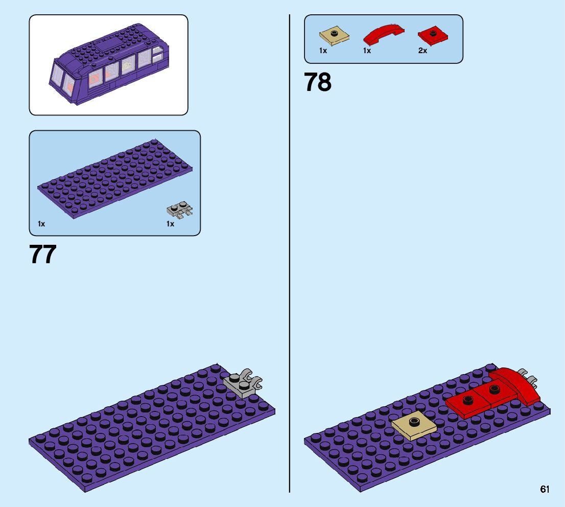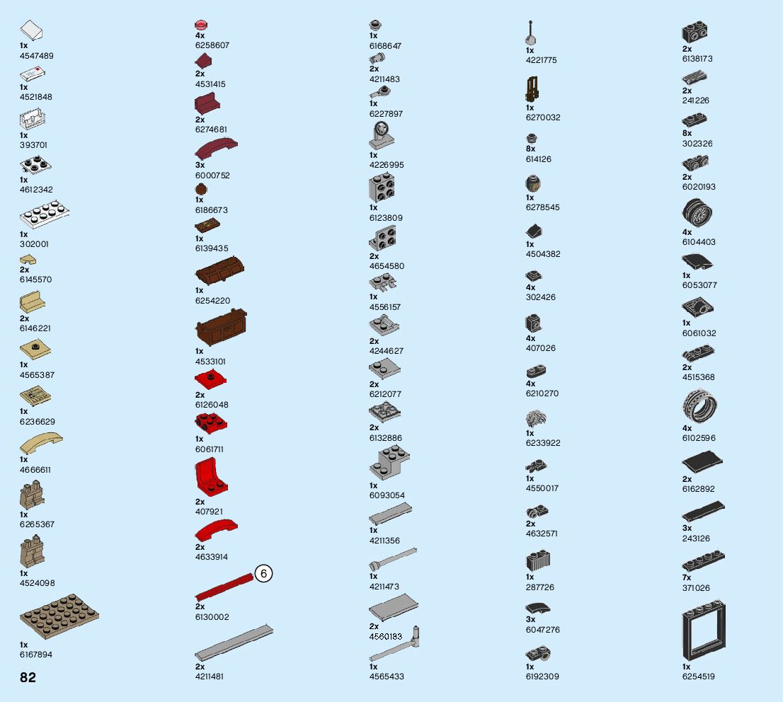 The assembly guide is prepared in a very understandable way for children and adult LEGO enthusiasts. A total of 84 picture galleries are shown, explaining the step-by-step construction stages for 1 different structures.