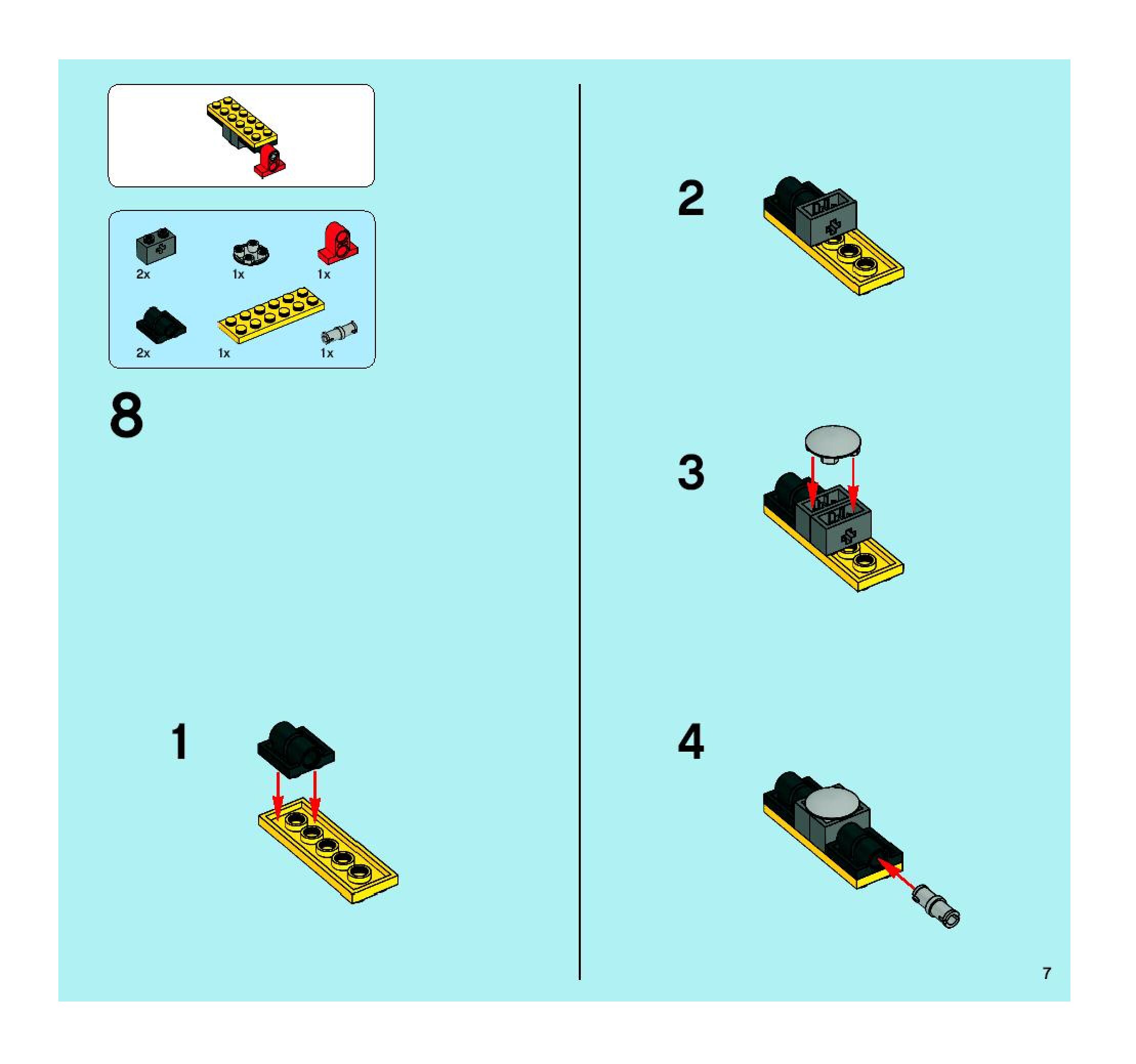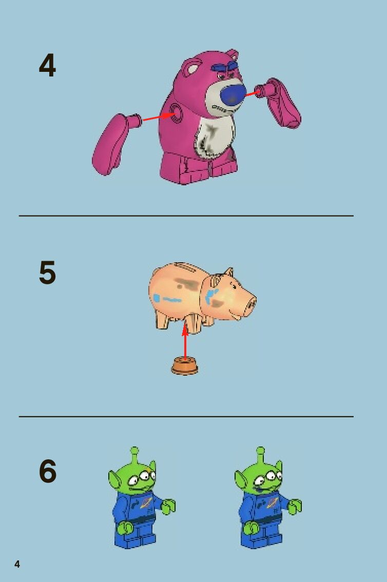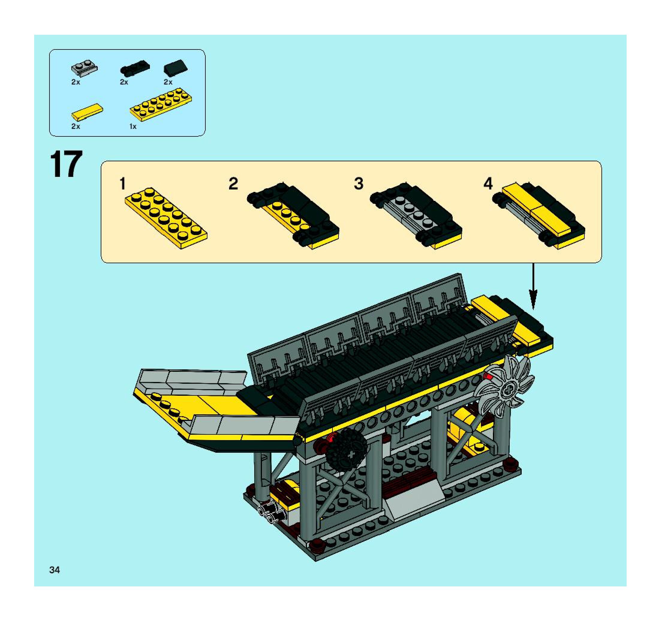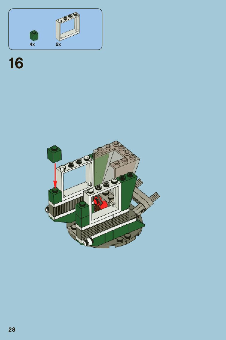 The assembly guide is prepared in a very understandable way for children and adult LEGO enthusiasts. A total of 480 picture galleries are shown, explaining the step-by-step construction stages for 2 different structures.