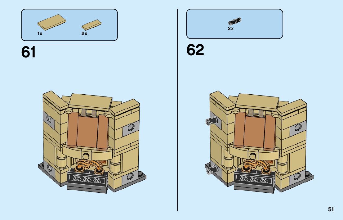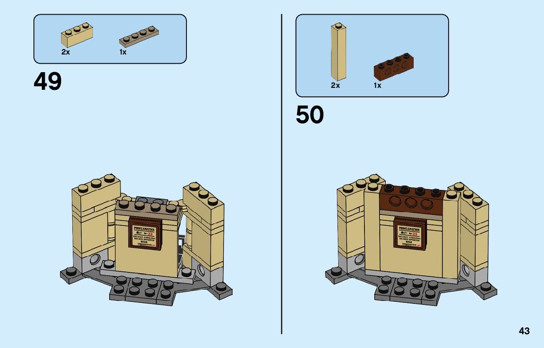 The assembly guide is prepared in a very understandable way for children and adult LEGO enthusiasts. A total of 1020 picture galleries are shown, explaining the step-by-step construction stages for 1 different structures.