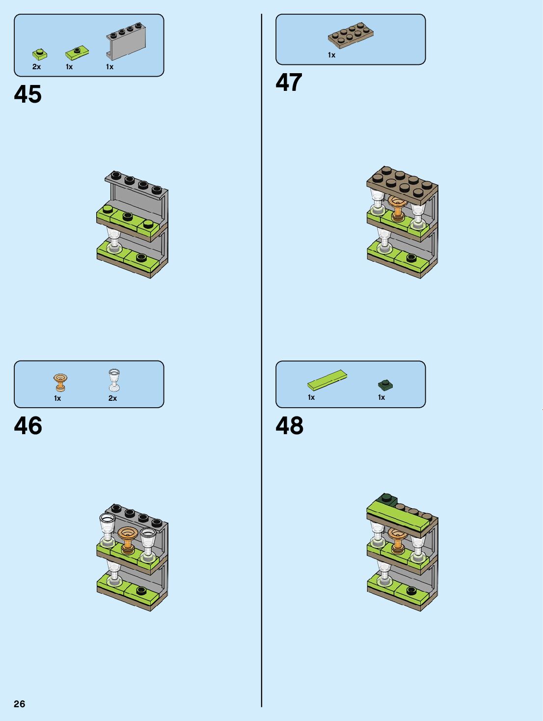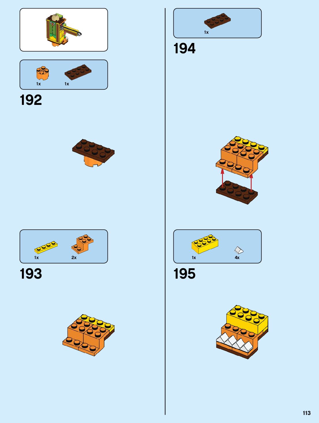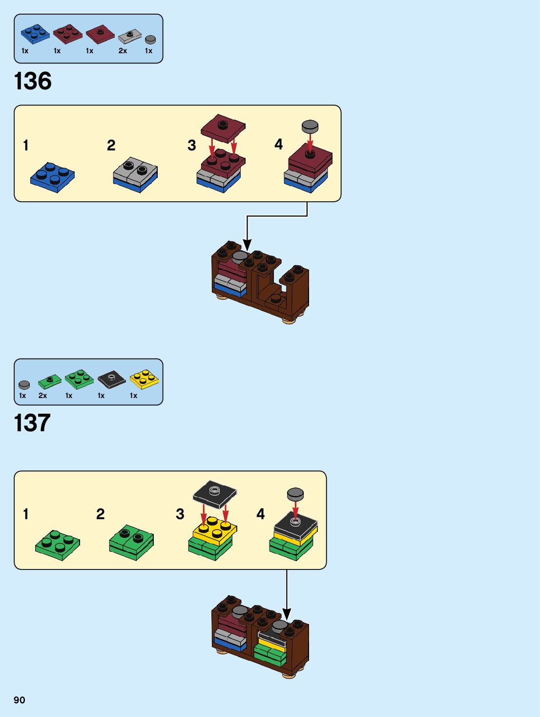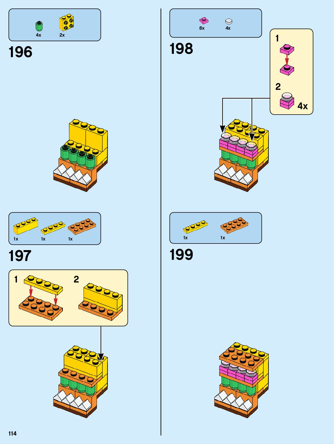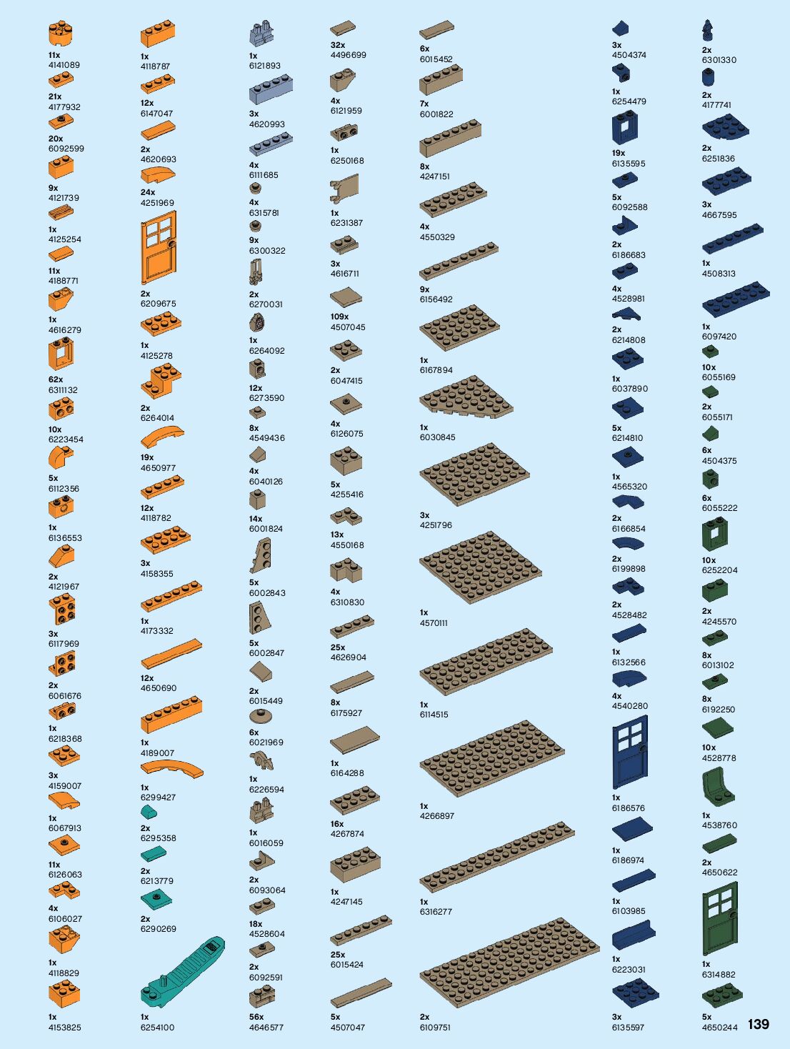 The assembly guide is prepared in a very understandable way for children and adult LEGO enthusiasts. A total of 696 picture galleries are shown, explaining the step-by-step construction stages for 4 different structures.