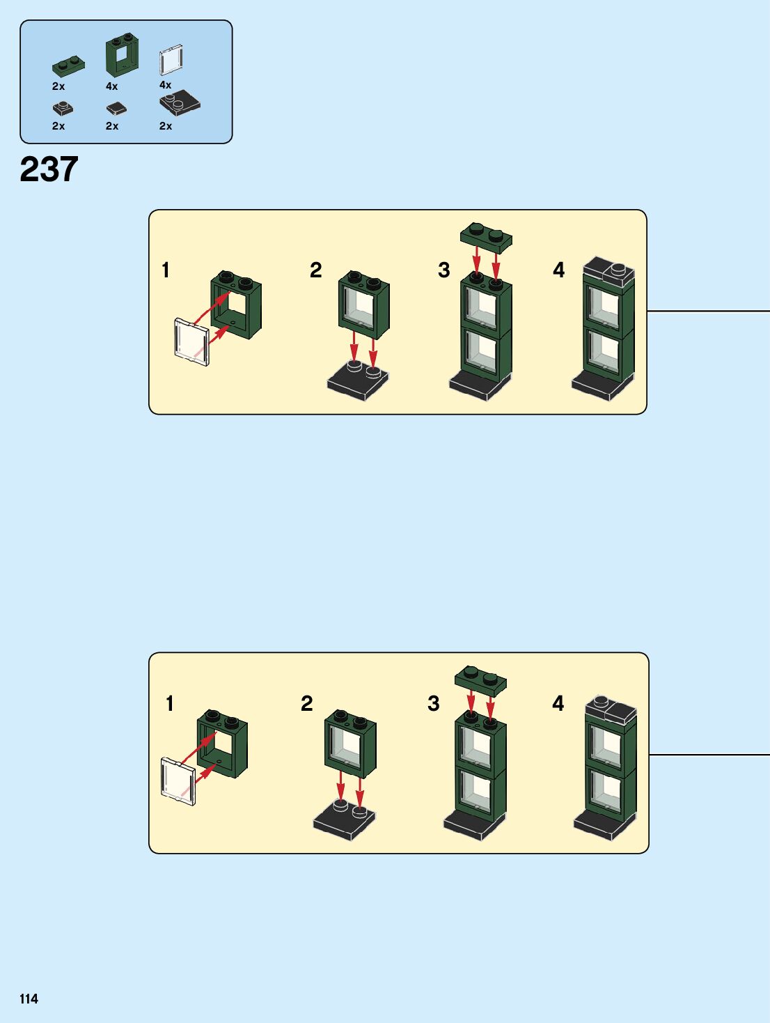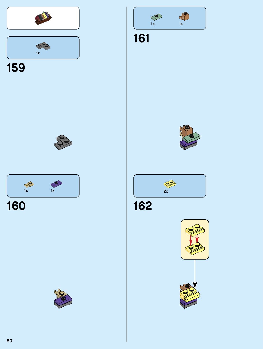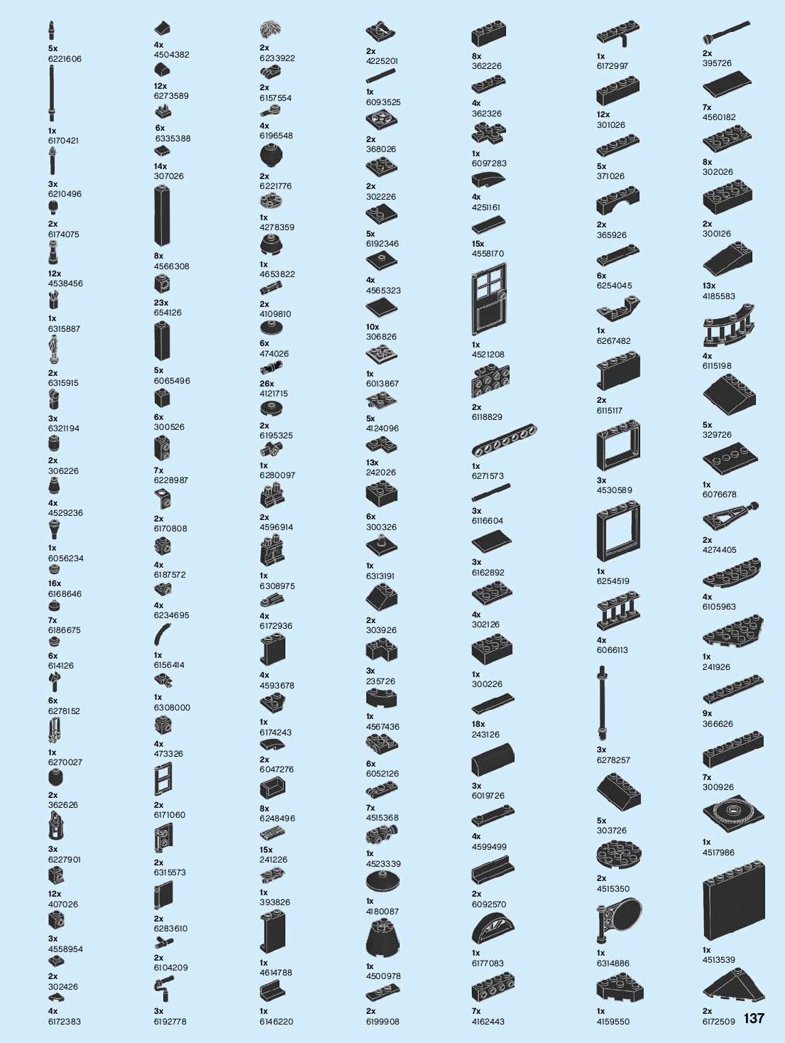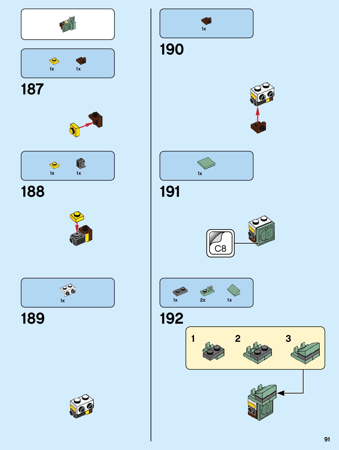 The assembly guide is prepared in a very understandable way for children and adult LEGO enthusiasts. A total of 696 picture galleries are shown, explaining the step-by-step construction stages for 4 different structures.