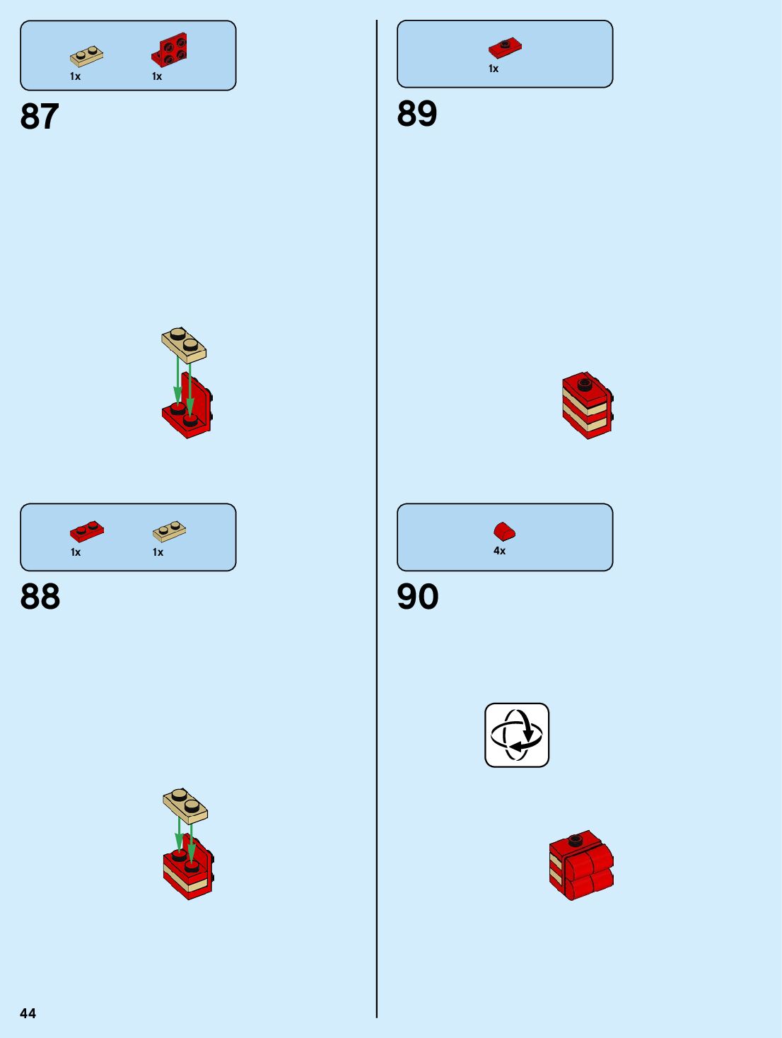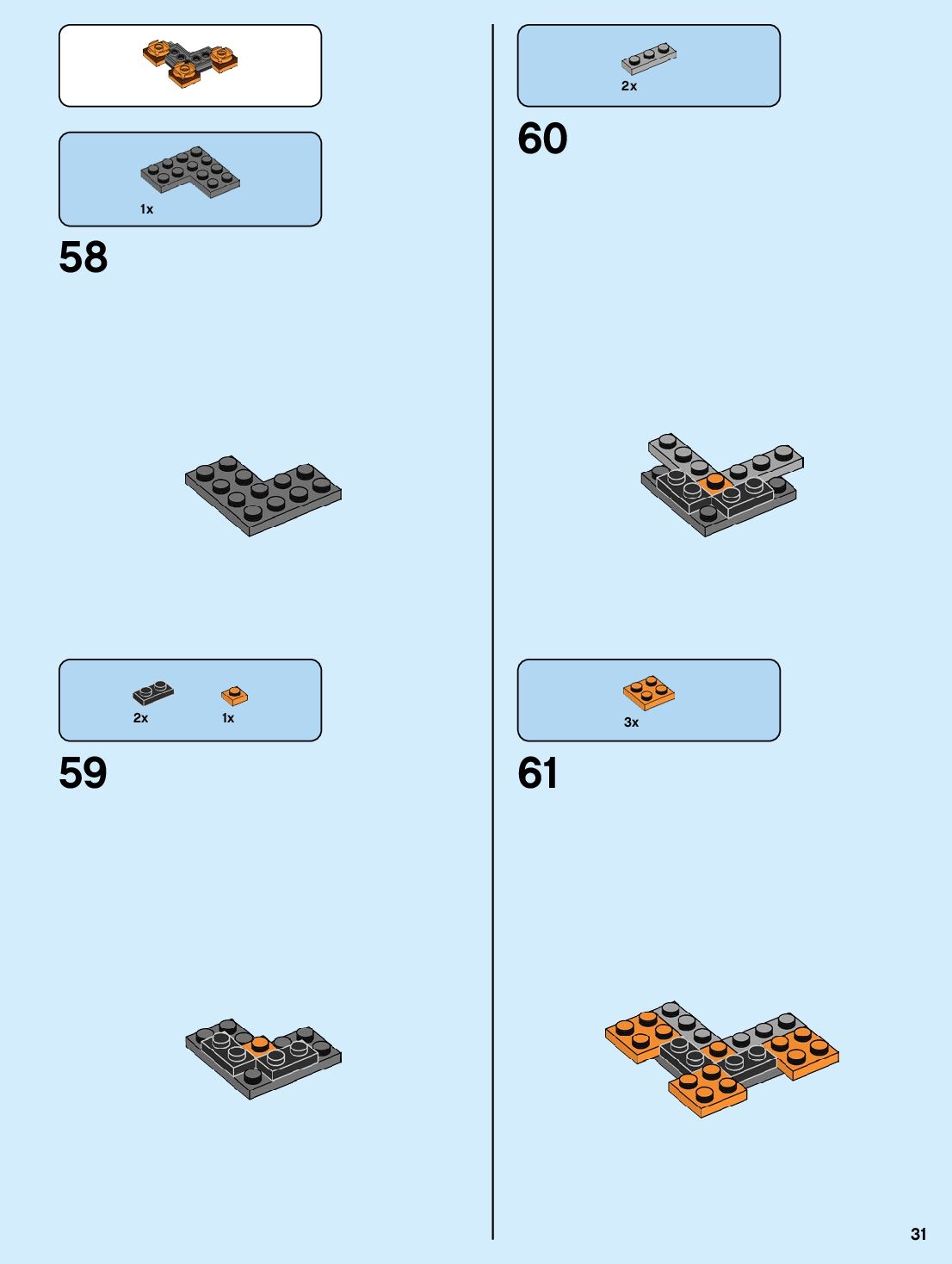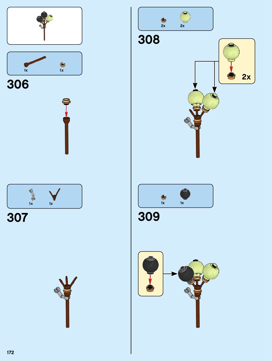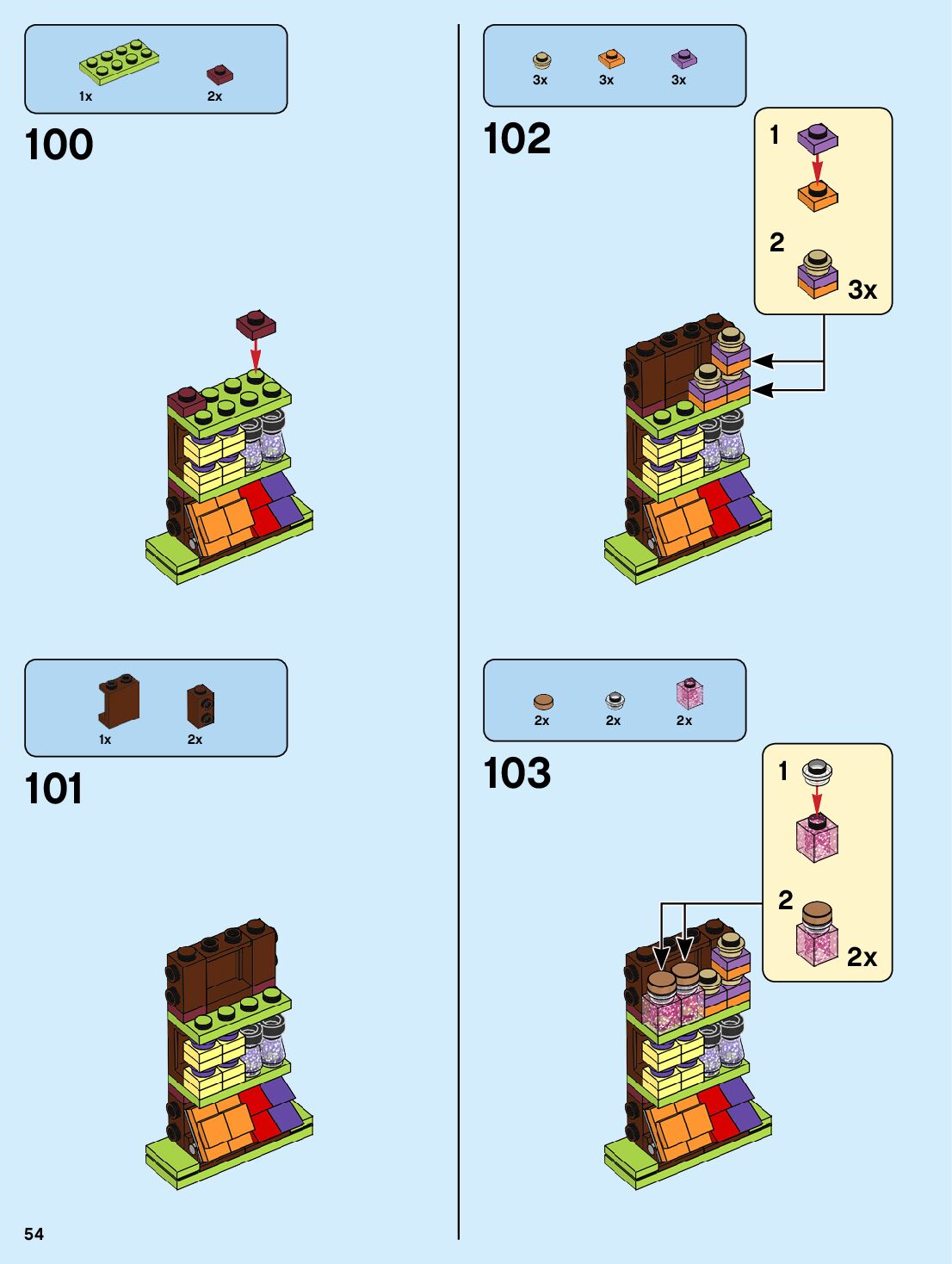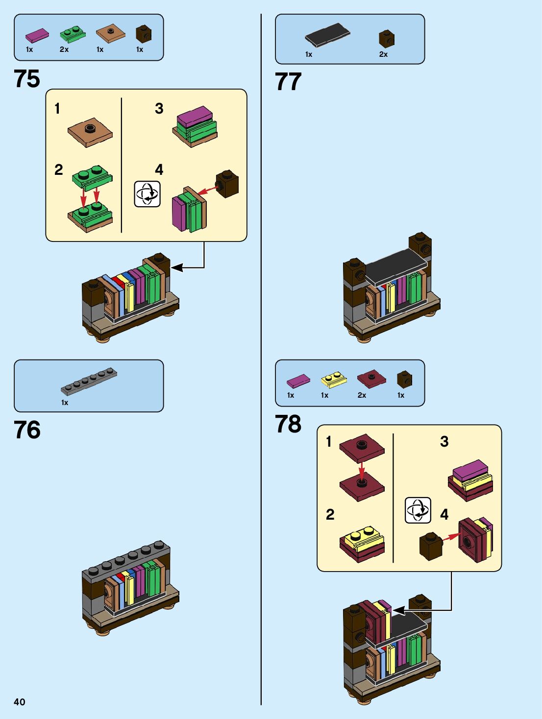 The assembly guide is prepared in a very understandable way for children and adult LEGO enthusiasts. A total of 696 picture galleries are shown, explaining the step-by-step construction stages for 4 different structures.