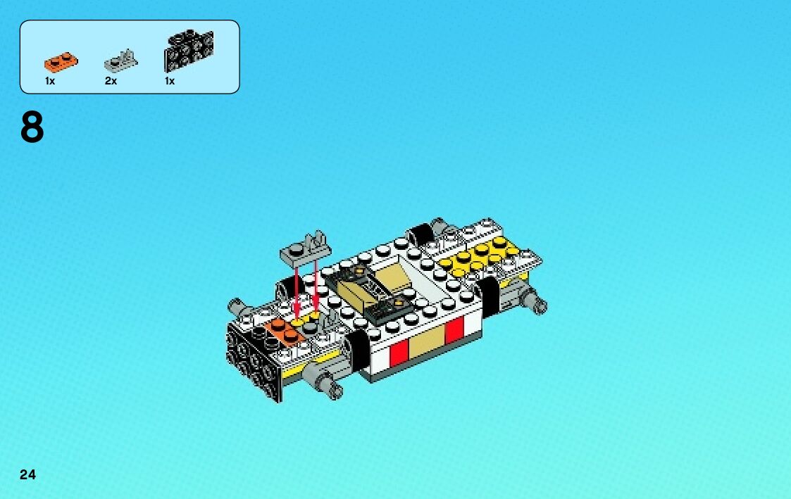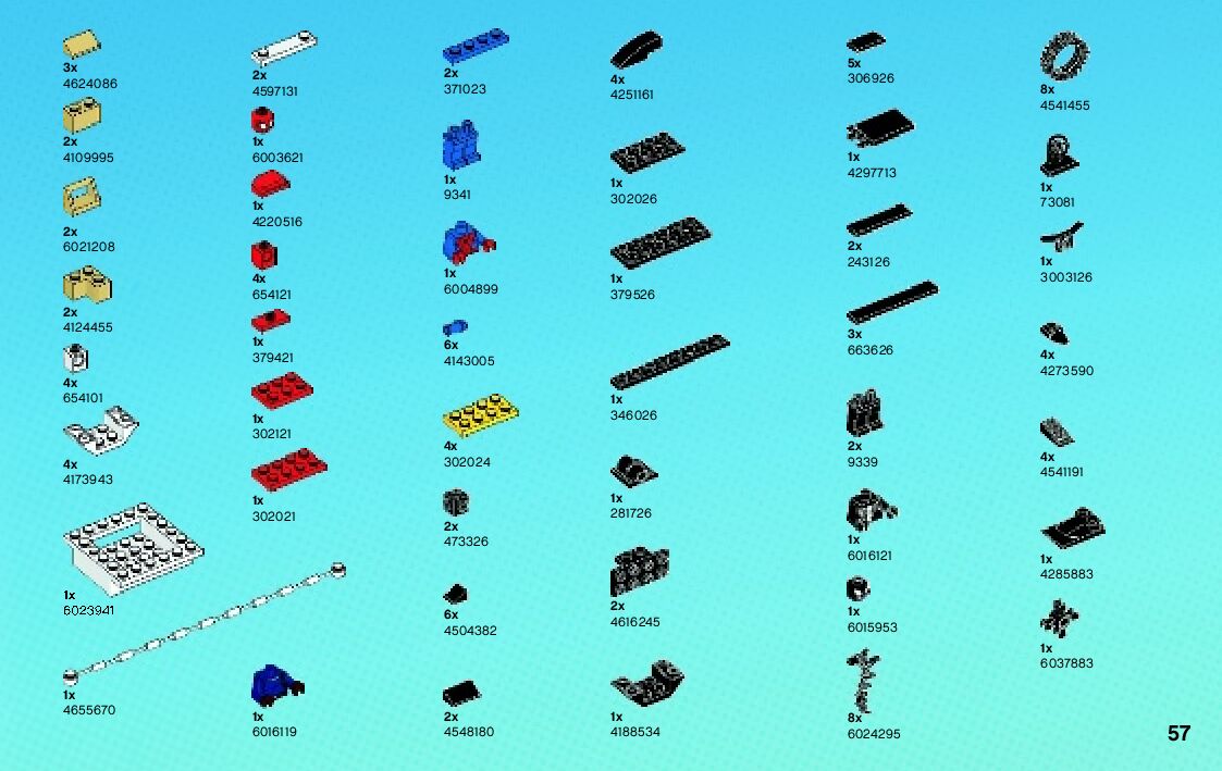 The assembly guide is prepared in a very understandable way for children and adult LEGO enthusiasts. A total of 72 picture galleries are shown, explaining the step-by-step construction stages for 2 different structures.