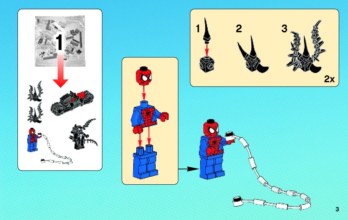 This page shares information about LEGO 76004 Spider-Man: Spider-Cycle Chase manual, LEGO 76004 PDF instructions, LEGO 76004 Spider-Man: Spider-Cycle Chase building guide online, How to build 76004 Spider-Man: Spider-Cycle Chase LEGO.