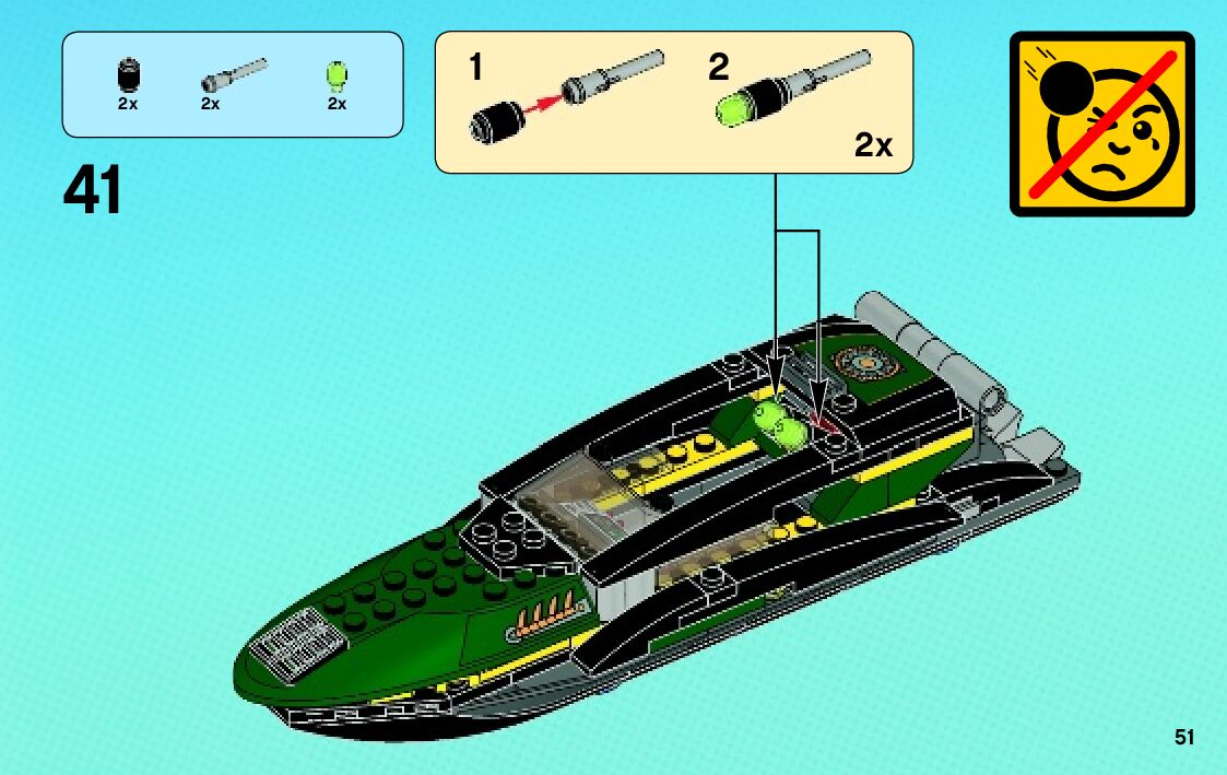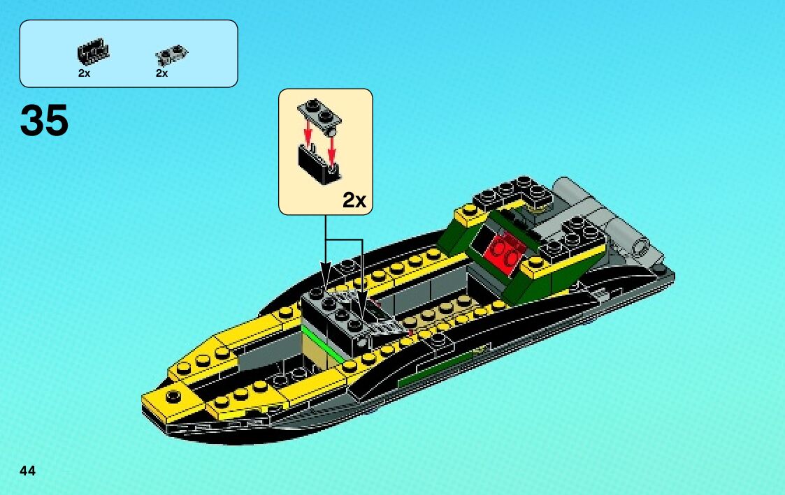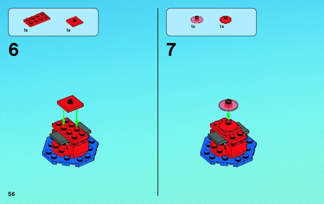 The assembly guide is prepared in a very understandable way for children and adult LEGO enthusiasts. A total of 76 picture galleries are shown, explaining the step-by-step construction stages for 2 different structures.