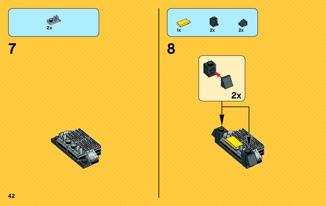 The assembly guide is prepared in a very understandable way for children and adult LEGO enthusiasts. A total of 76 picture galleries are shown, explaining the step-by-step construction stages for 1 different structures.