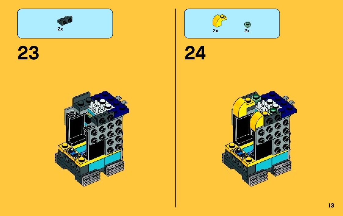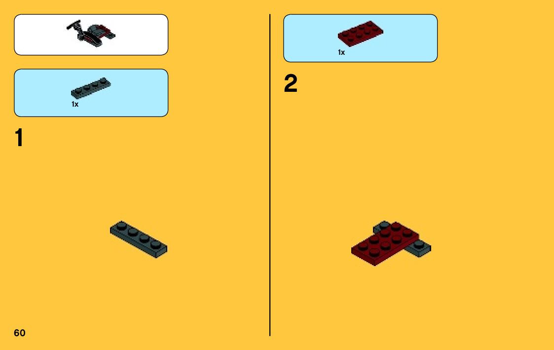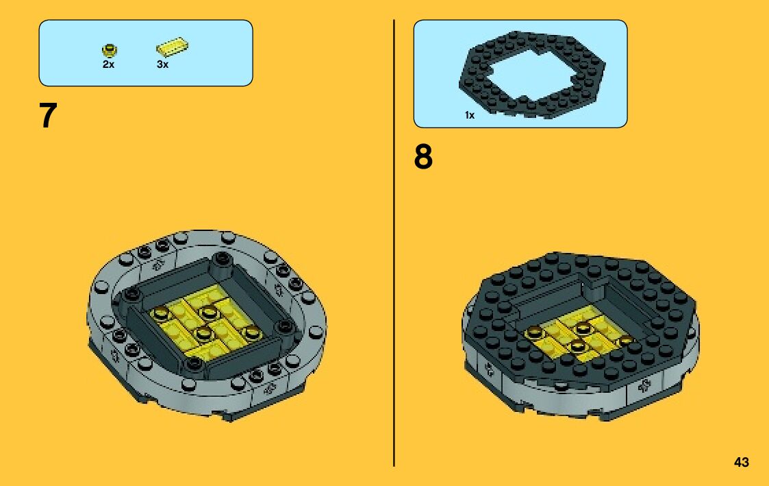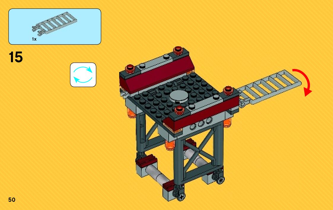 The assembly guide is prepared in a very understandable way for children and adult LEGO enthusiasts. A total of 120 picture galleries are shown, explaining the step-by-step construction stages for 2 different structures.