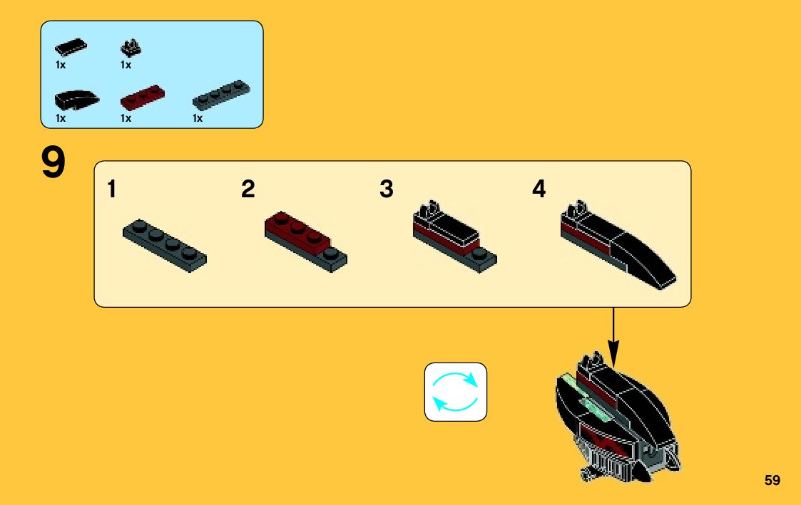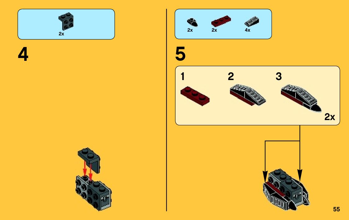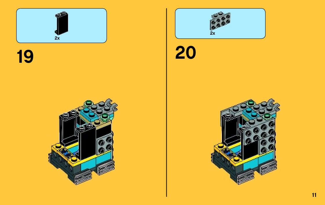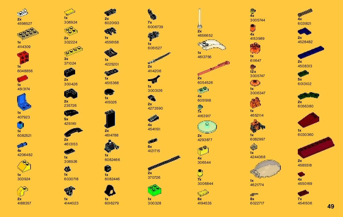 The assembly guide is prepared in a very understandable way for children and adult LEGO enthusiasts. A total of 120 picture galleries are shown, explaining the step-by-step construction stages for 2 different structures.