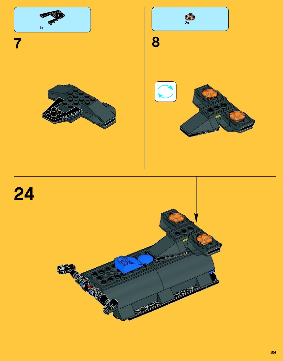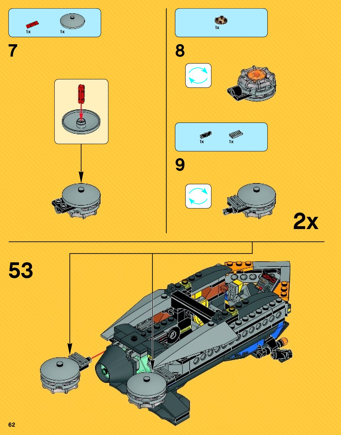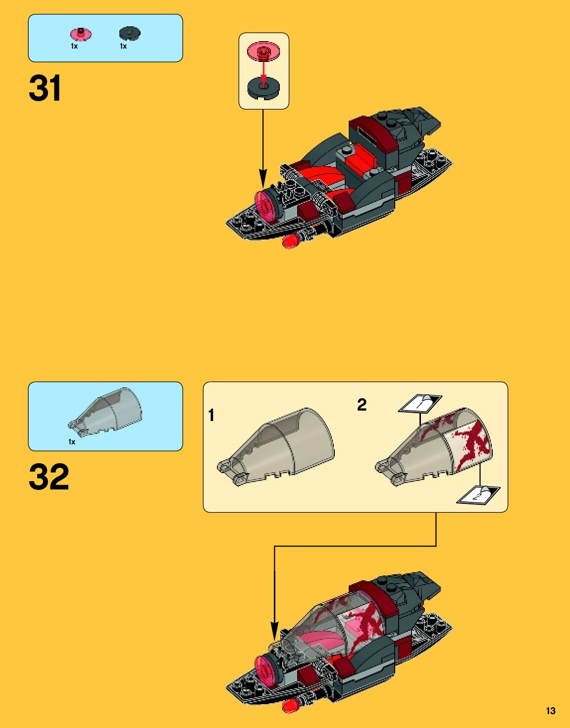 The assembly guide is prepared in a very understandable way for children and adult LEGO enthusiasts. A total of 132 picture galleries are shown, explaining the step-by-step construction stages for 2 different structures.