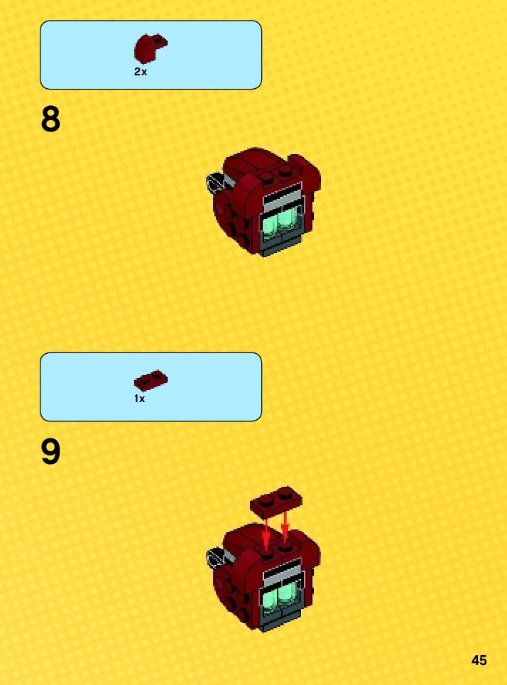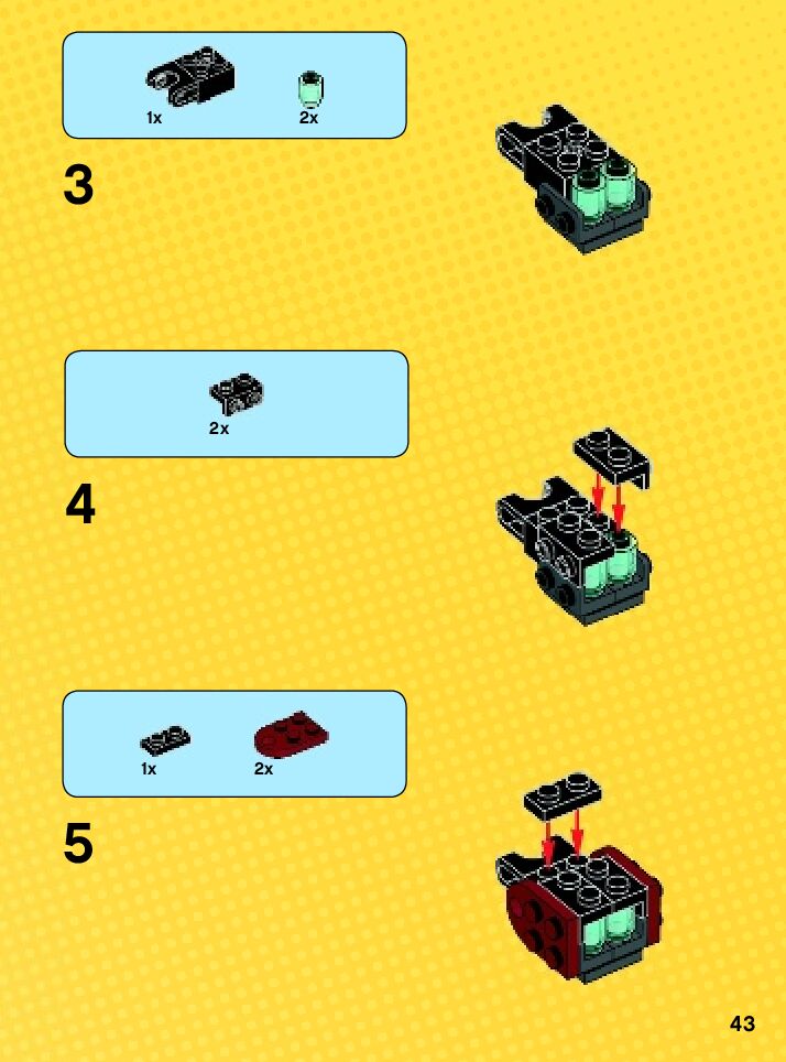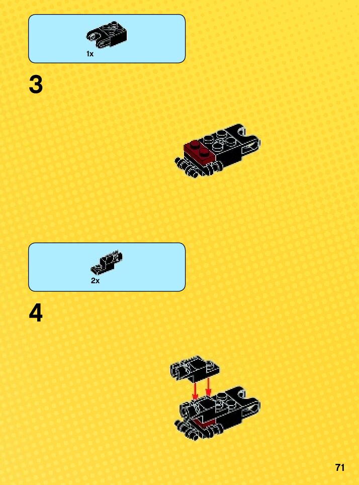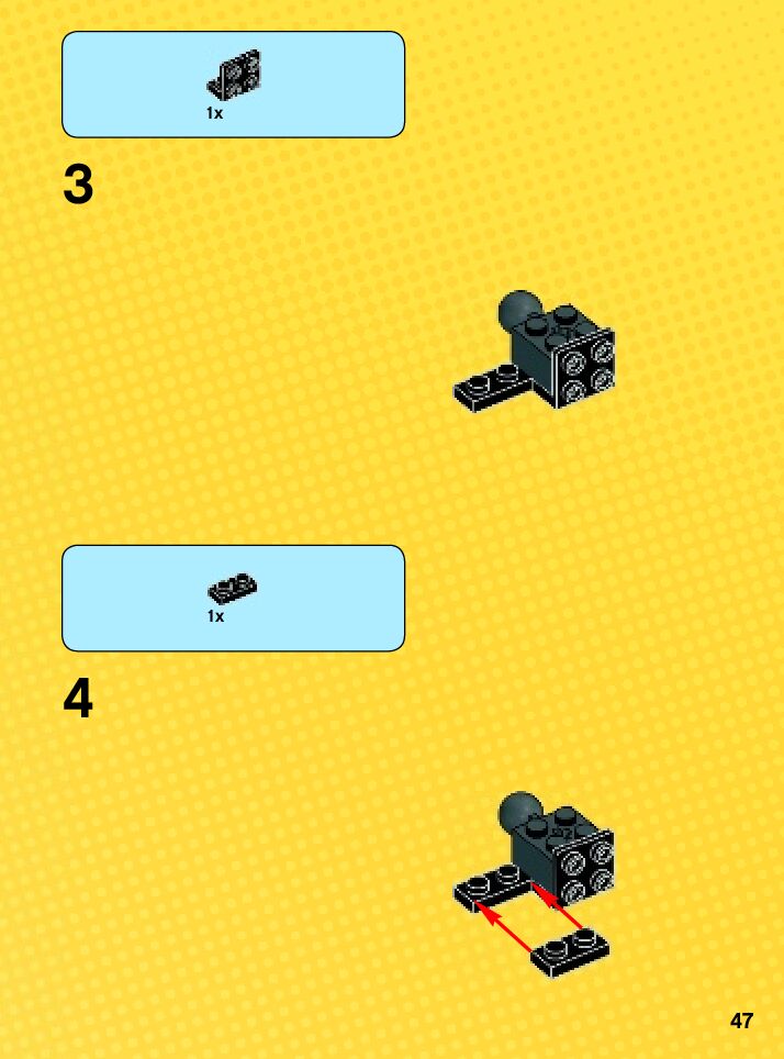 The assembly guide is prepared in a very understandable way for children and adult LEGO enthusiasts. A total of 84 picture galleries are shown, explaining the step-by-step construction stages for 1 different structures.